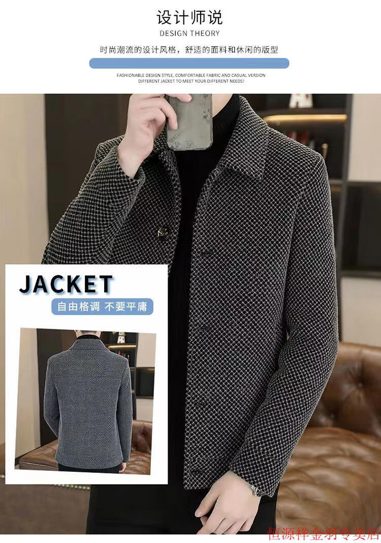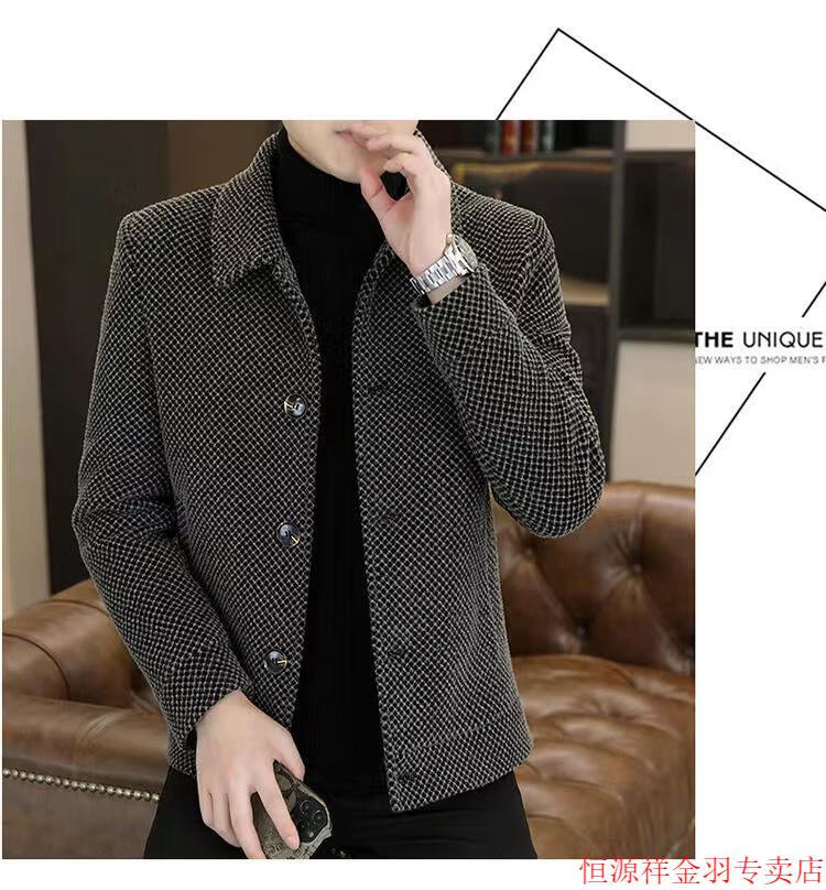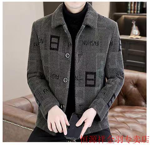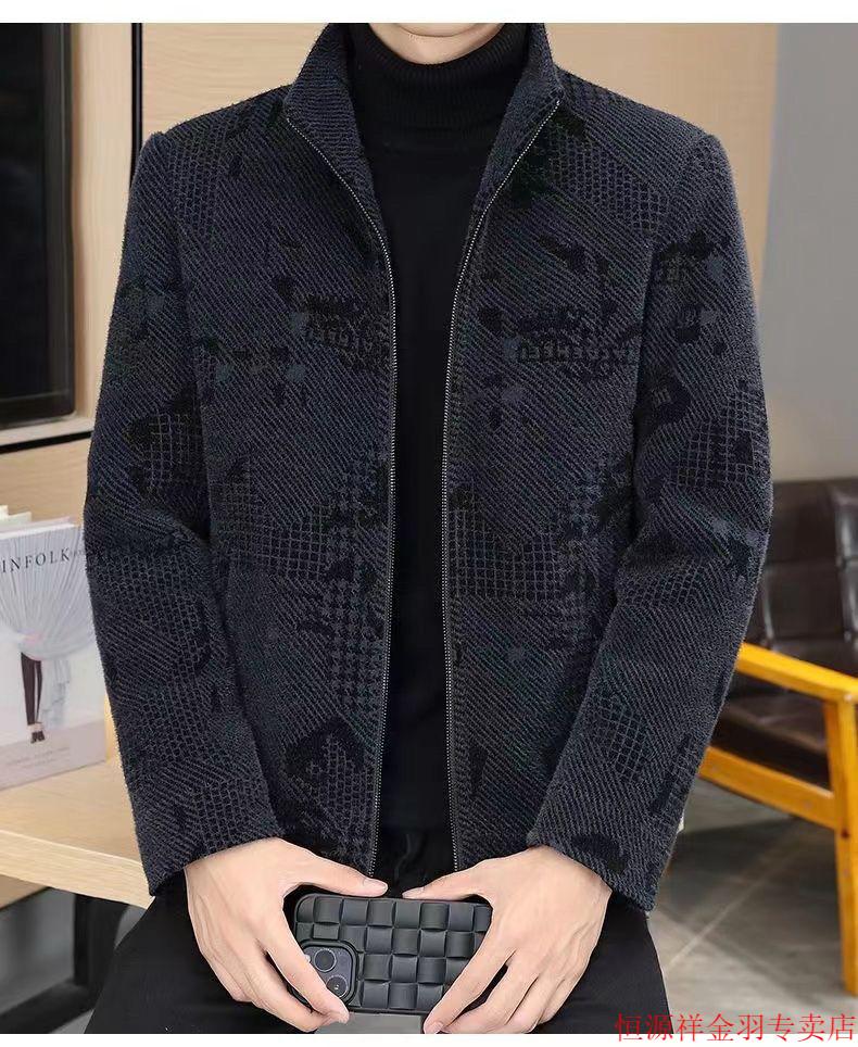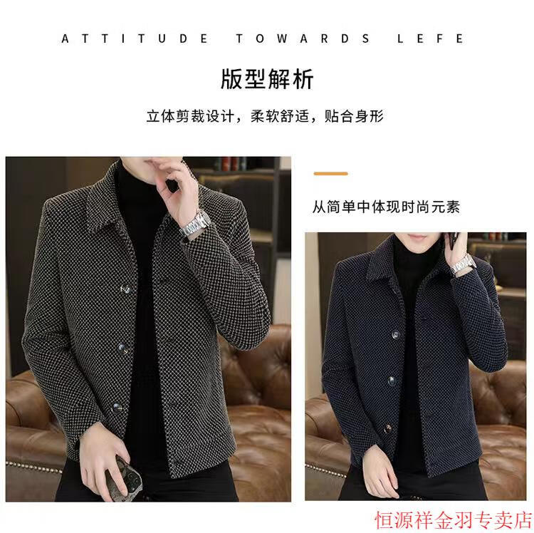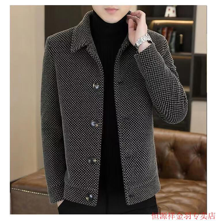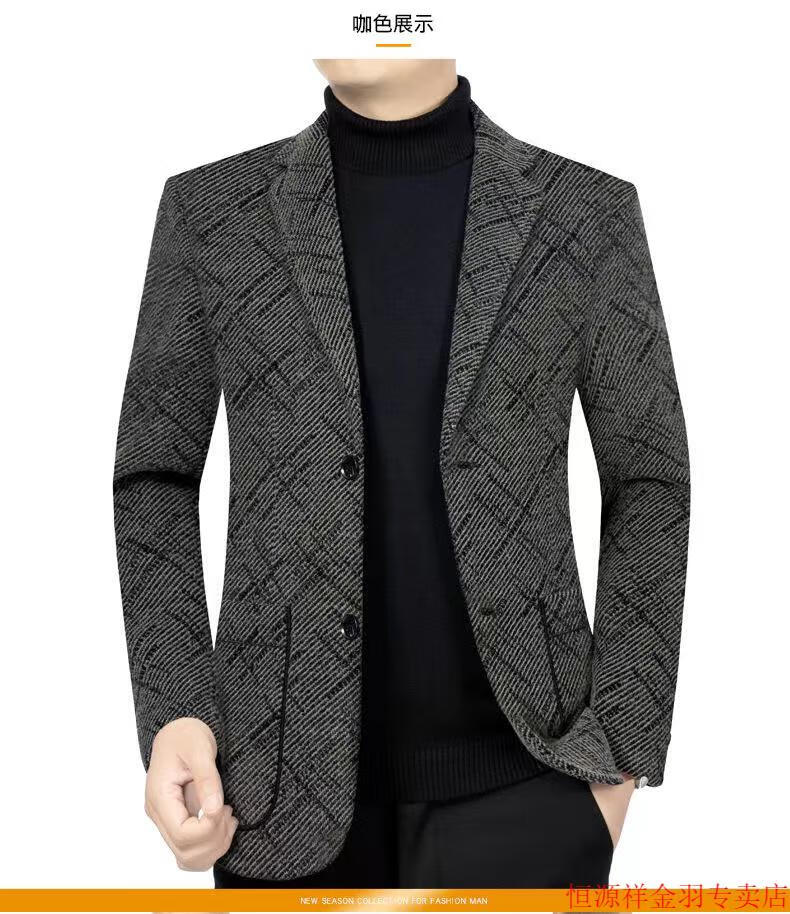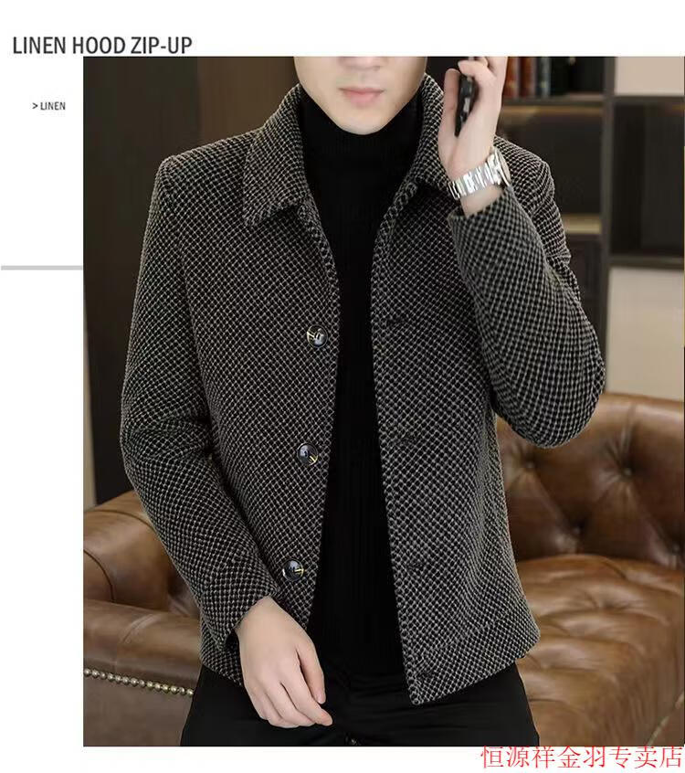 Hengyuanxiang's new spring, autumn and winter woolen jackets for middle-aged men, business casual stand-up collar woolen jackets, men's woolen coats, khaki+velvet++ thick, 71 models, XXS XXL code, recommended 140-155 Jin Jin equals 0.5 kg