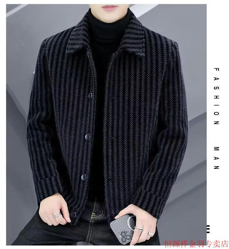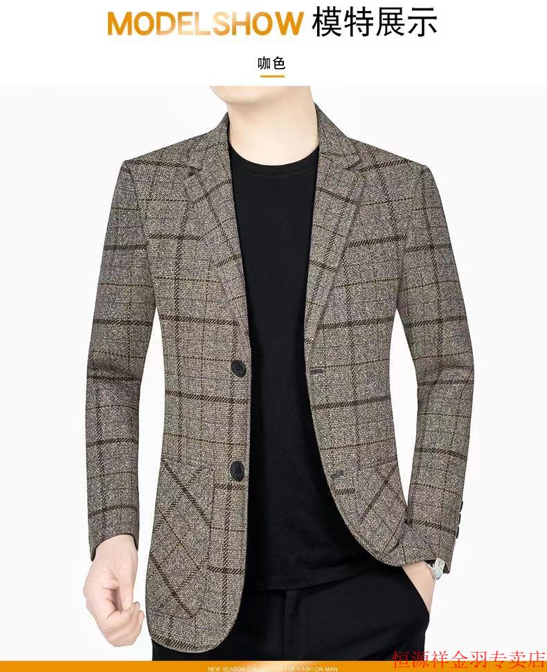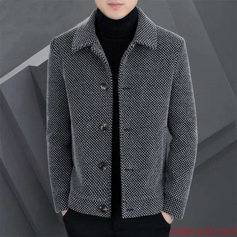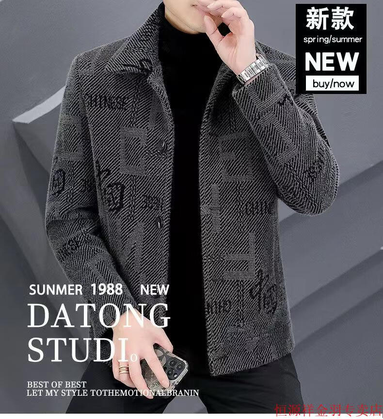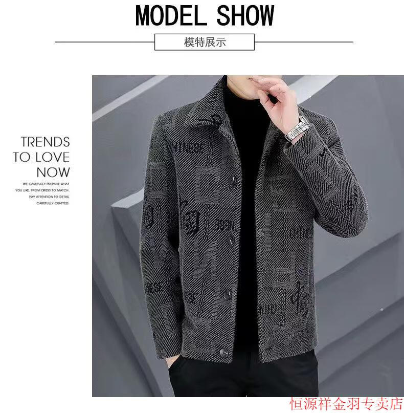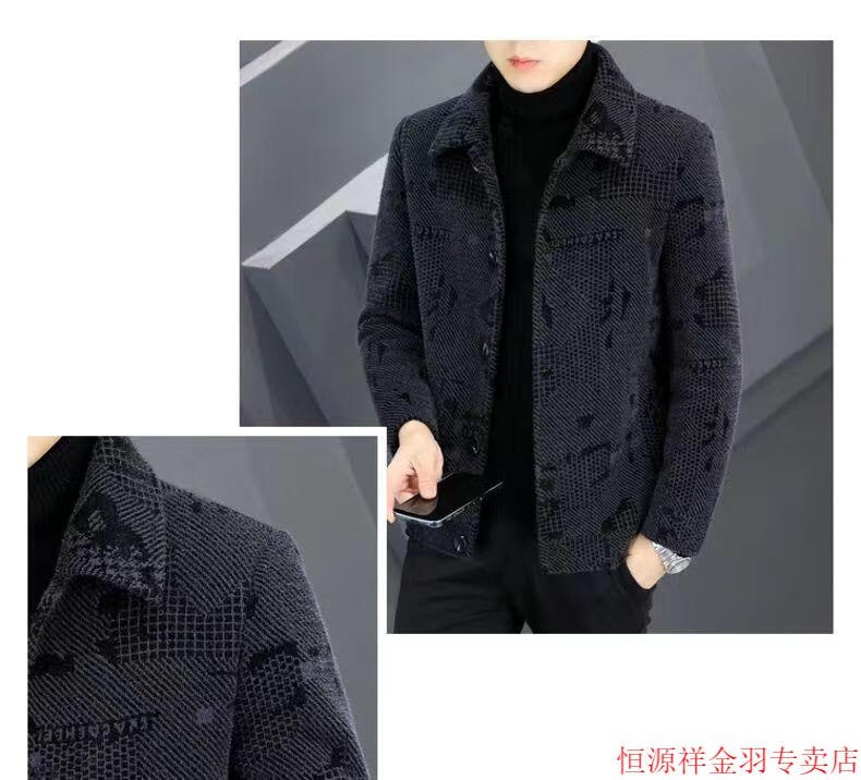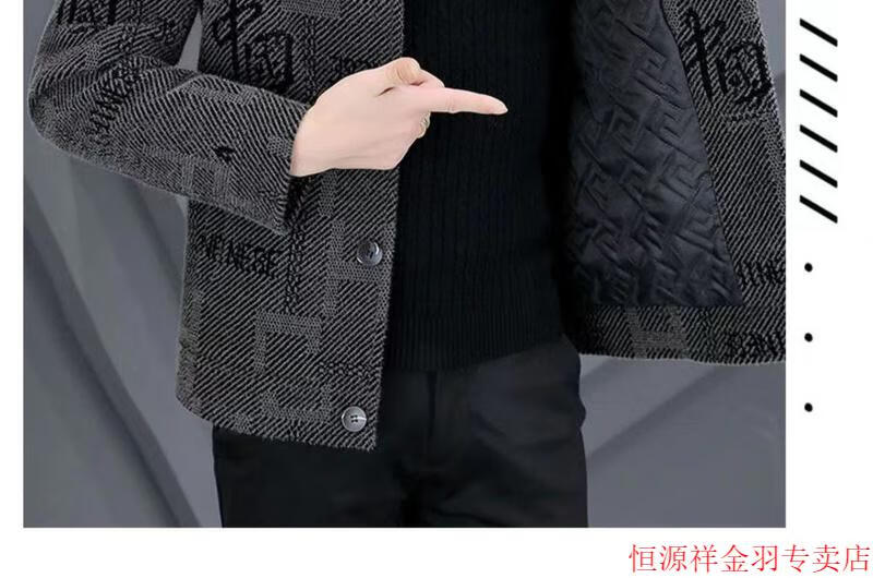 Hengyuanxiang's new spring, autumn and winter woolen jackets for middle-aged men, business casual stand-up collar woolen jackets, men's woolen coats, khaki+velvet++ thick, 71 models, XXS XXL code, recommended 140-155 Jin Jin equals 0.5 kg