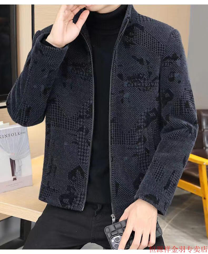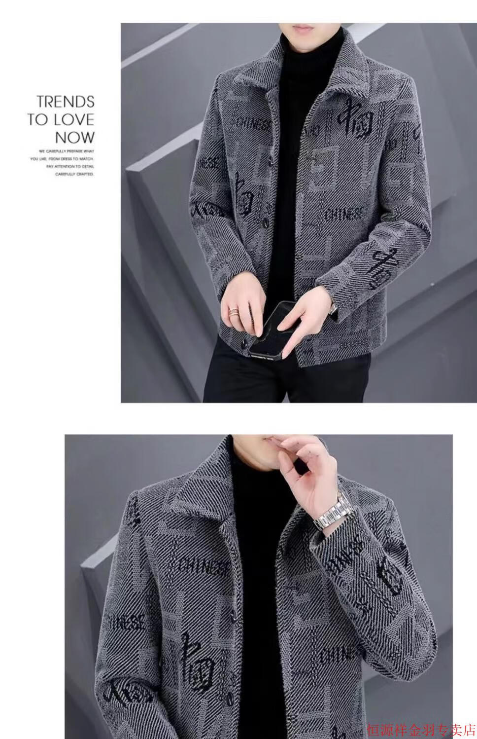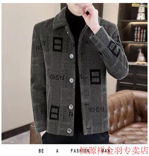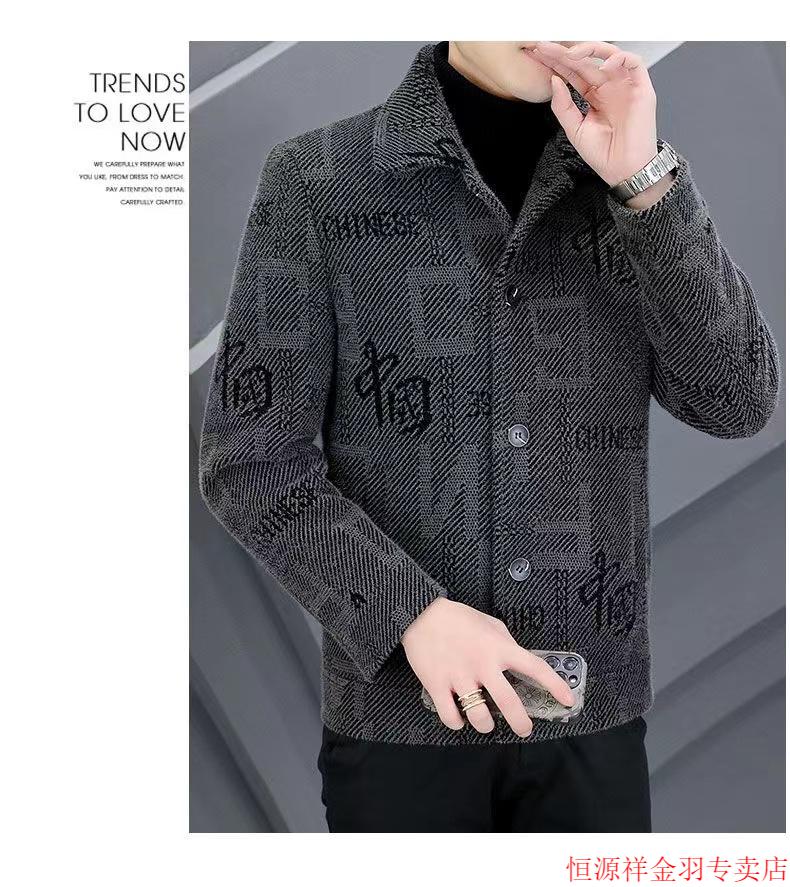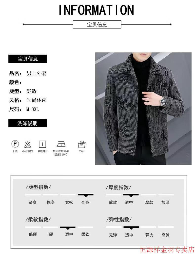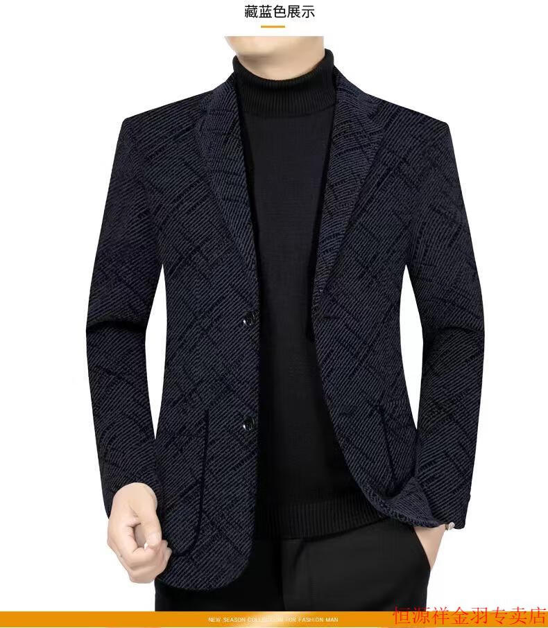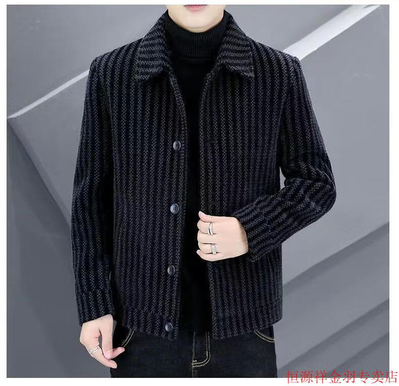 Hengyuanxiang's new spring, autumn and winter woolen jackets for middle-aged men, business casual stand-up collar woolen jackets, men's woolen coats, khaki+velvet++ thick, 71 models, XXS XXL code, recommended 140-155 Jin Jin equals 0.5 kg