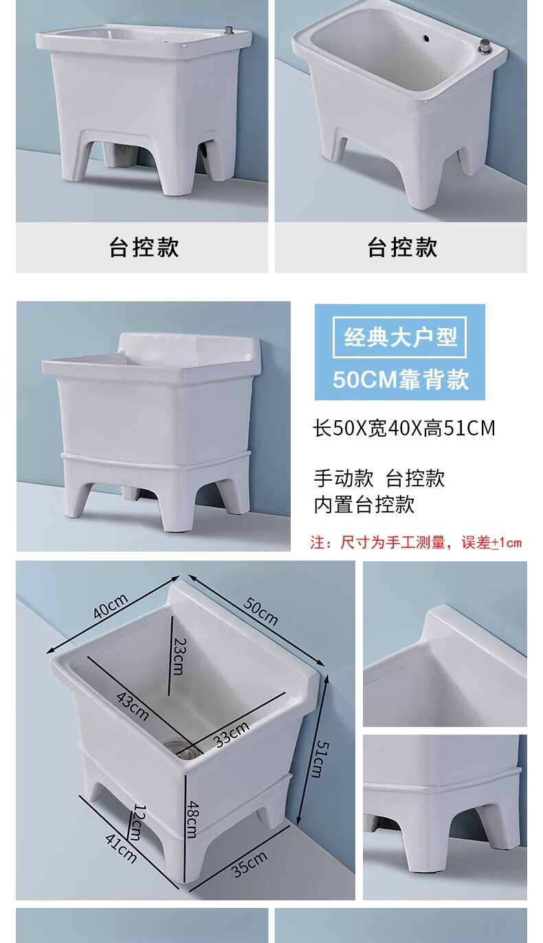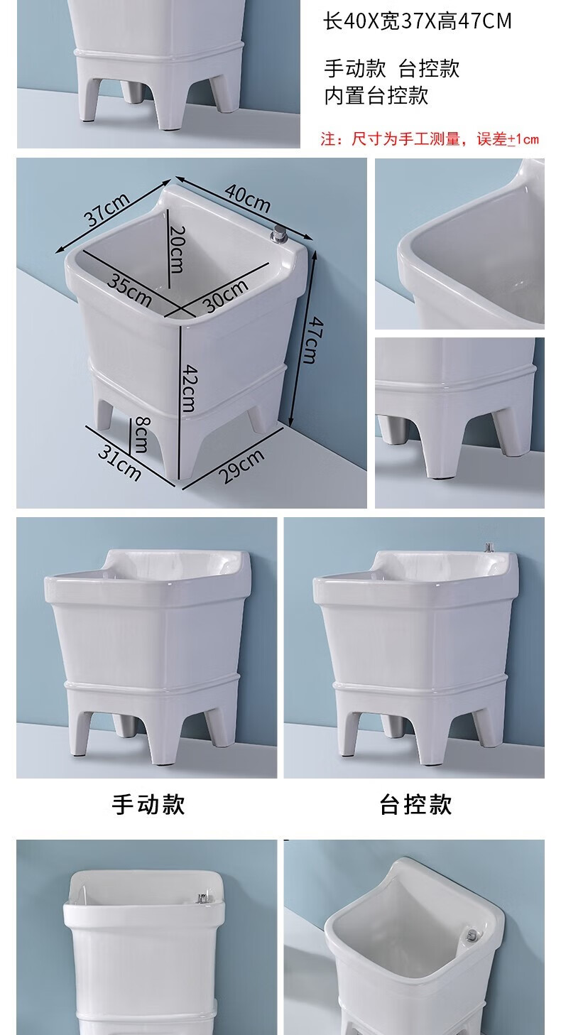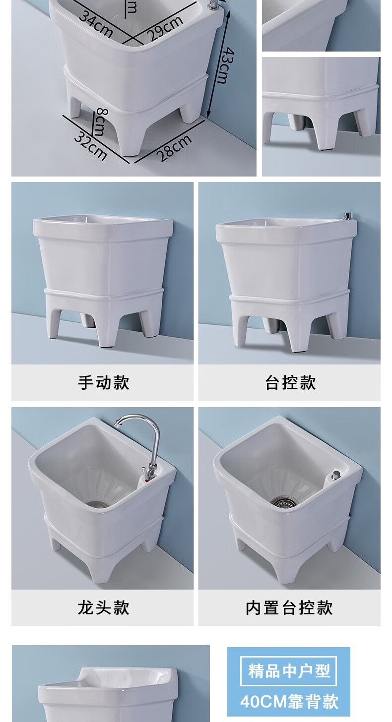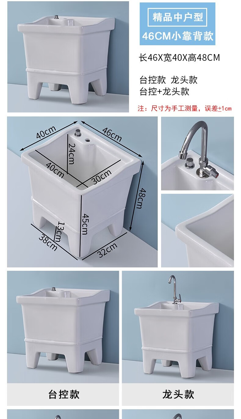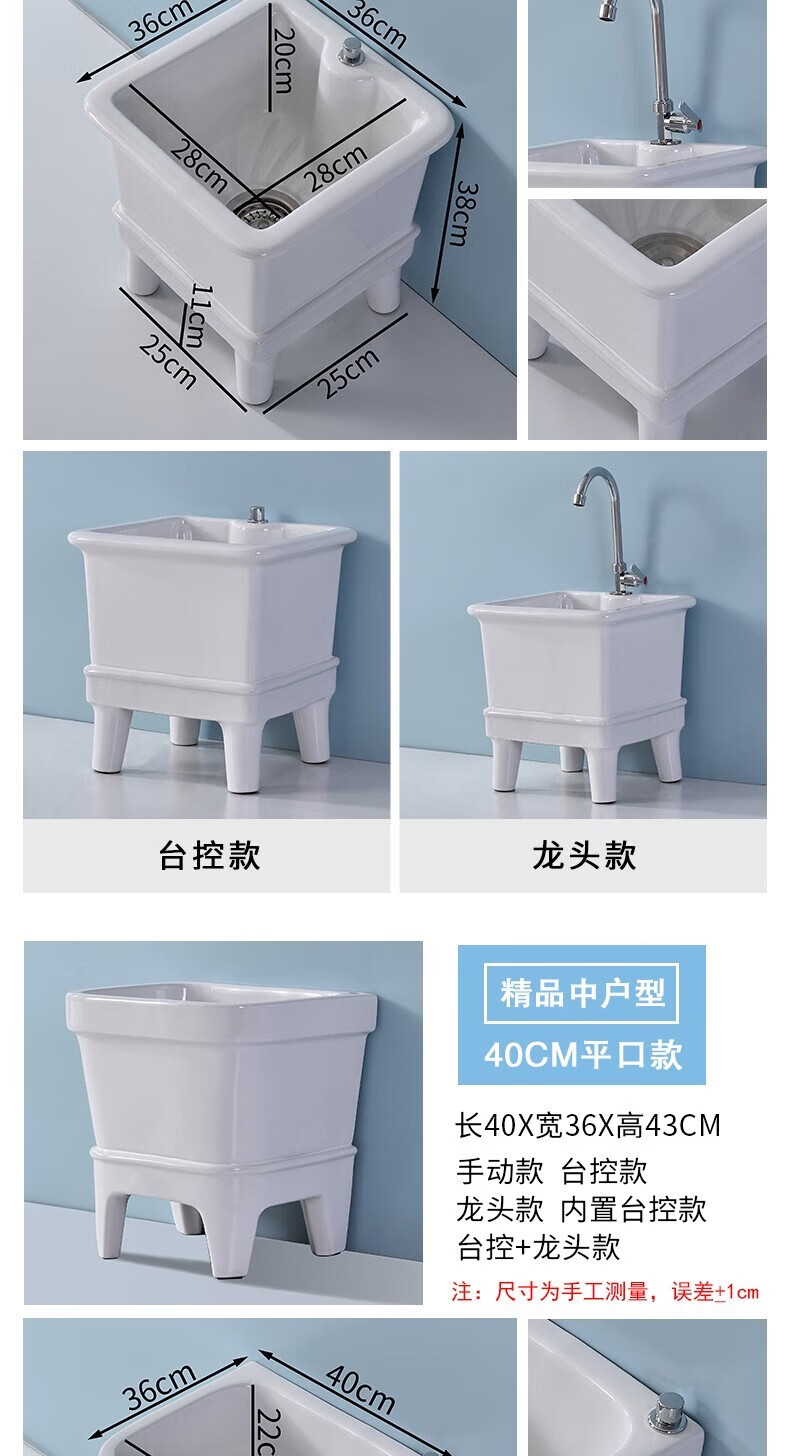 Jinlanke Square Small Large Ceramic Pool with High Legs and Deepened Home Balcony Mop Pool Mop Pool Convenient Taiwan Controlled Drainer 40cm Taiwan Controlled + Faucet Model