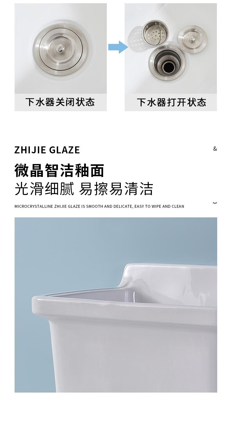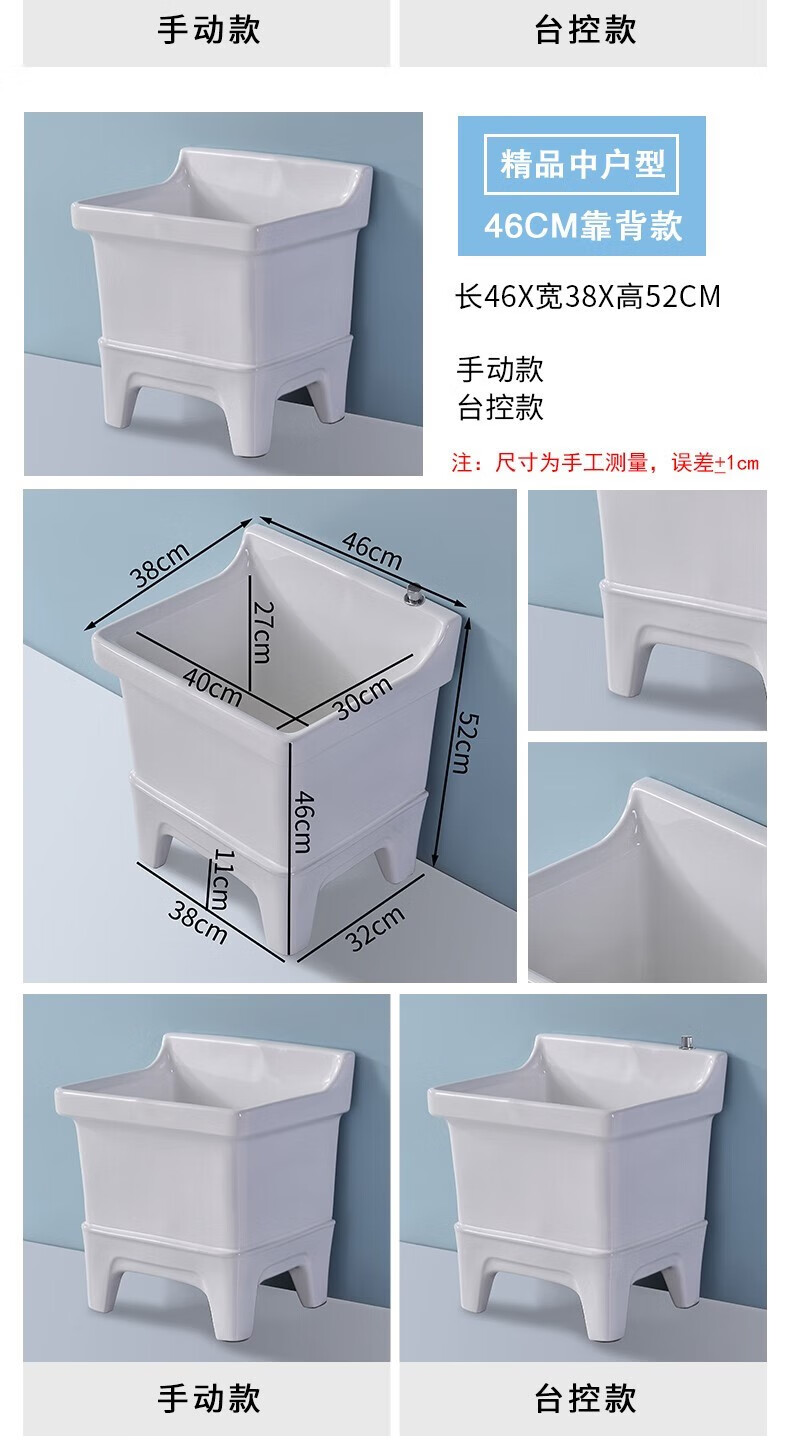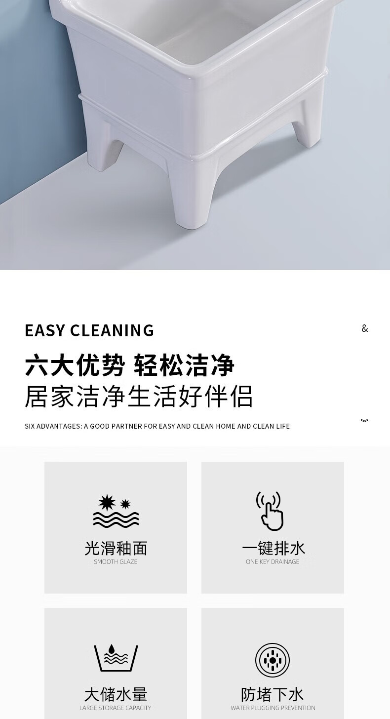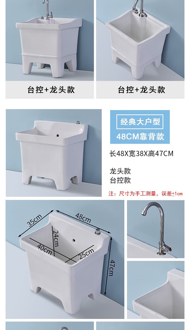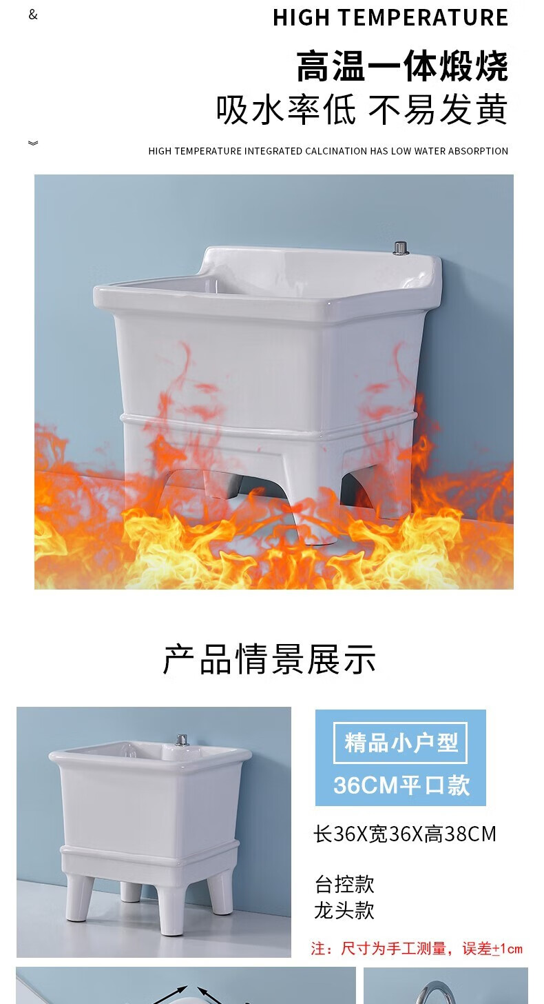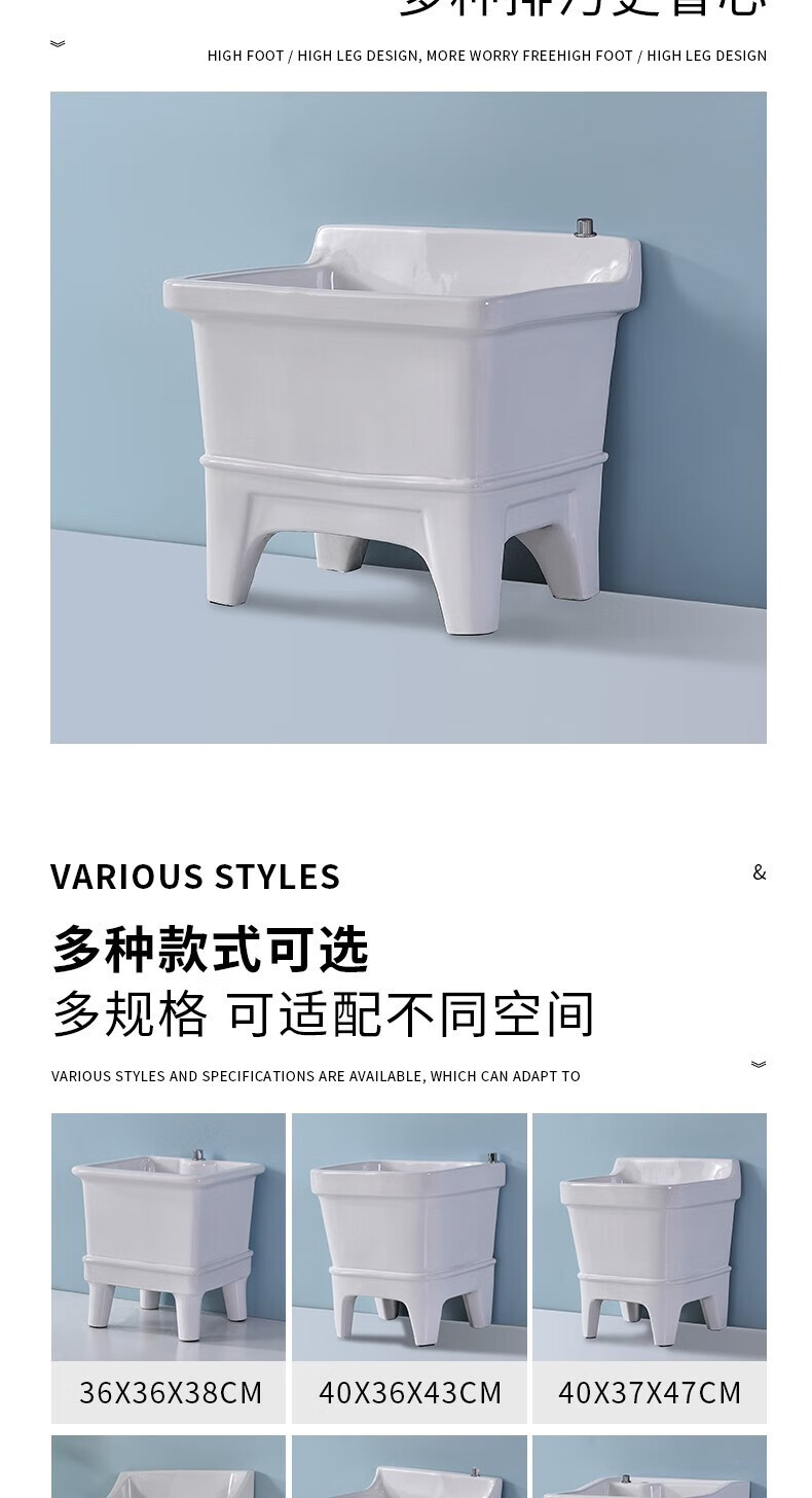 Jinlanke Square Small Large Ceramic Pool with High Legs and Deepened Home Balcony Mop Pool Mop Pool Convenient Taiwan Controlled Drainer 40cm Taiwan Controlled + Faucet Model