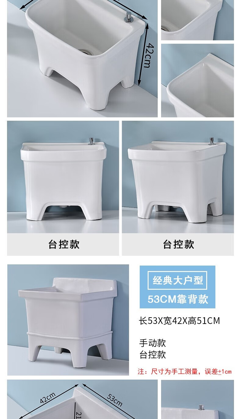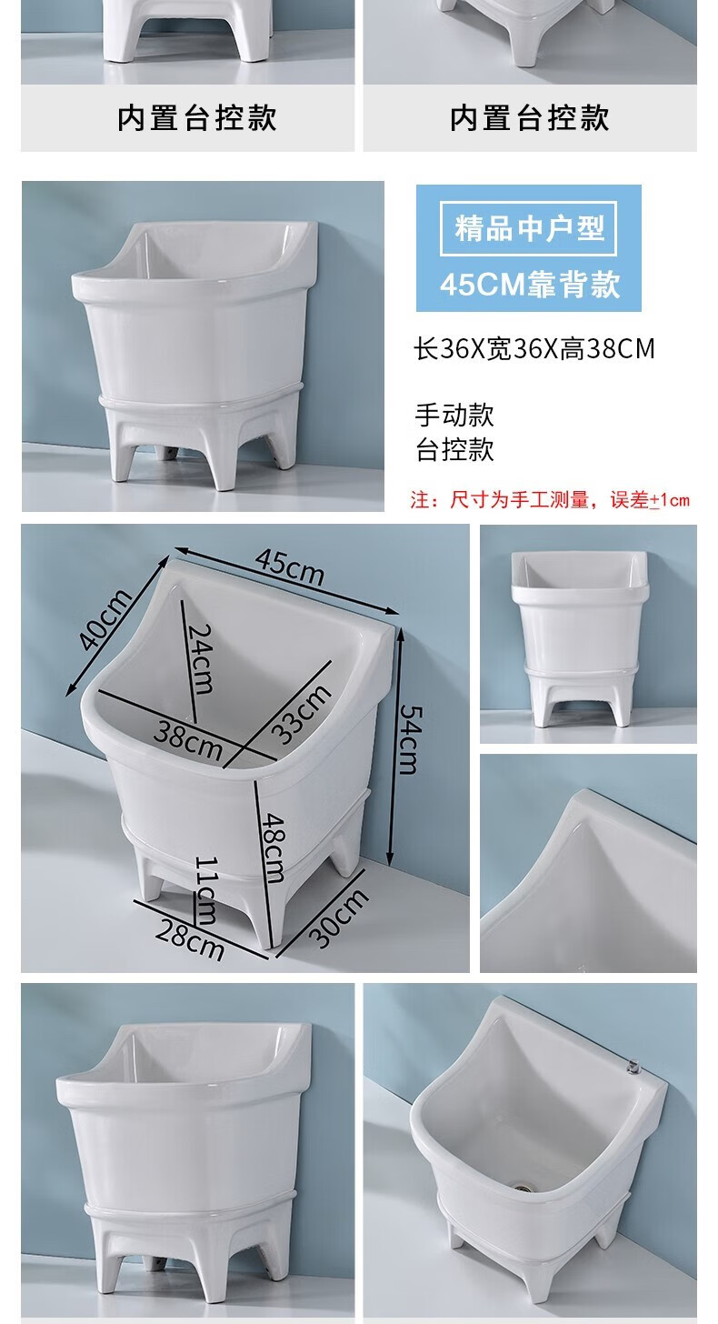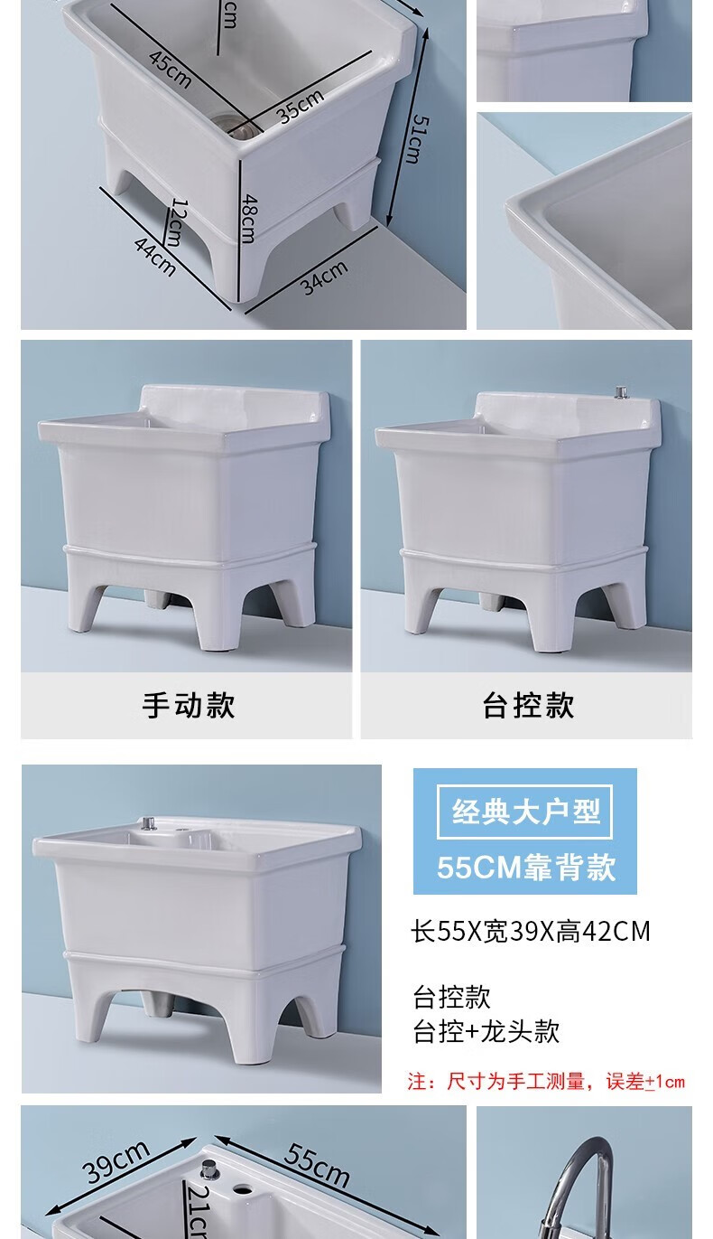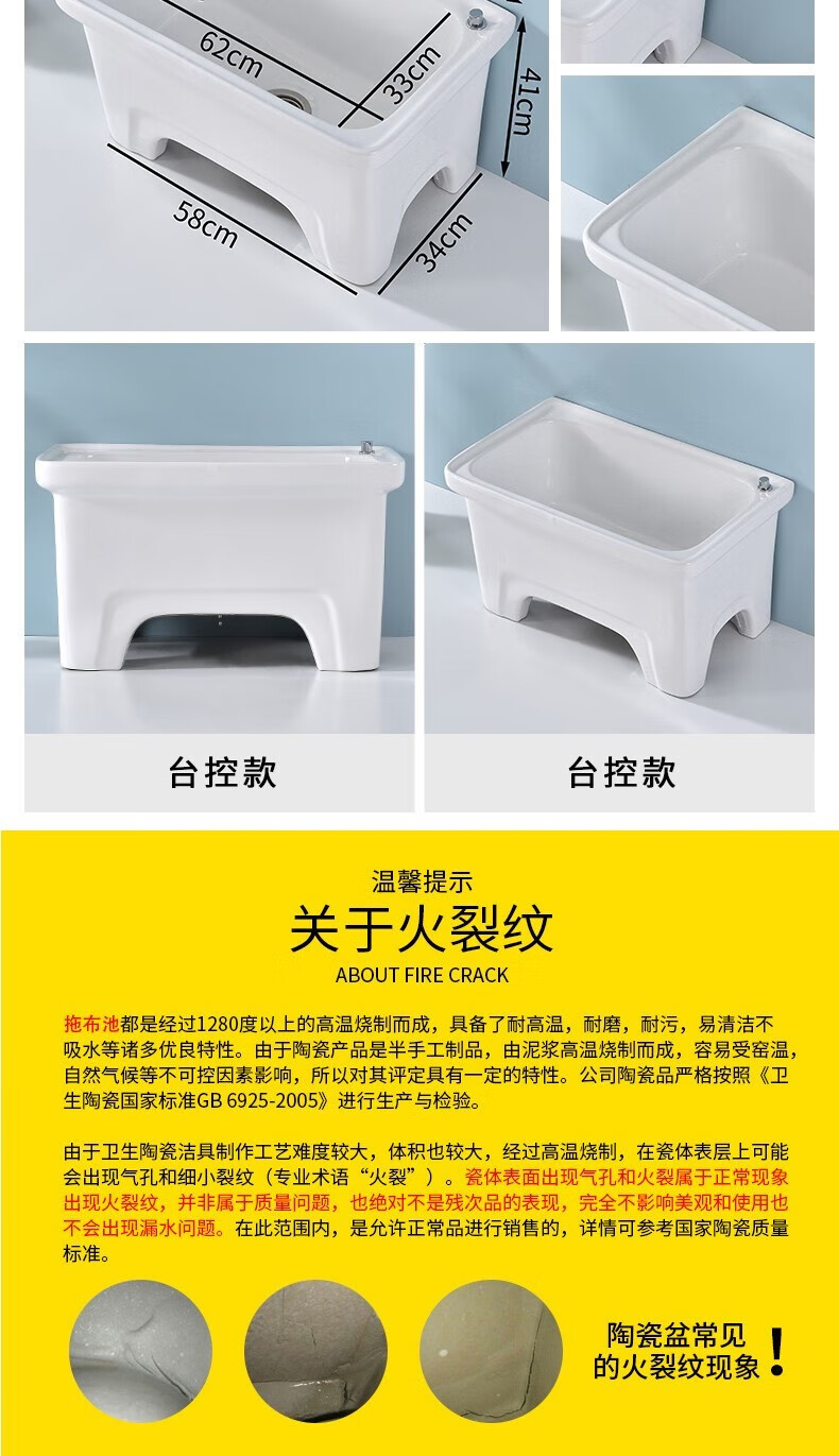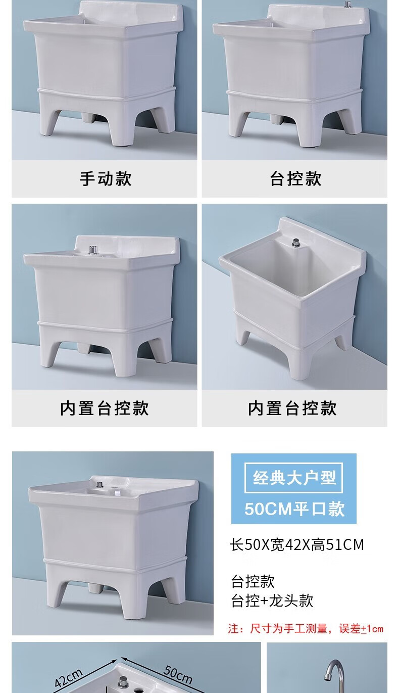 Jinlanke Square Small Large Ceramic Pool with High Legs and Deepened Home Balcony Mop Pool Mop Pool Convenient Taiwan Controlled Drainer 40cm Taiwan Controlled + Faucet Model