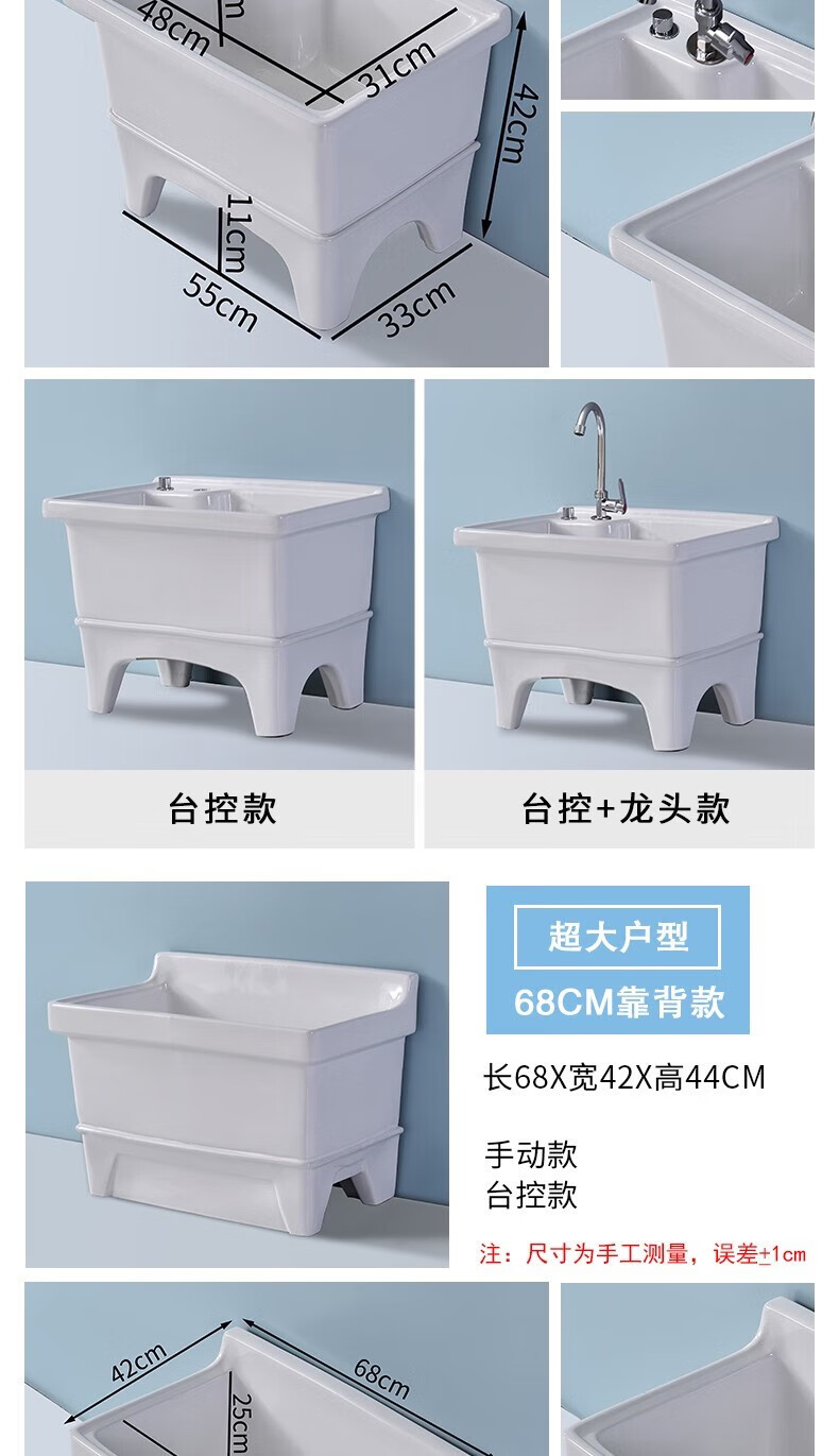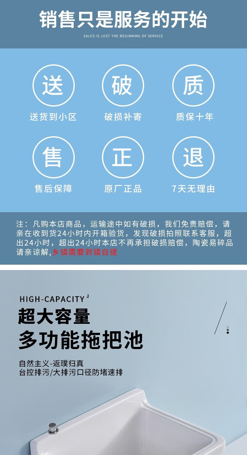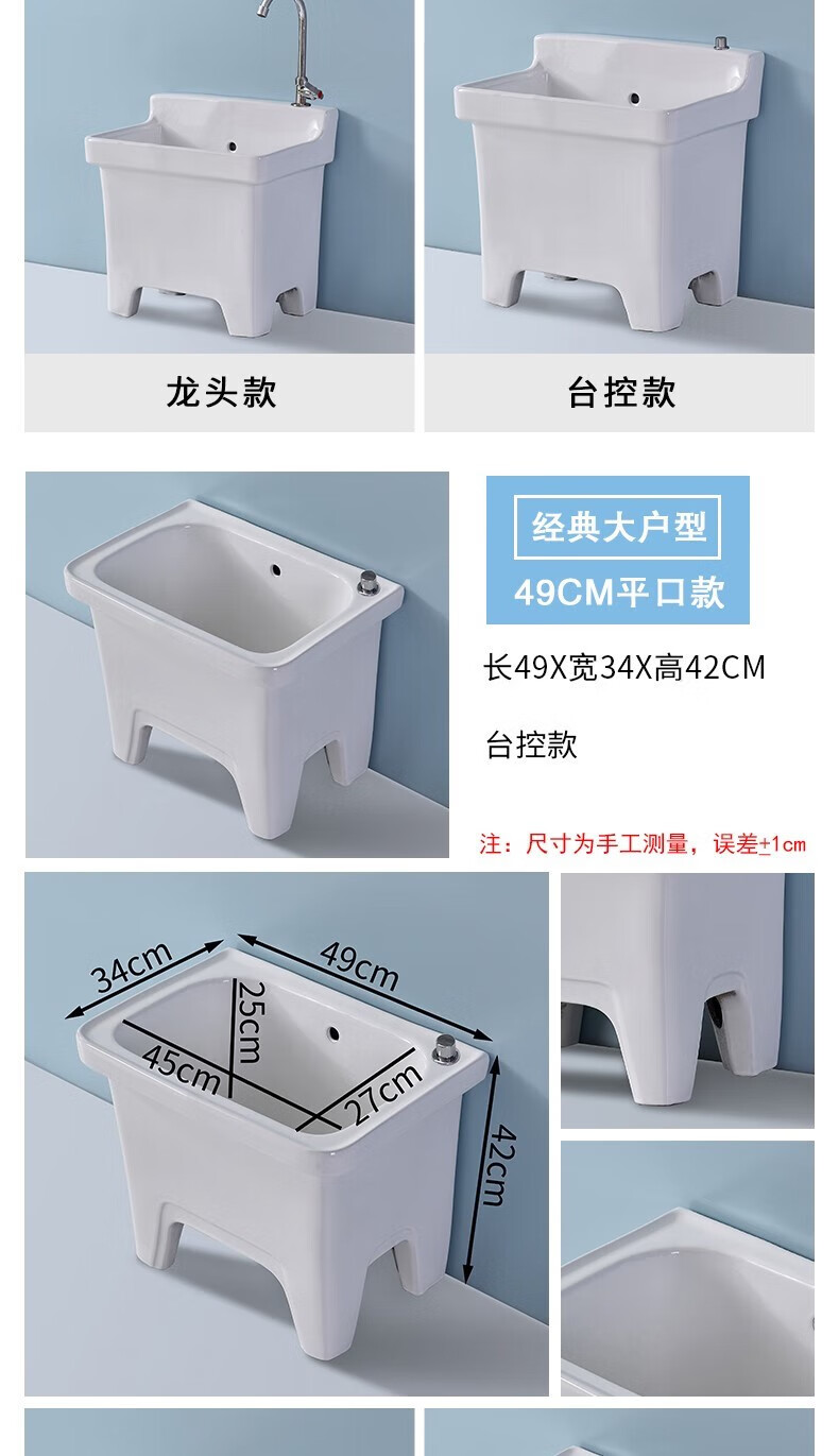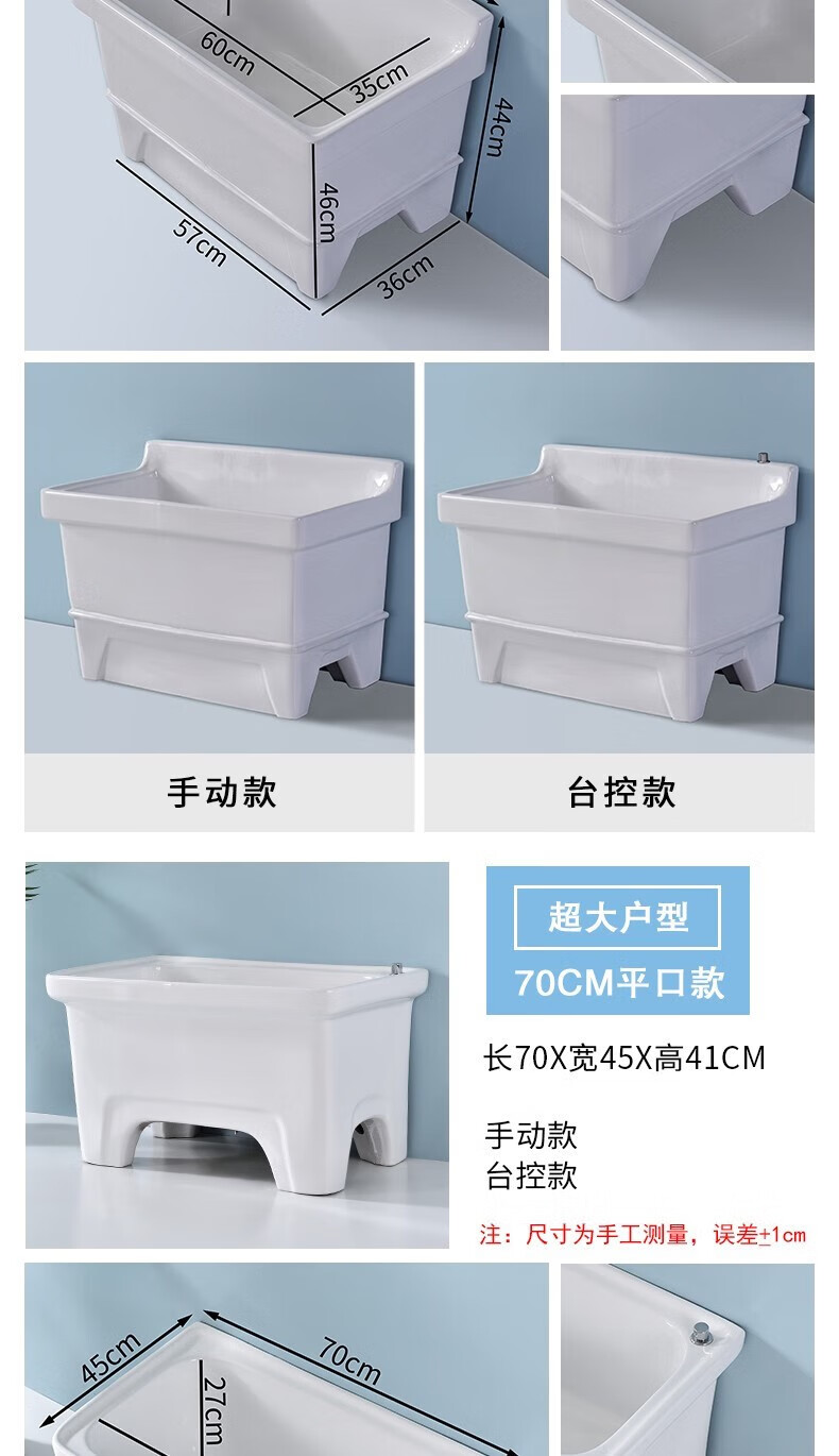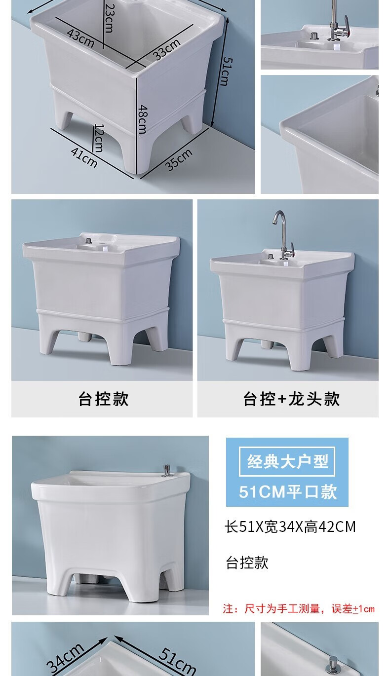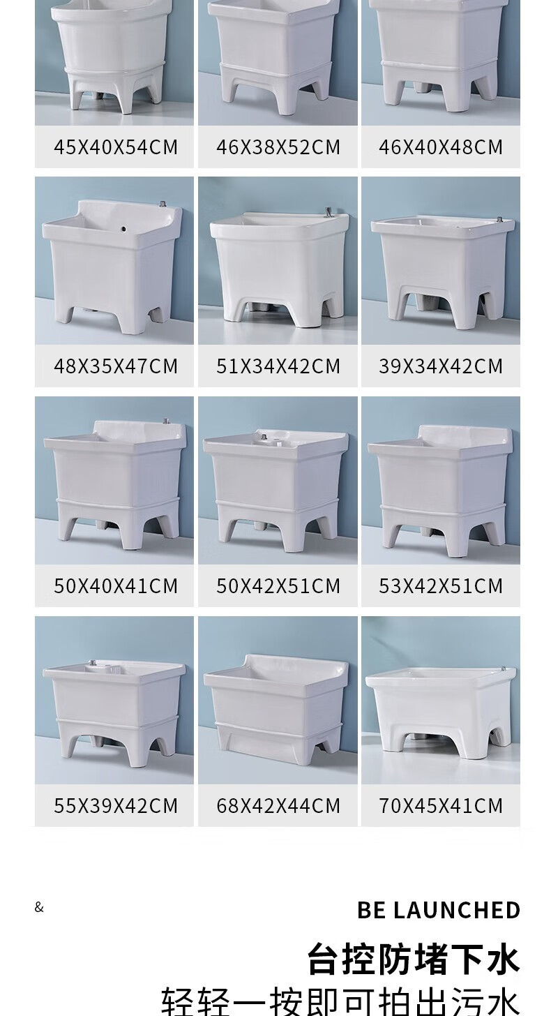 Jinlanke Square Small Large Ceramic Pool with High Legs and Deepened Home Balcony Mop Pool Mop Pool Convenient Taiwan Controlled Drainer 40cm Taiwan Controlled + Faucet Model