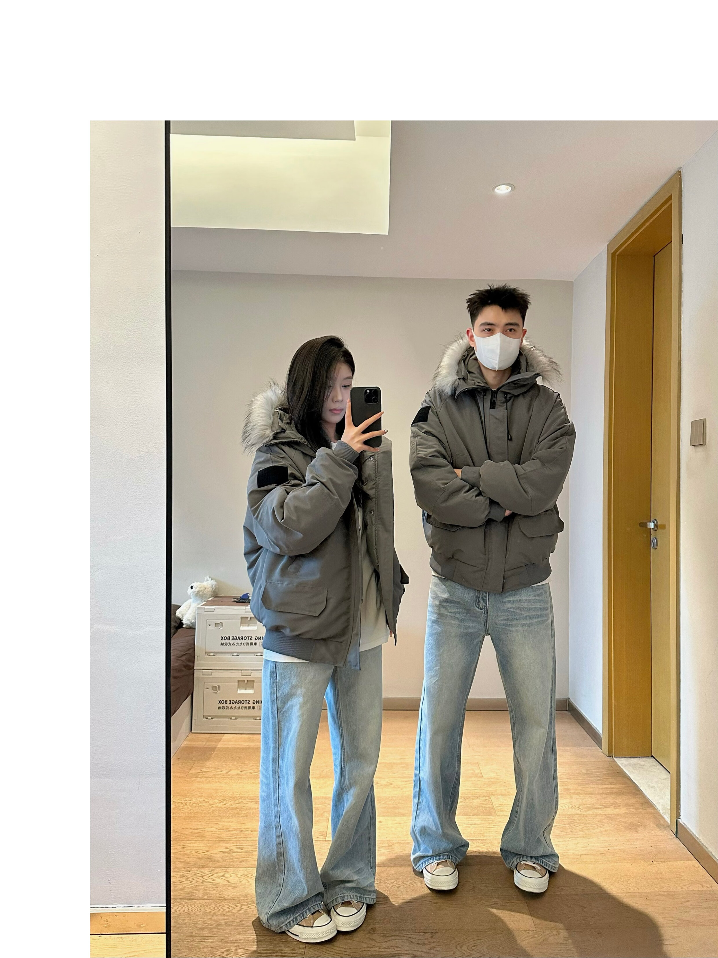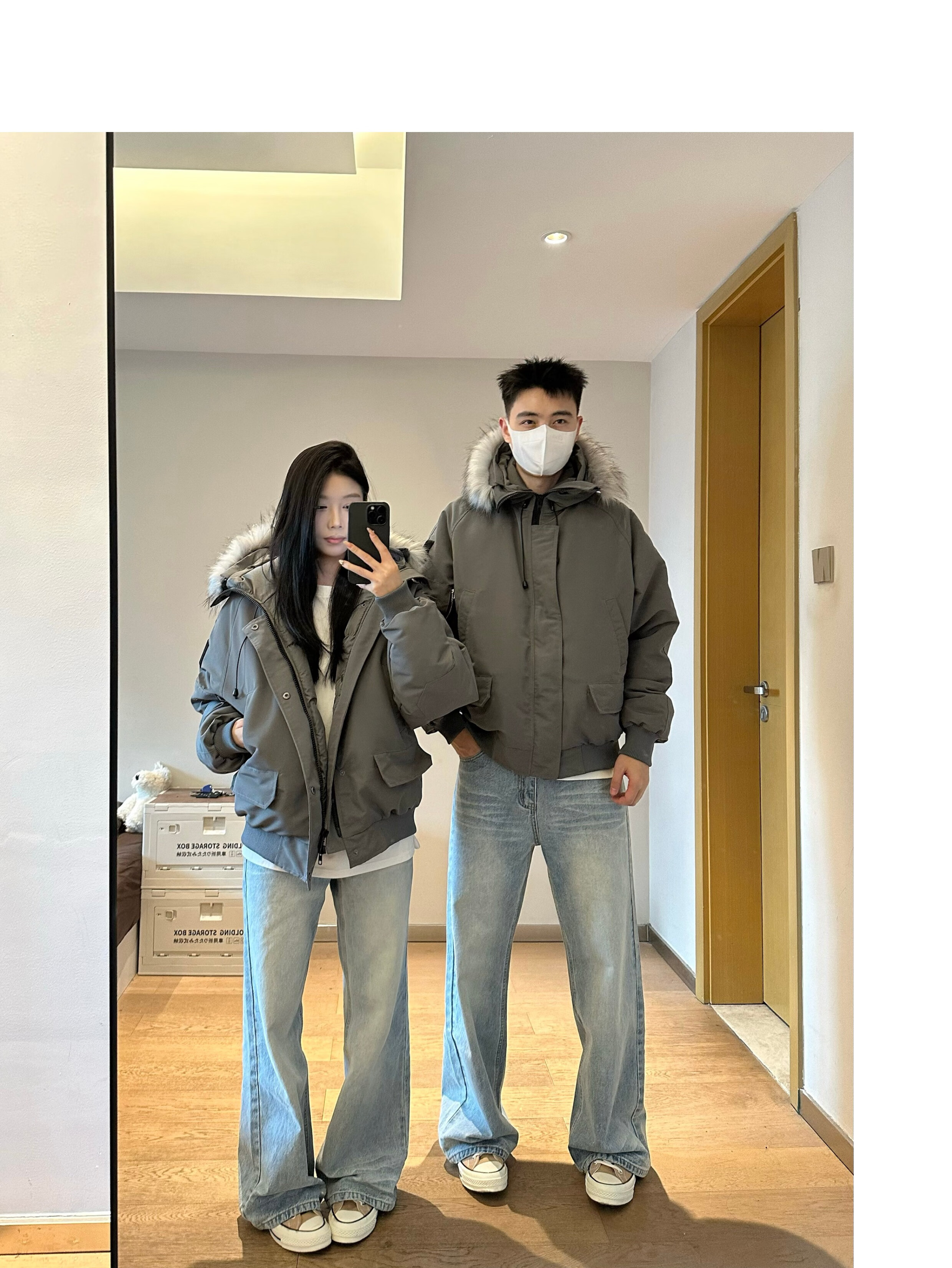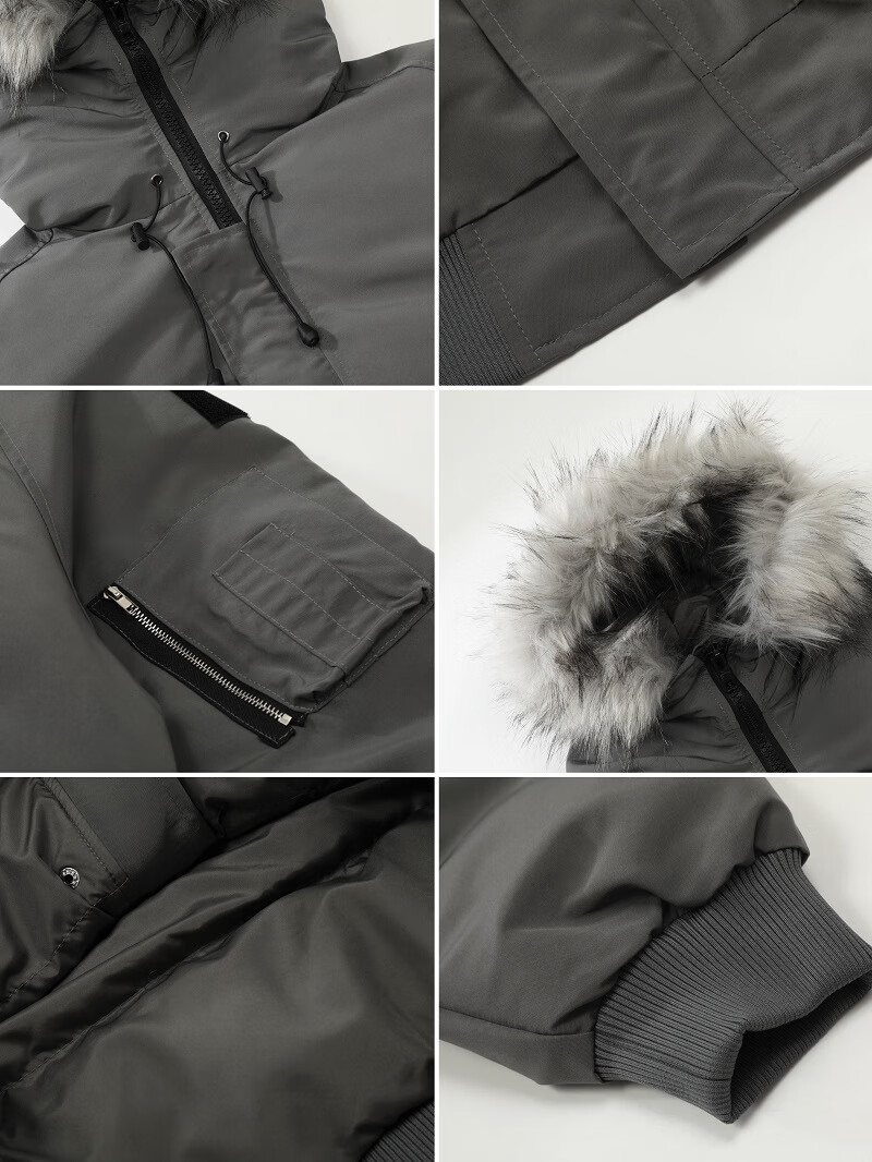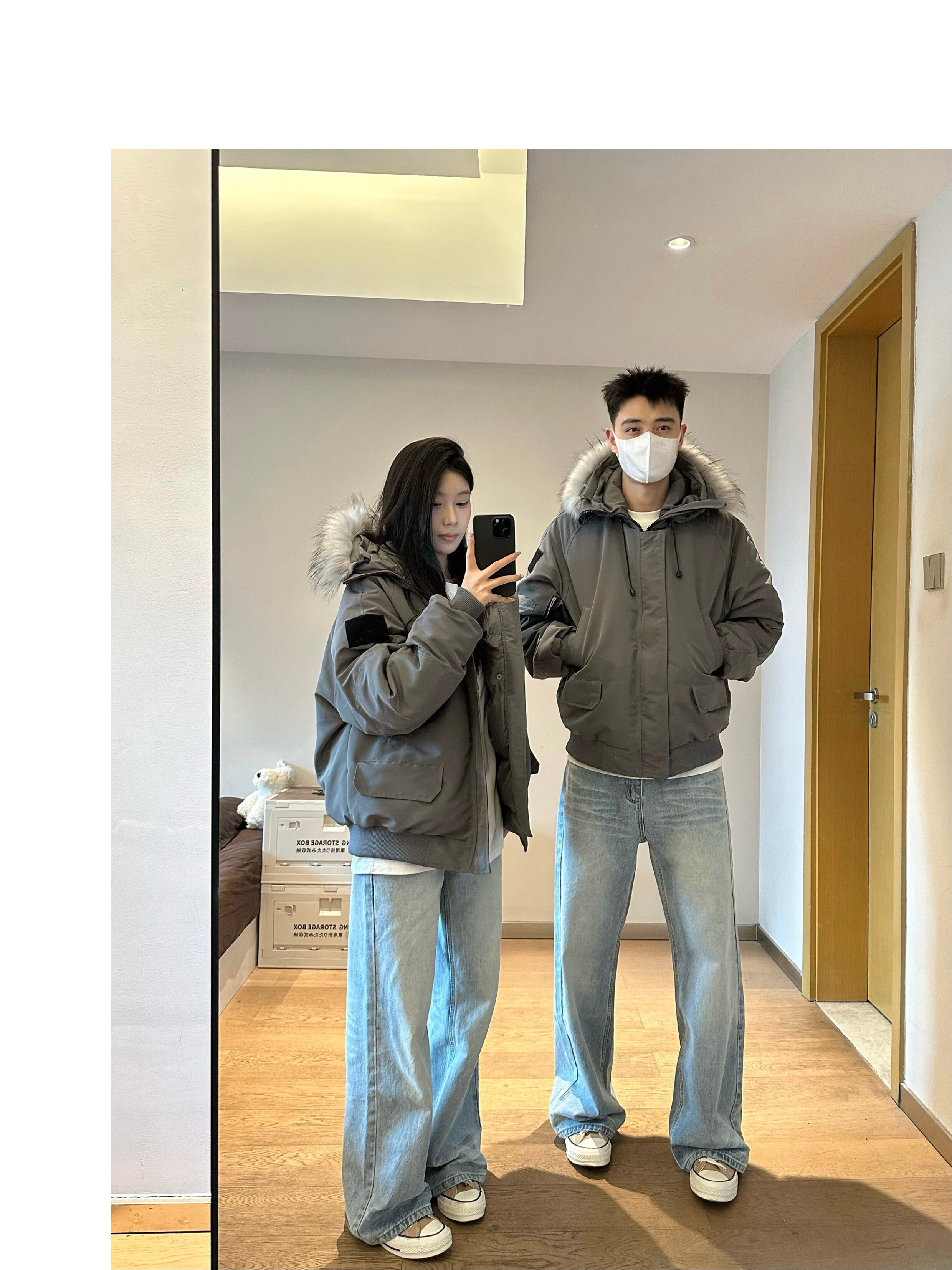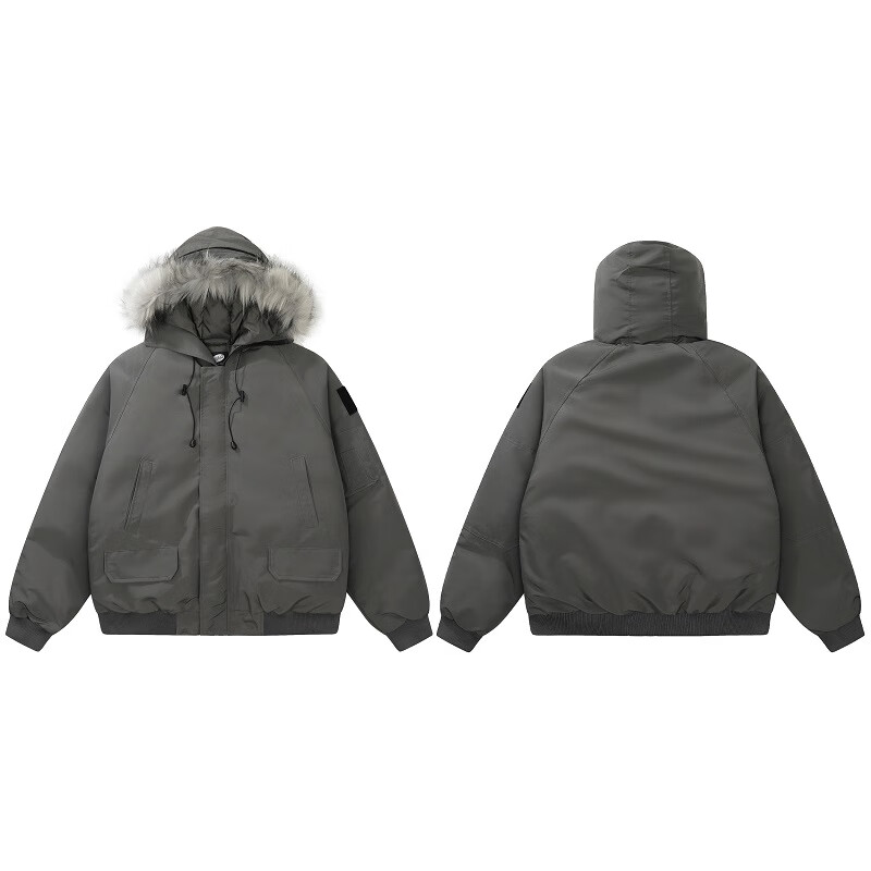 7 high-quality American retro cotton jackets for men in autumn and winter trendy brand jackets with detachable fur collar, thickened warm and loose couple jackets KNFS-N413 gray XL