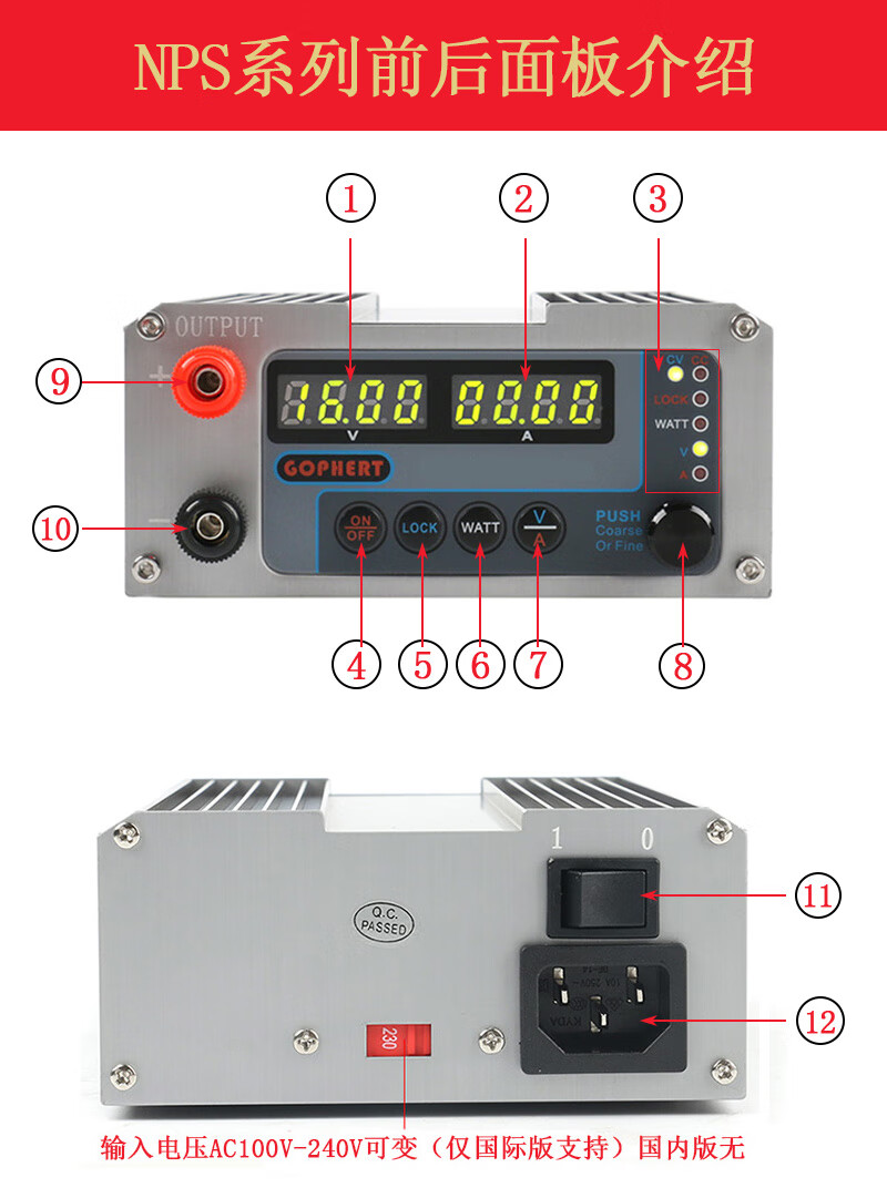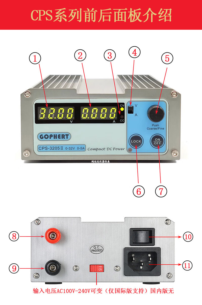 GOPHERT CPS-3010II/NPS-3001 Portable DC Regulated Power Supply CNC Adjustable 30V10A NPS-3001 (30V10A) Front Terminal Domestic Version (AC220V)