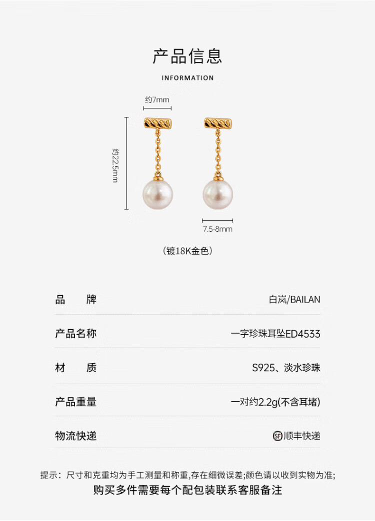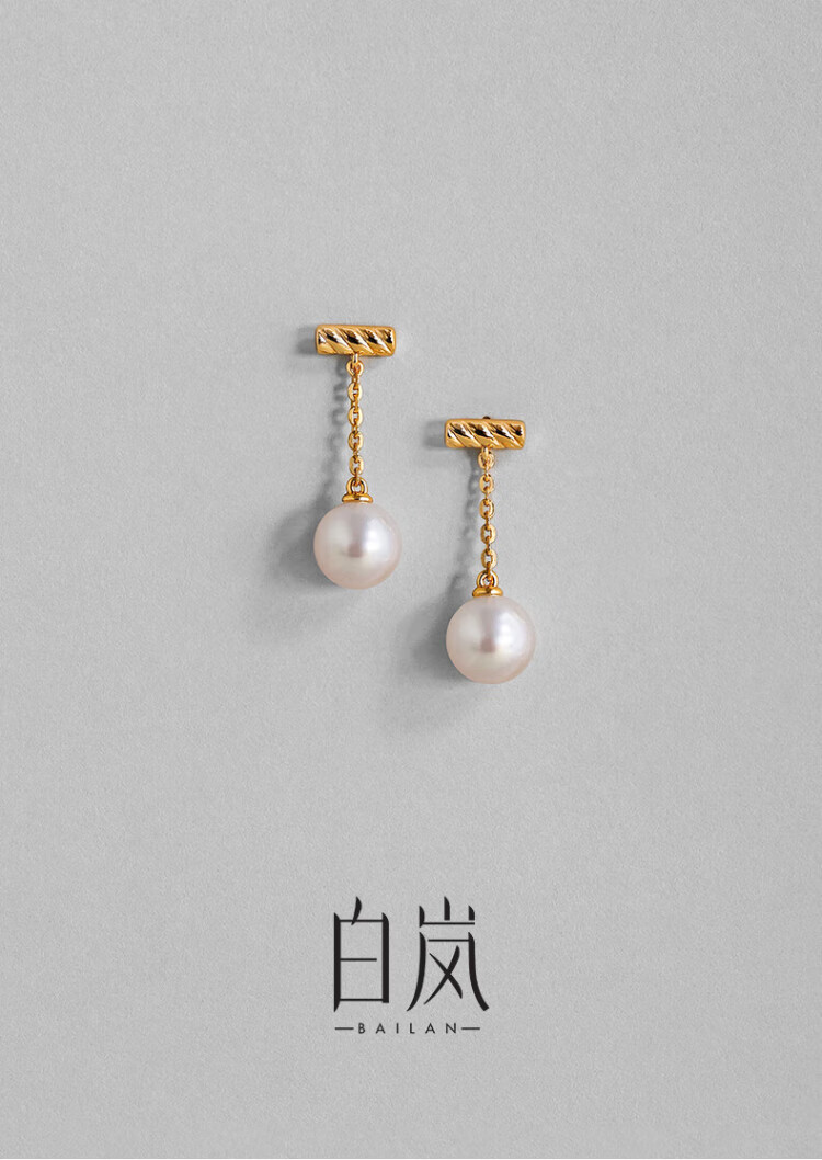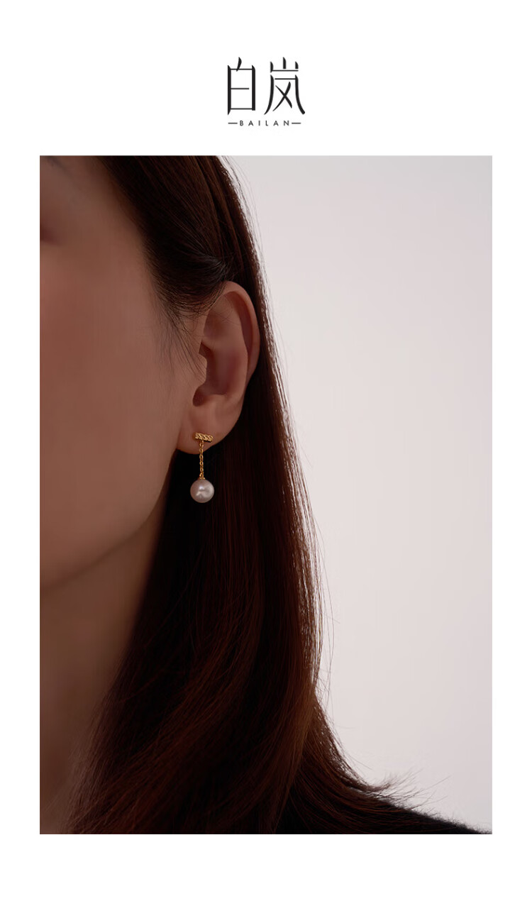 Bai Lan one-word pearl earrings freshwater pearl earrings exquisite high-end light luxury earrings accessories birthday gift for my wife one-word pearl earrings