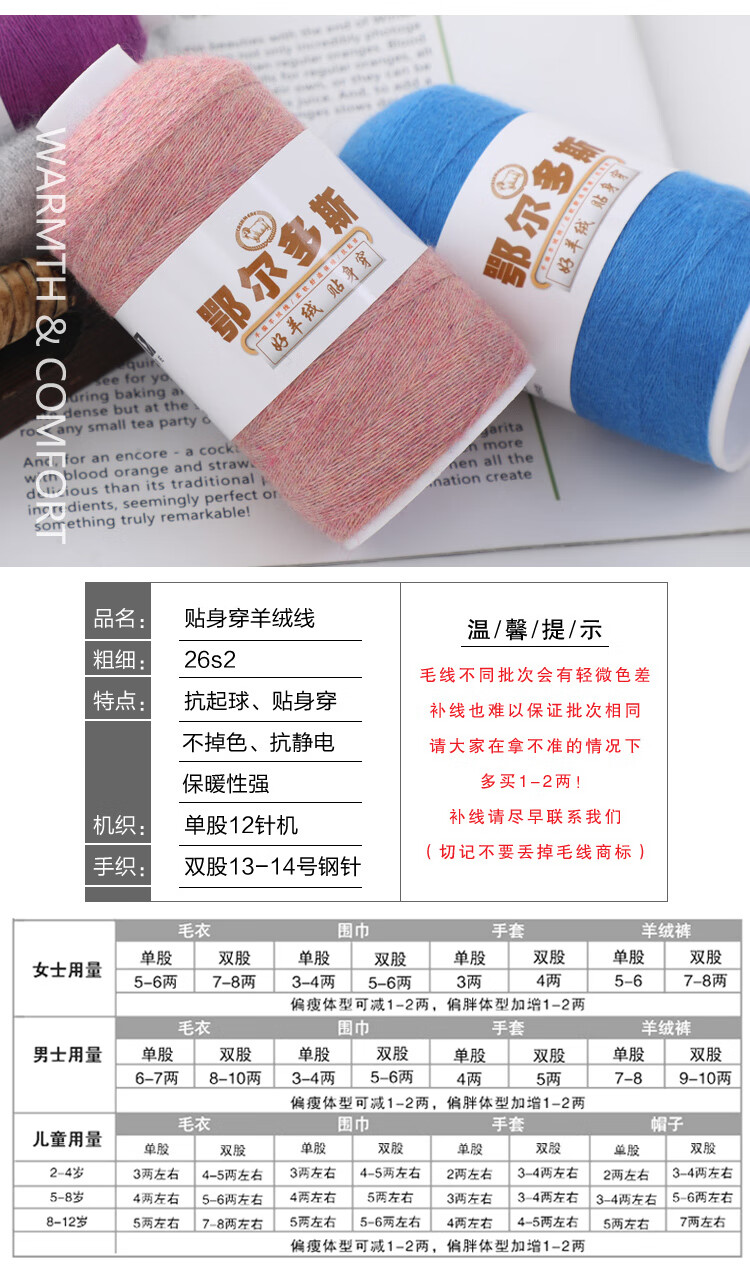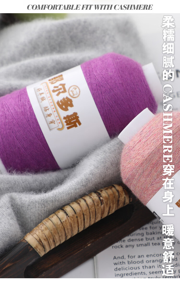 Embroidered Luoshang pure cashmere super velvet genuine hand-knitted machine-woven cashmere thread sweater thin thread diy wool thread baby scarf thread 01-pure white (buy one or two, get one or two free)