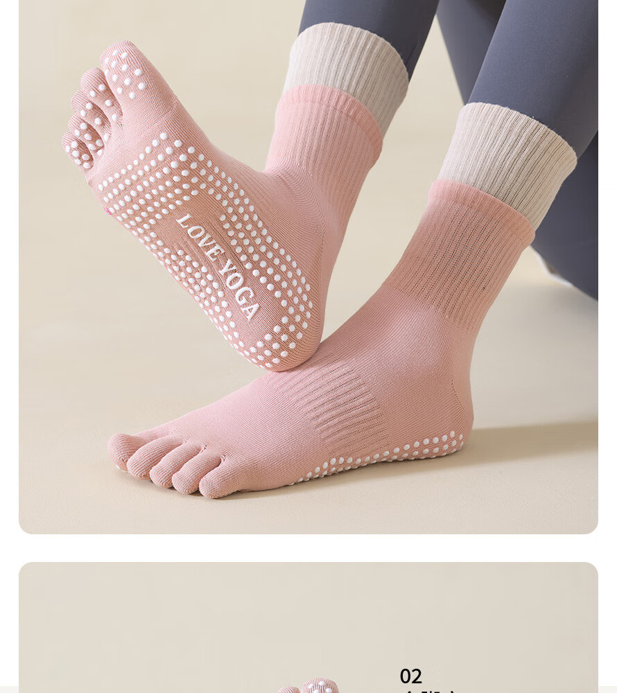 LULU CENTURY Yoga Socks Women's Non-Slip Socks Pure Cotton Toe Socks Pilates Split Toe Socks Women's Indoor Fitness Mid-Tube Socks Light Purple One Size