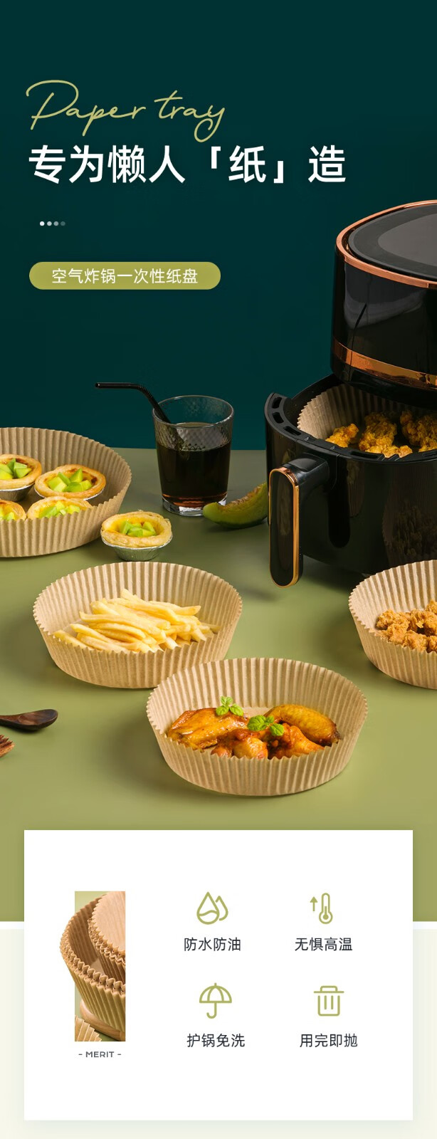 Camellia (CHAHUA) air fryer paper pad silicone oil paper pot tin foil oven special paper food food grade household baking paper large size 80 sheets diameter 20cm