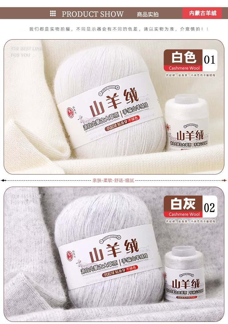 Embroidered Luoshang cashmere thread knitted scarf hand-knitted diy medium thick cashmere handmade scarf self-knitted sweater cashmere wool ball diy 01 white (buy one or two, get one or two free)