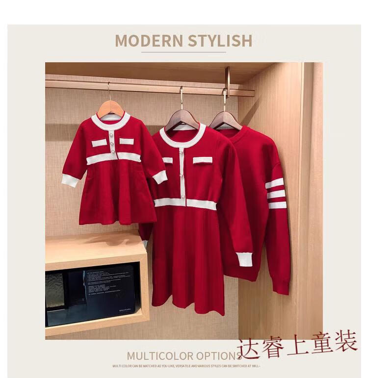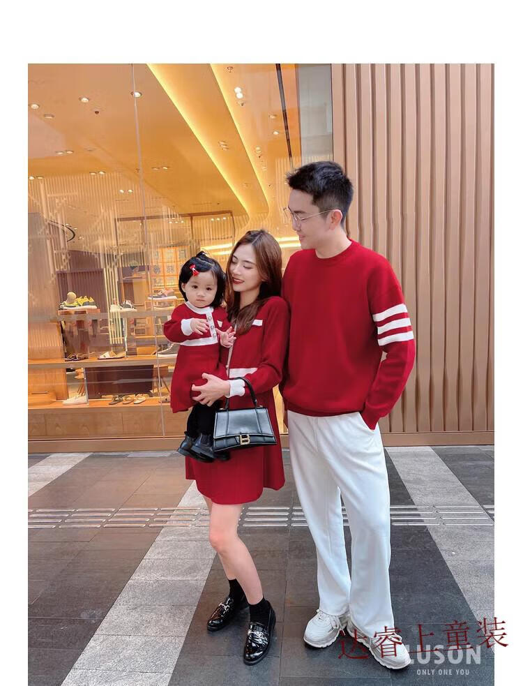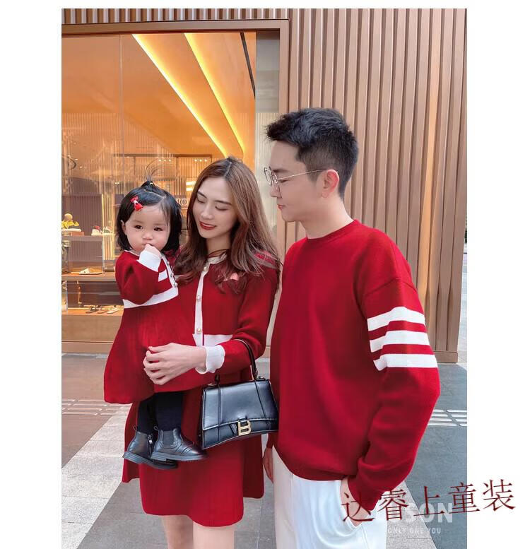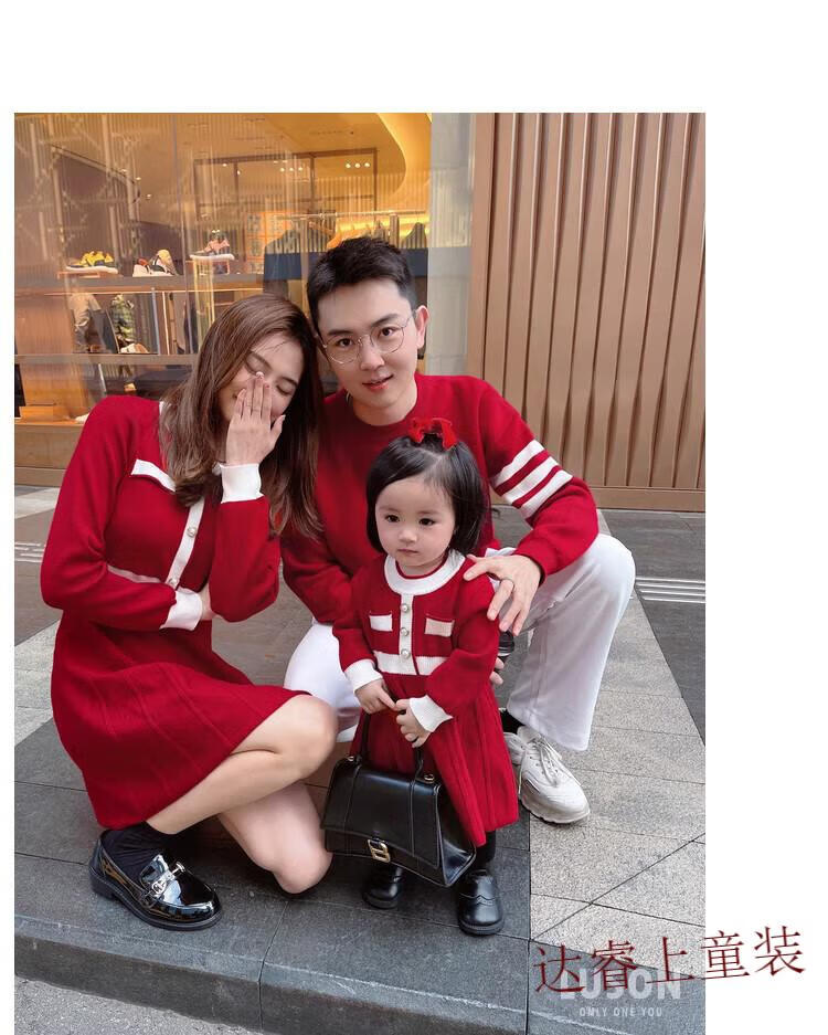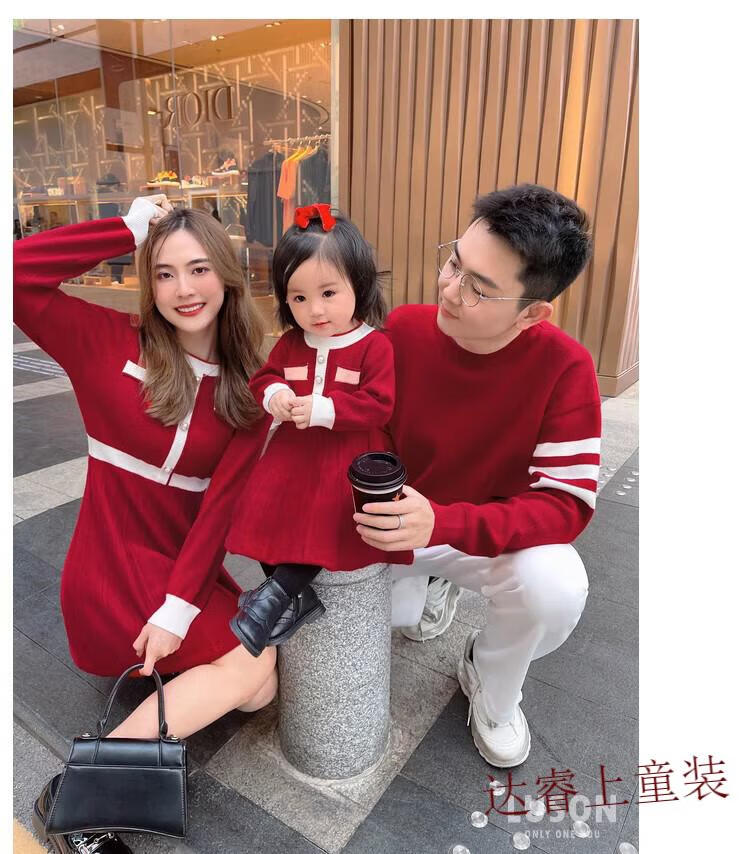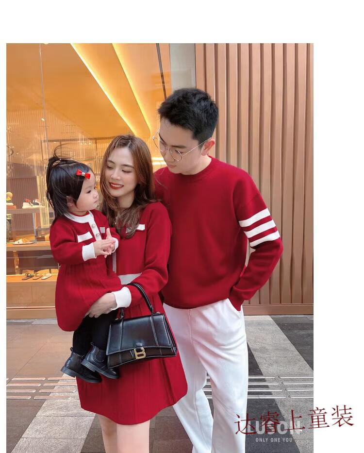G.duck family portrait parent-child wear high-end family of three and four mother-child mother-daughter dress 2025 new autumn and winter style hair red 180 Dad XL recommended 130-150 Jin Jin equals 0.5 kg