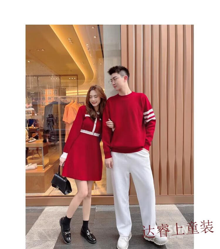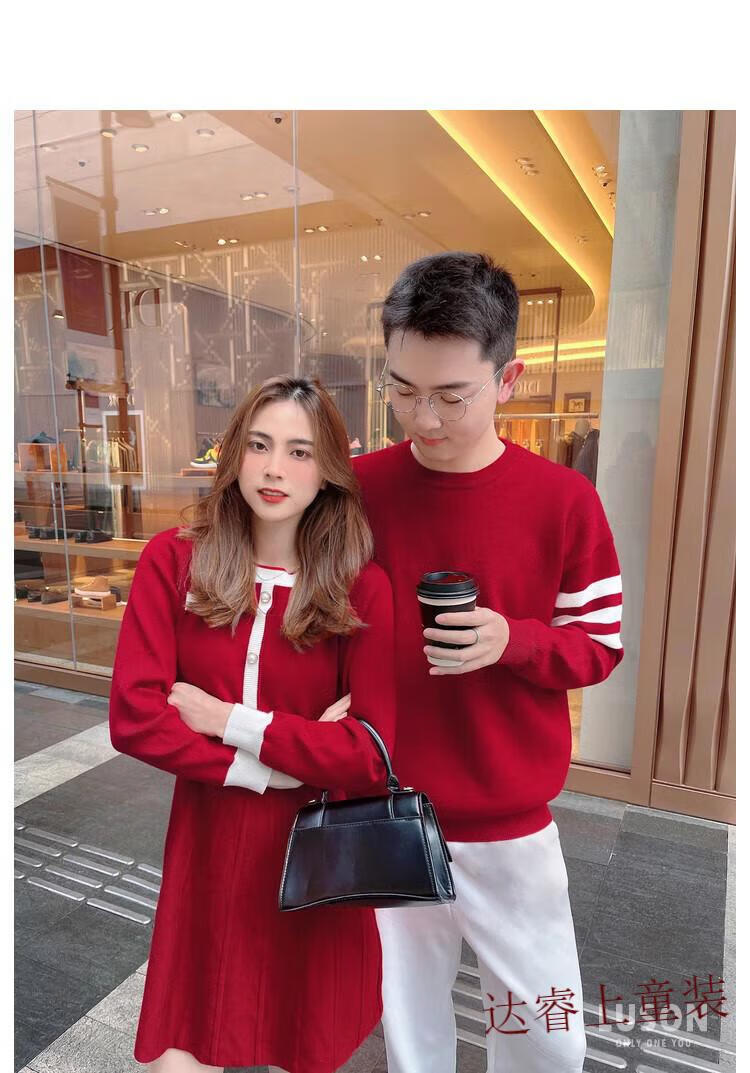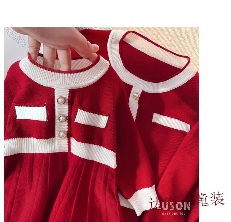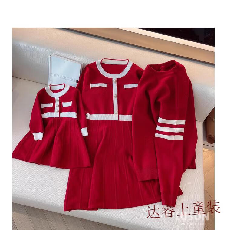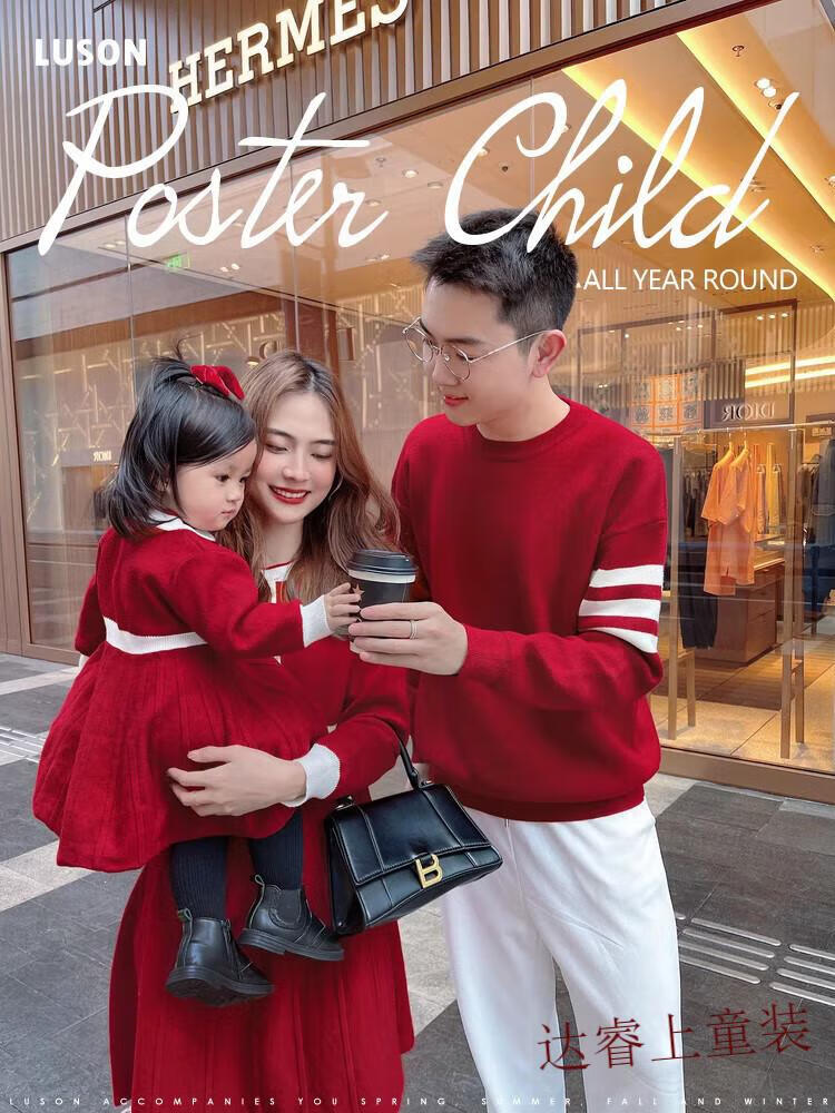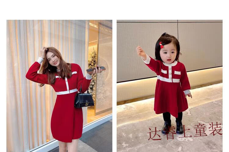 G.duck family portrait parent-child wear high-end family of three and four mother-child mother-daughter dress 2025 new autumn and winter style hair red 180 Dad XL recommended 130-150 Jin Jin equals 0.5 kg