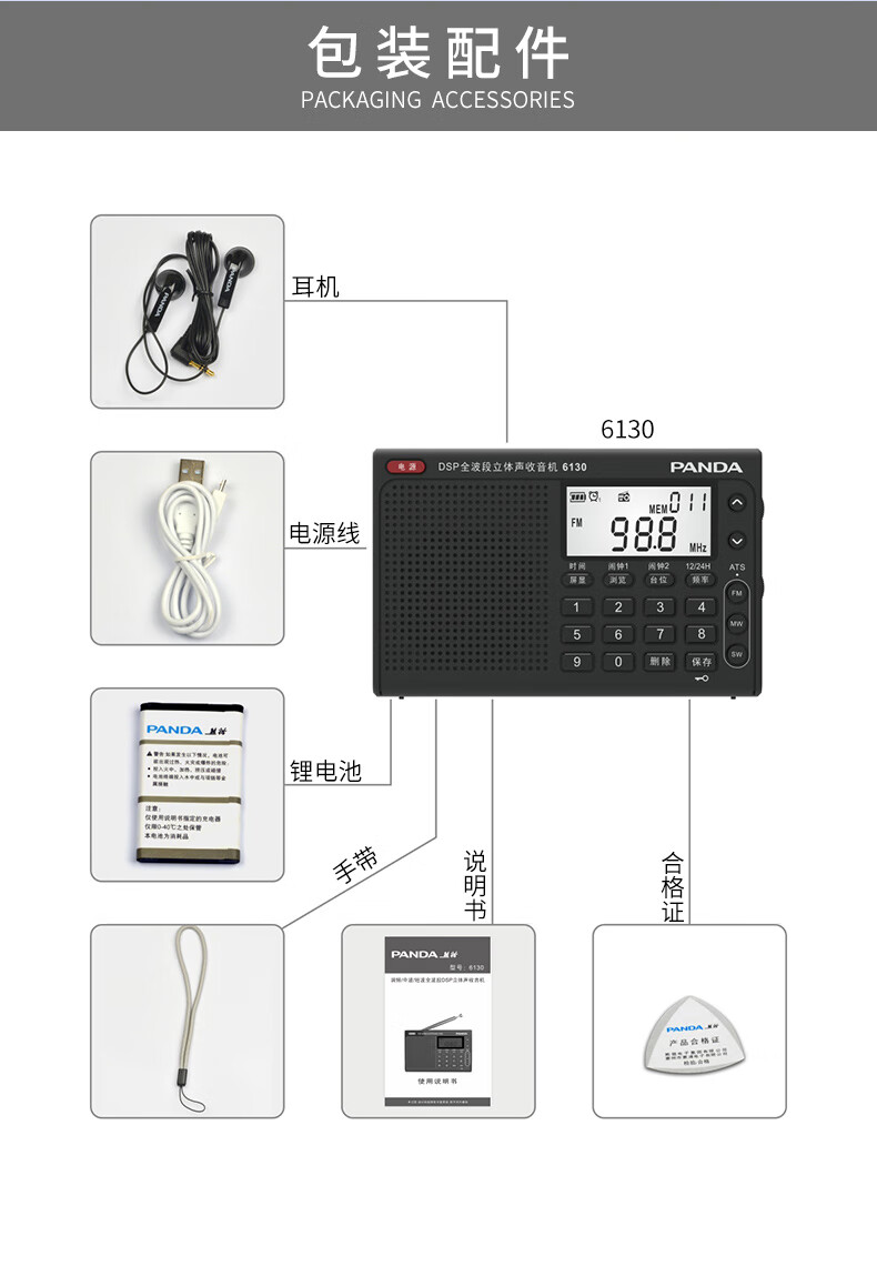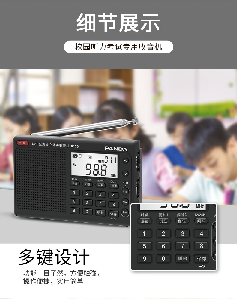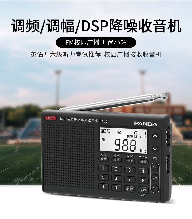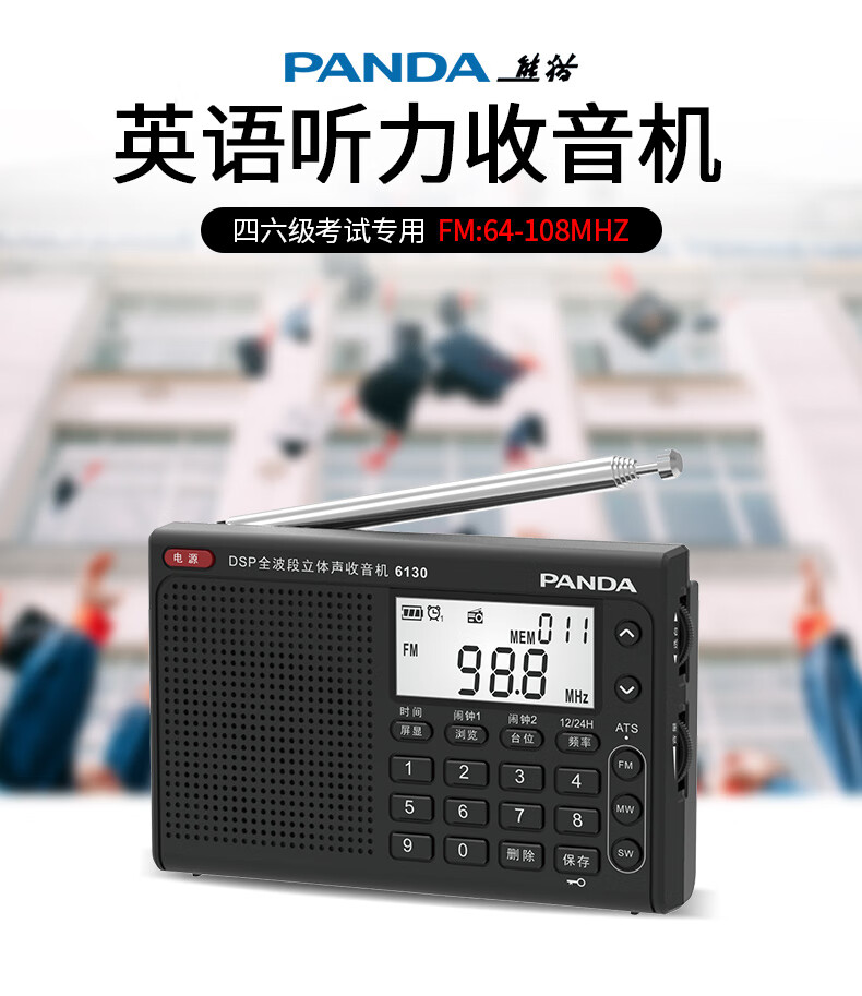 Panda (PANDA) 6130 Level 4 and Level 6 Radio Shanghai College Entrance Examination English Listening Radio Test Special for Level 4 and Level 6 Students College Entrance FM Campus 6130 Black + Charging Head