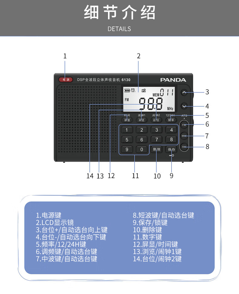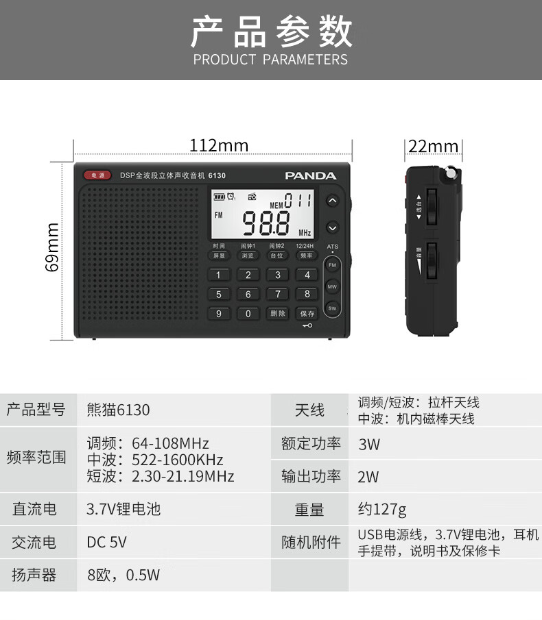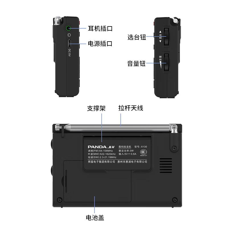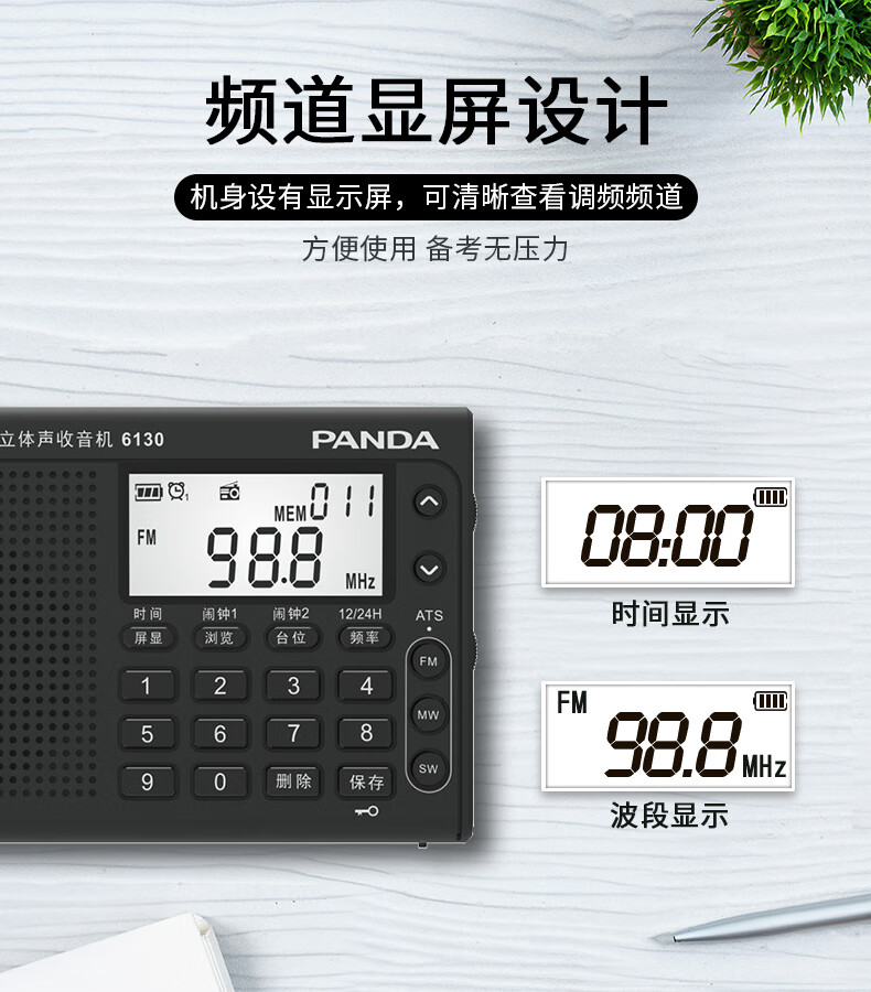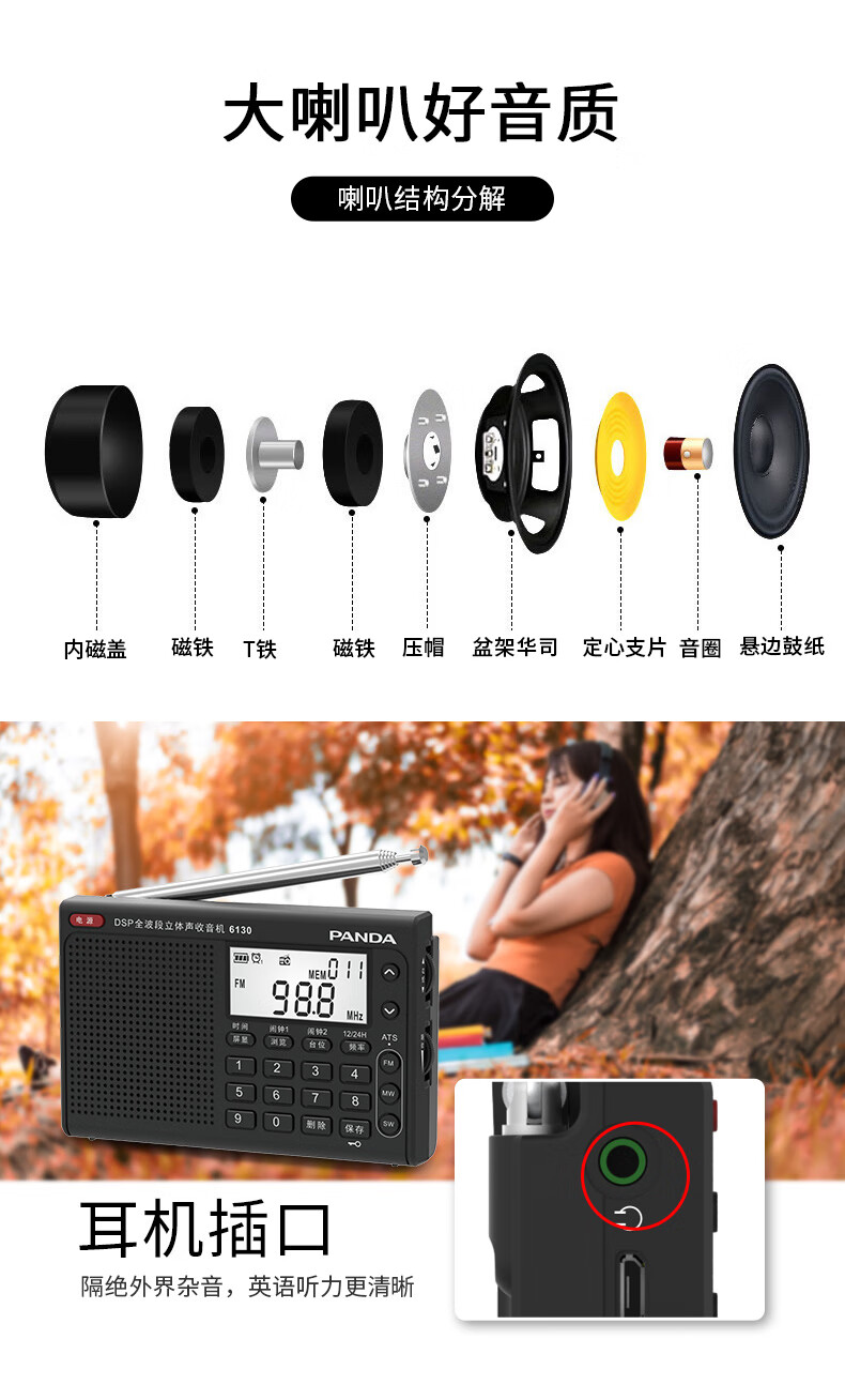 Panda (PANDA) 6130 Level 4 and Level 6 Radio Shanghai College Entrance Examination English Listening Radio Test Special for Level 4 and Level 6 Students College Entrance FM Campus 6130 Black + Charging Head