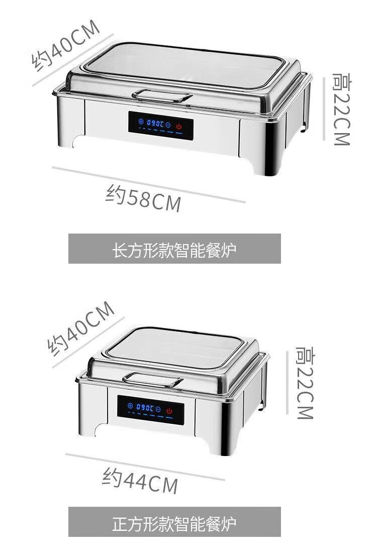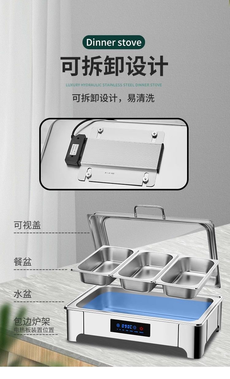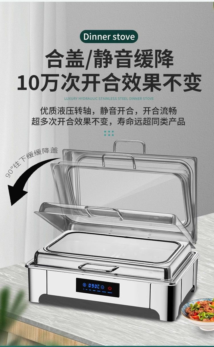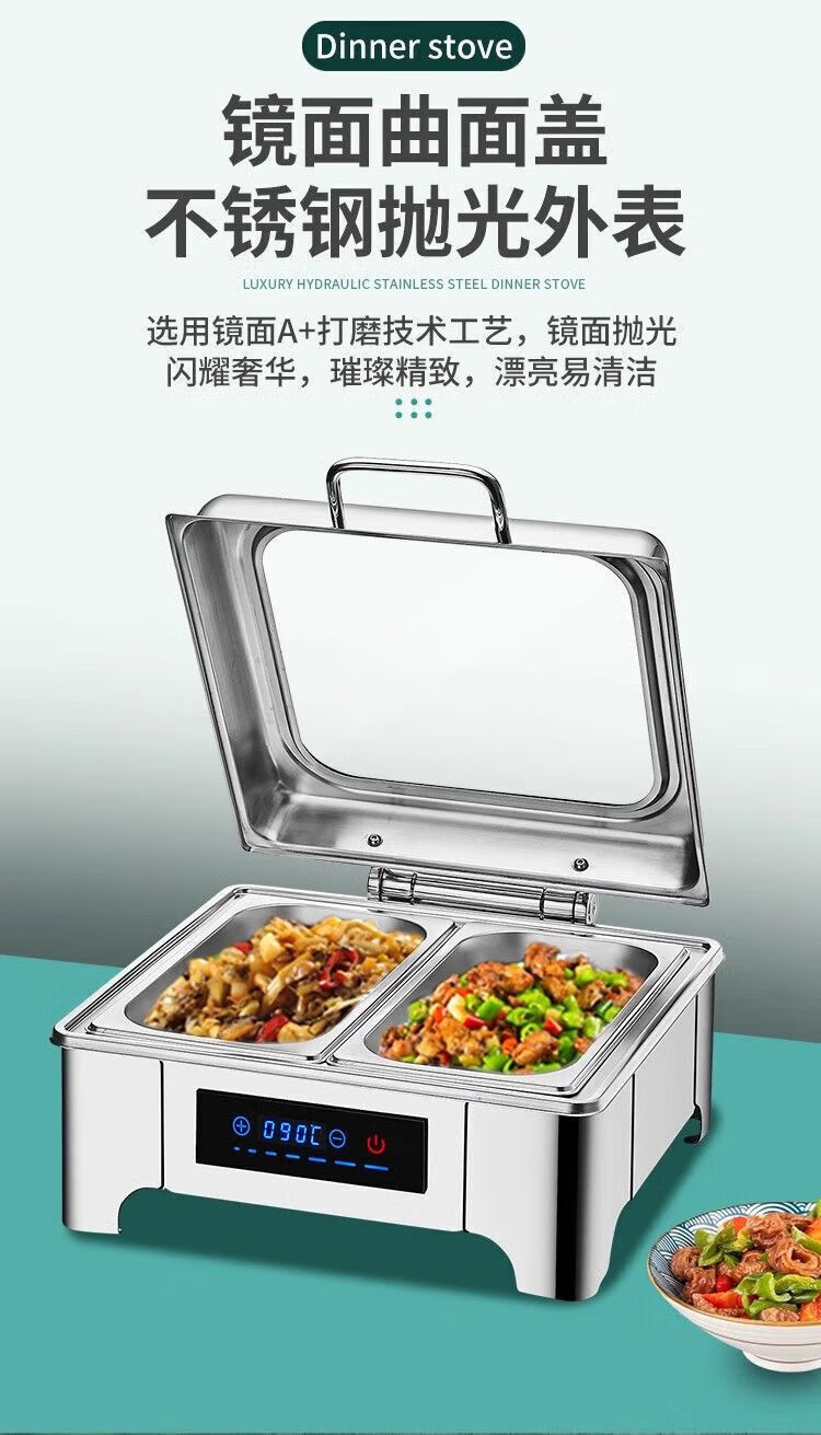 Suiqi Buffet Insulation Stove Electric Heating Dining Stove Stainless Steel Hotel Tableware Hydraulic Visual Buffy Stove Rectangular - Double Compartment 13 Liter Digital Display Touch Control