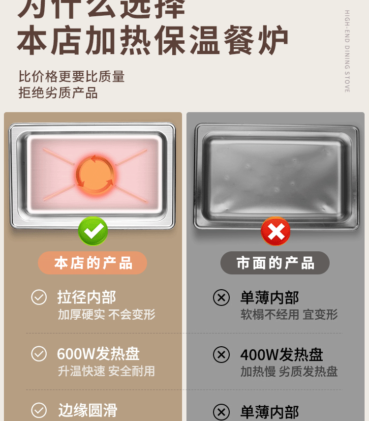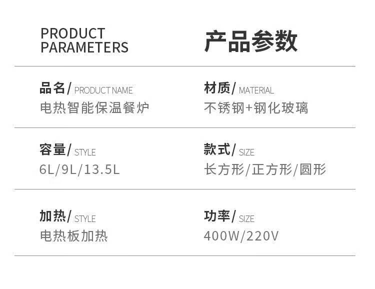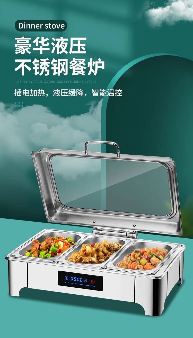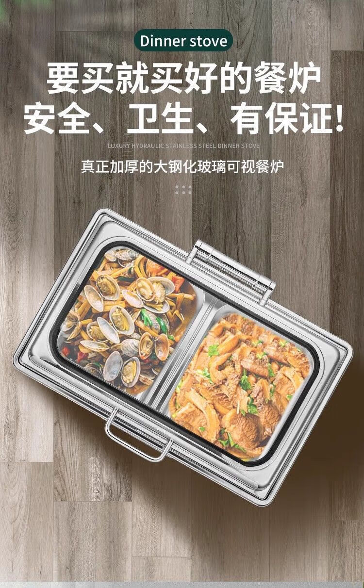 Suiqi Buffet Insulation Stove Electric Heating Dining Stove Stainless Steel Hotel Tableware Hydraulic Visual Buffy Stove Rectangular - Double Compartment 13 Liter Digital Display Touch Control