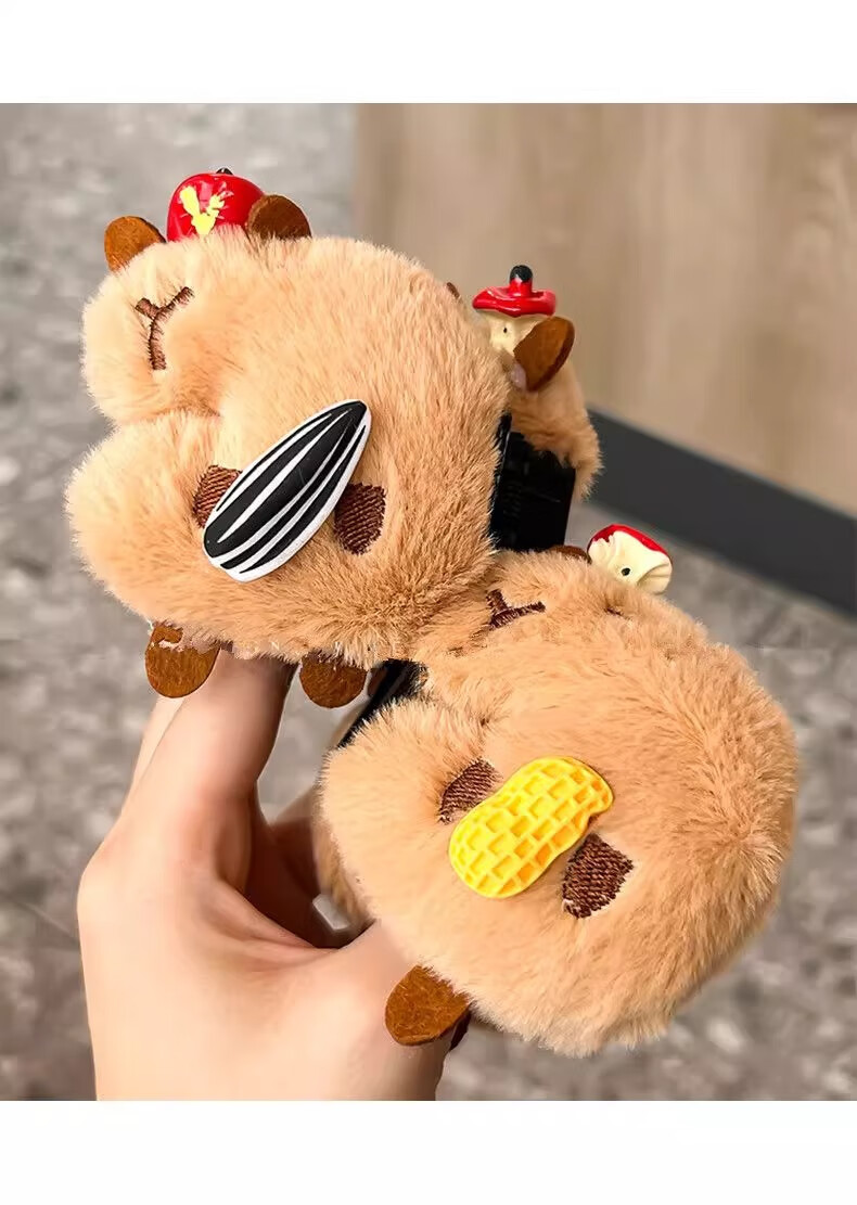 Danqin Autumn and Winter New Capibara Clip Women's Back Hair Clip Cute Girl Half-tied Shark Clip Hair Clip Plush Black Cat Clip 1 Pack