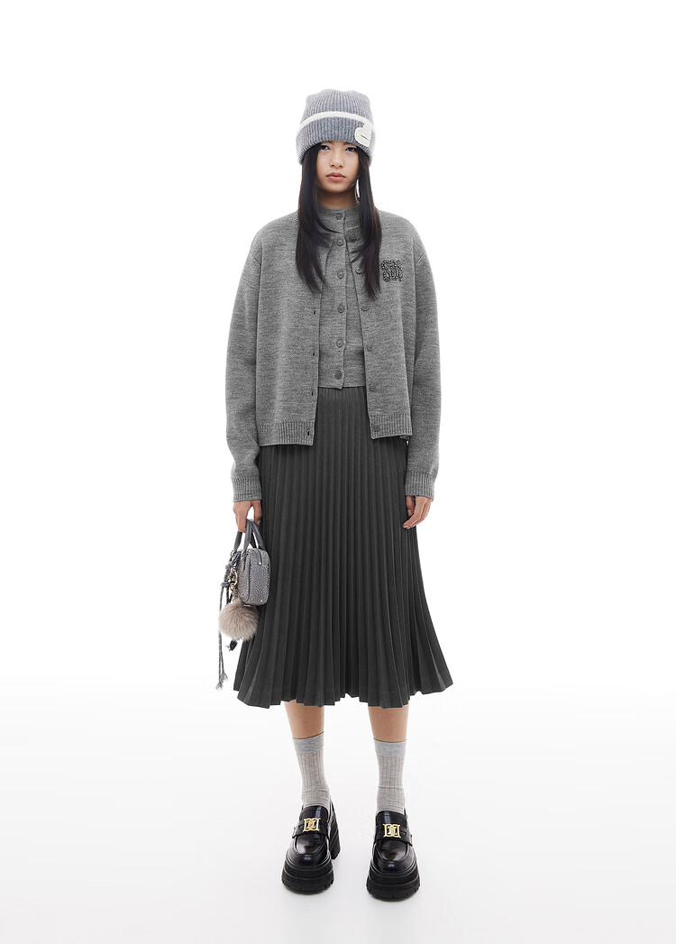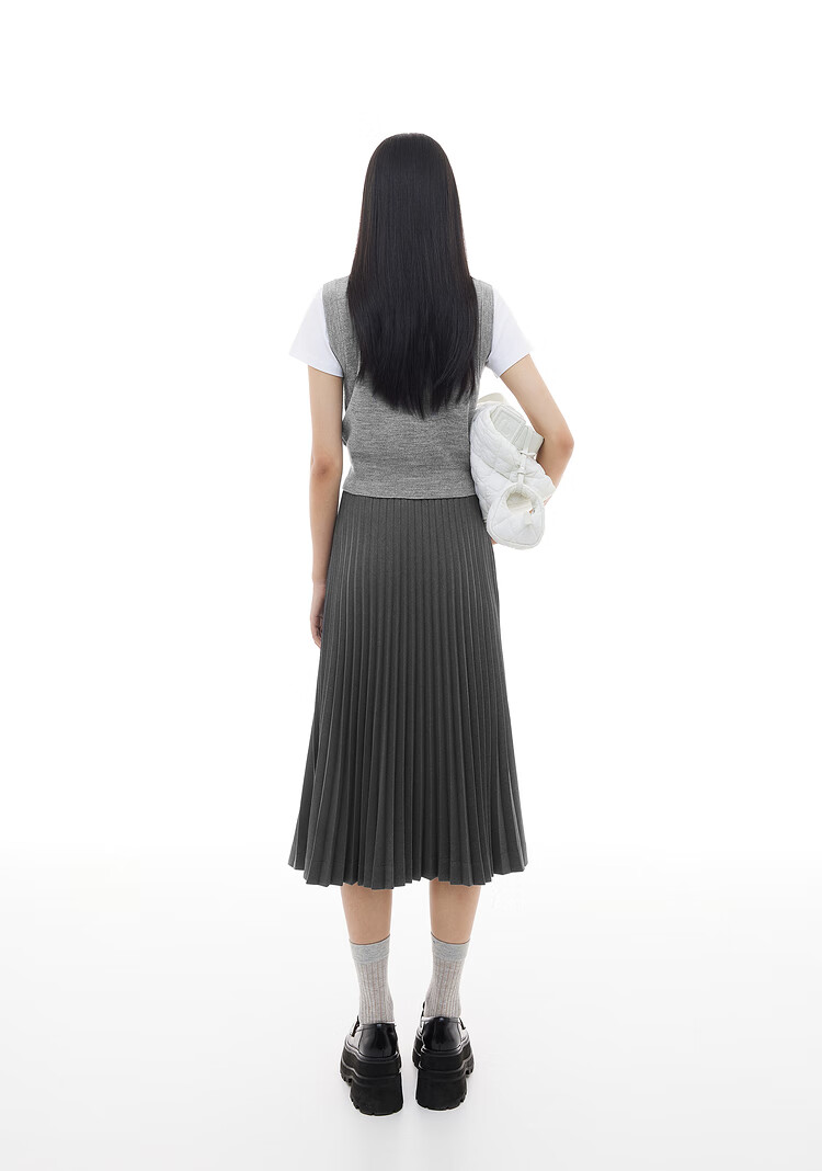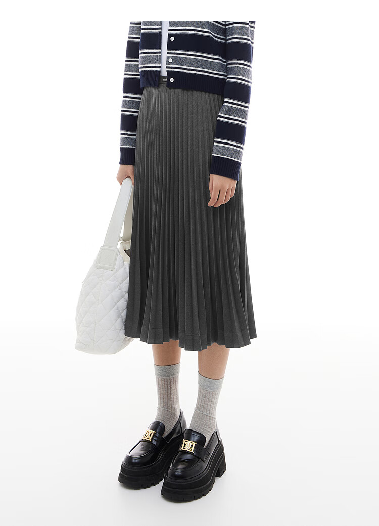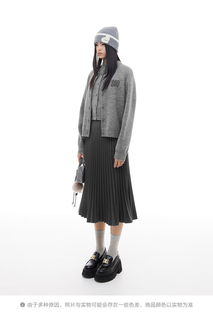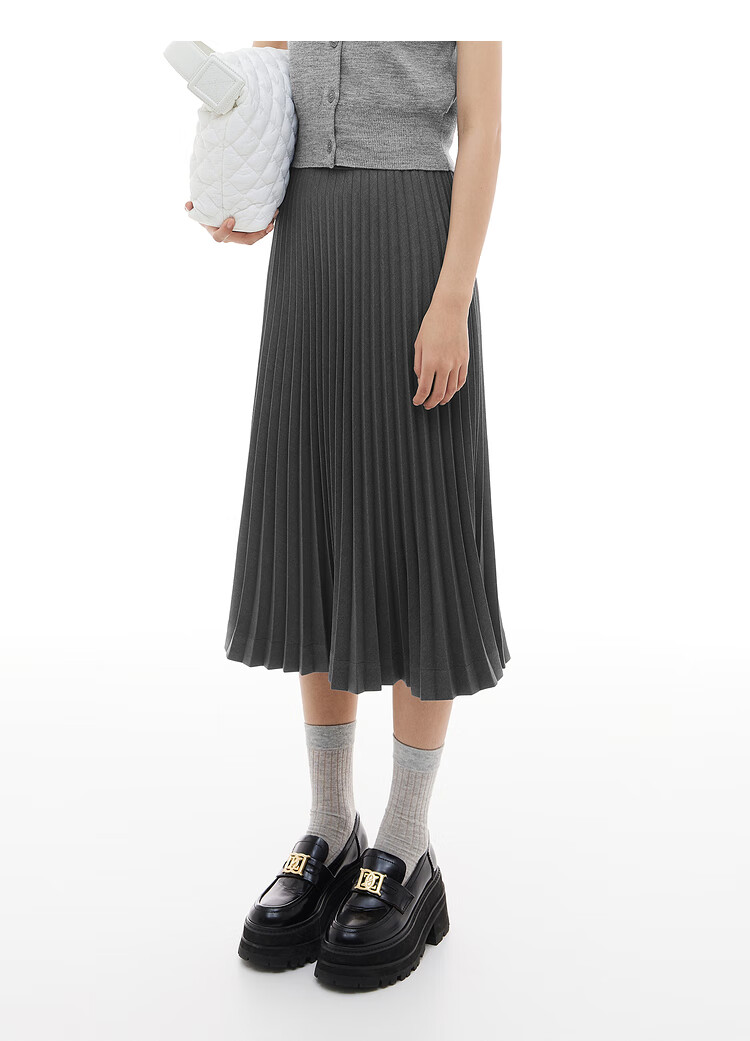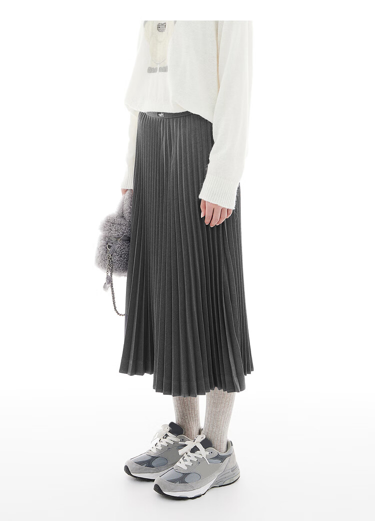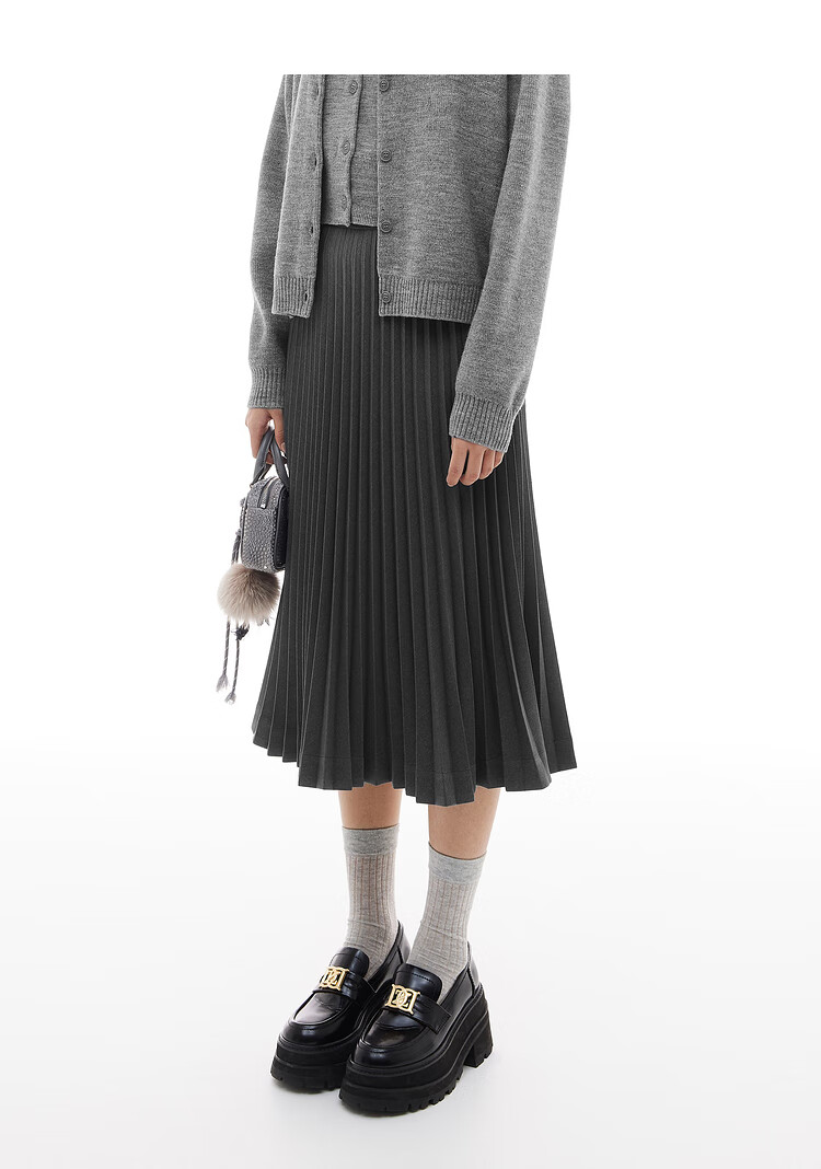 DZZIT celebrity style ground skirt winter retro commuting versatile high-intelligence straight skirt for women medium gray S