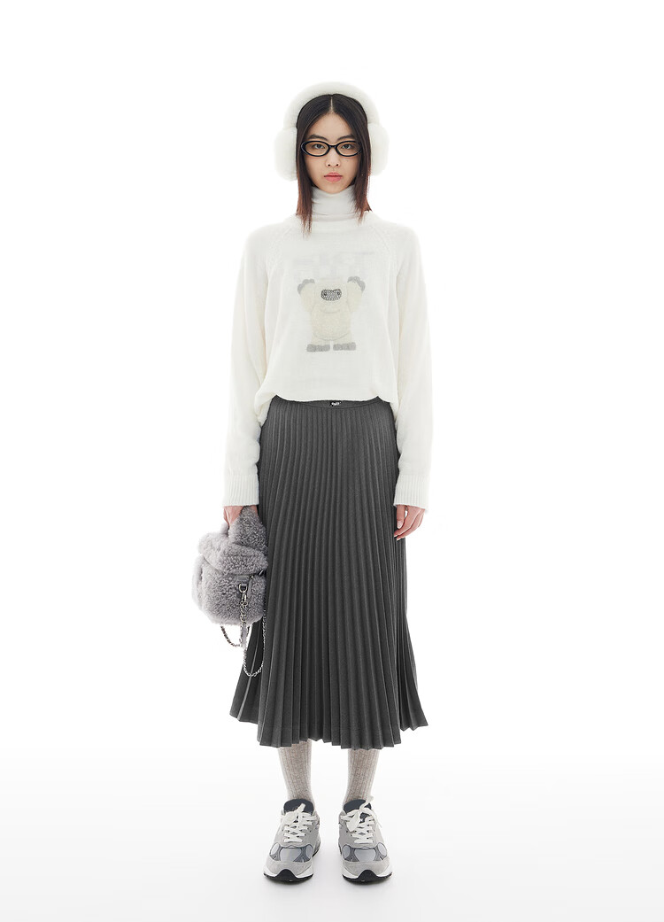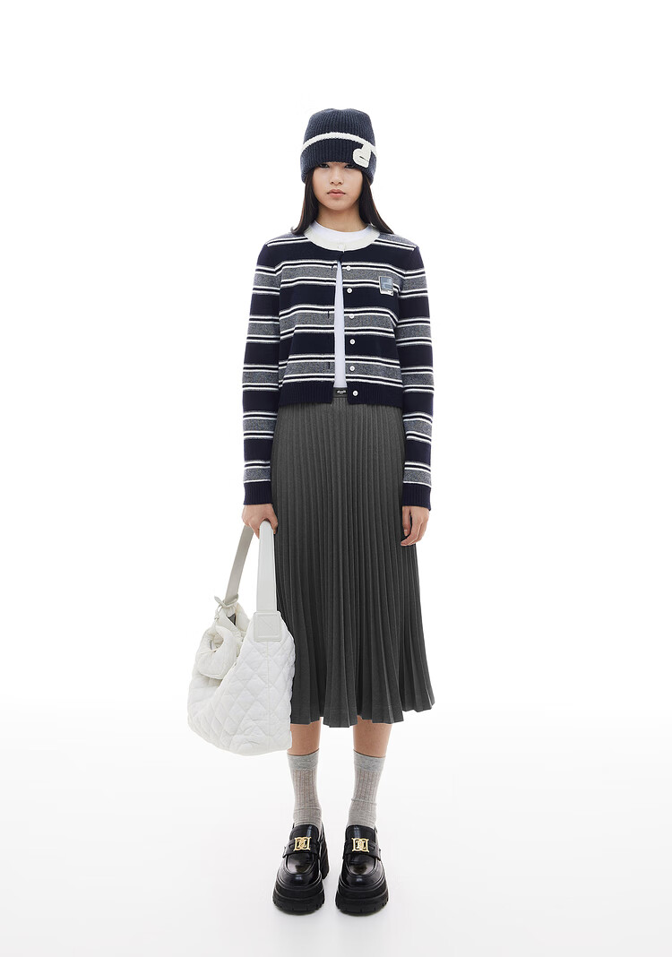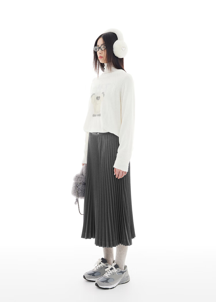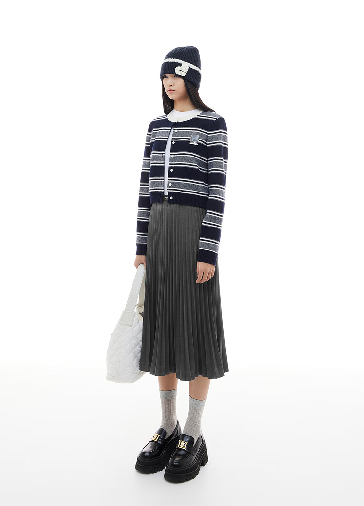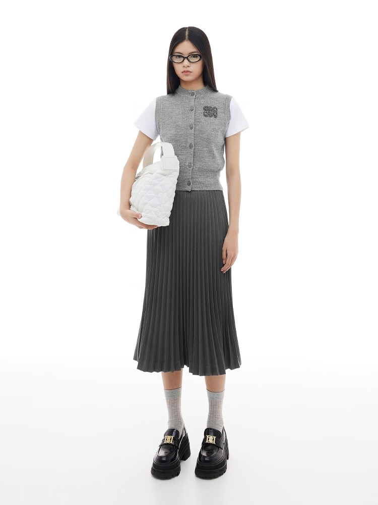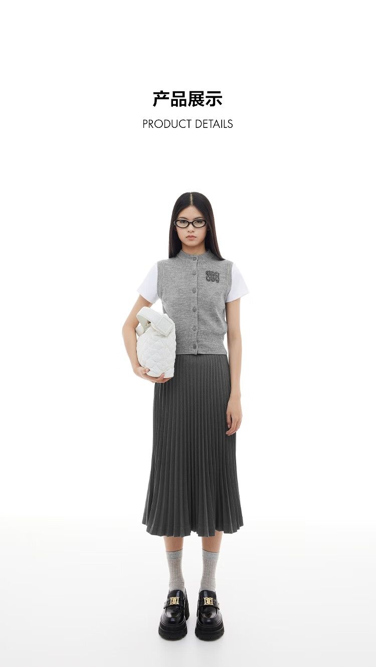 DZZIT celebrity style ground skirt winter retro commuting versatile high-intelligence straight skirt for women medium gray S