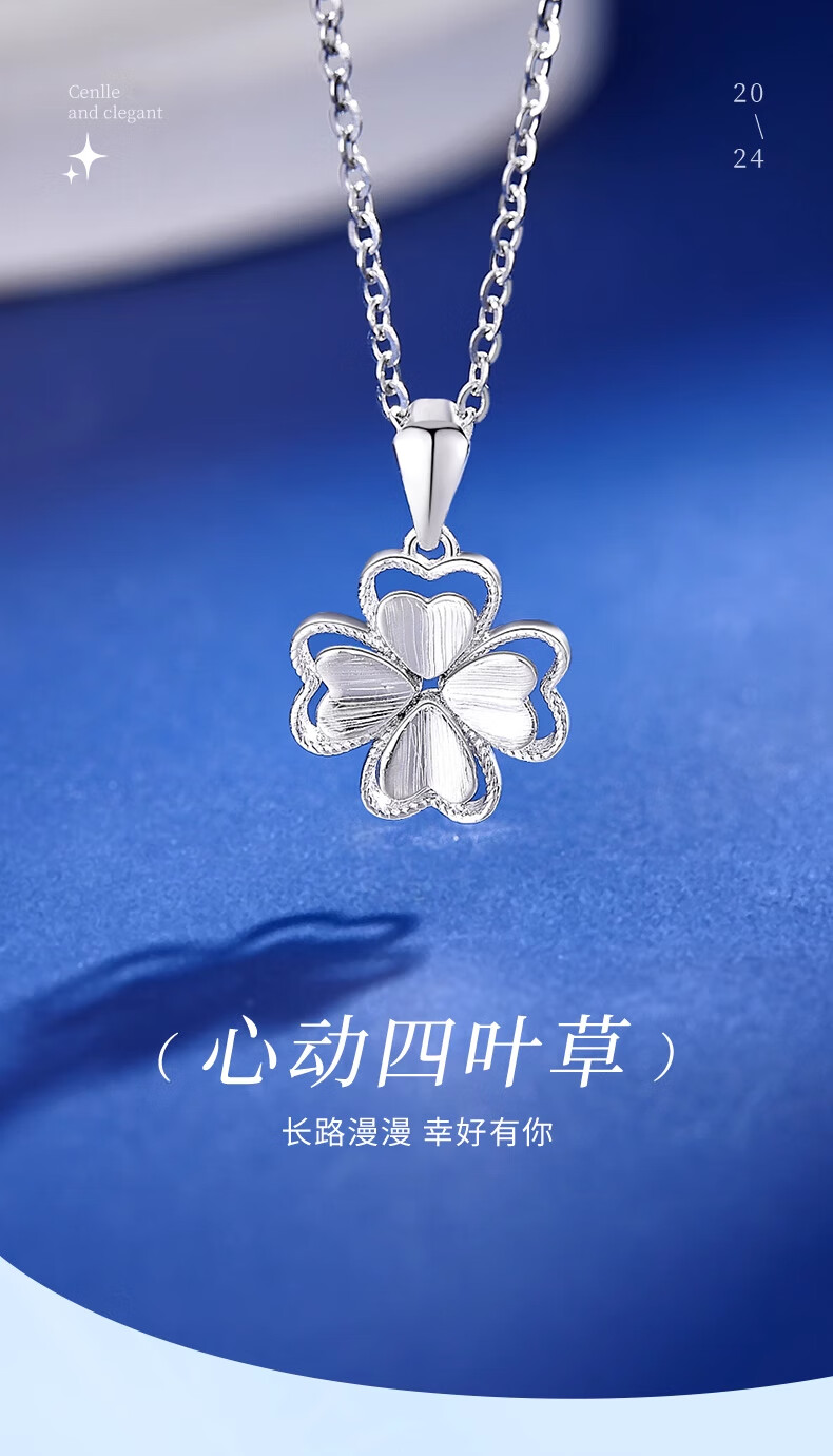 China Gold (CHINA GOLD) four-leaf clover pendant PT950 platinum female platinum clavicle chain Valentine's Day birthday gift for girlfriend and wife Jingsuda* platinum four-leaf clover pendant about 1.9g free silver chain