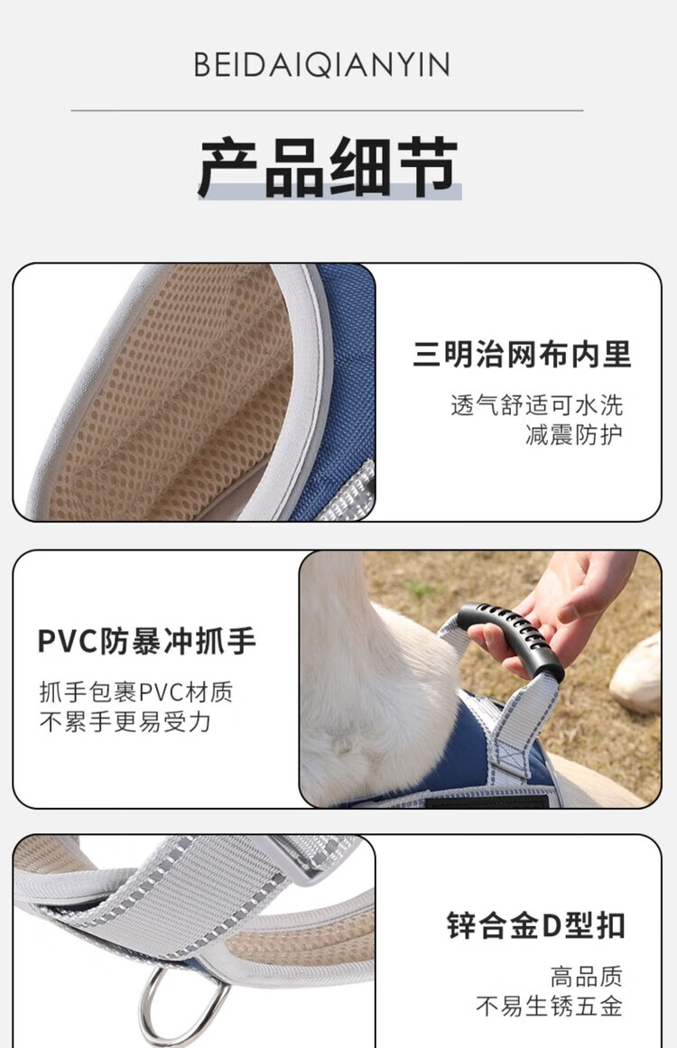 GERTHRON German Labrador Harness Large Dog Leash Golden Retriever Vest Type Explosion-proof Doberman Pinscher Chain Dog Leash Navy-Harness Newly Upgraded Explosion-proof Harness Strengthens Control for Safe Travel XS-(8-14Jin Jin is equal to 0.5kg)
