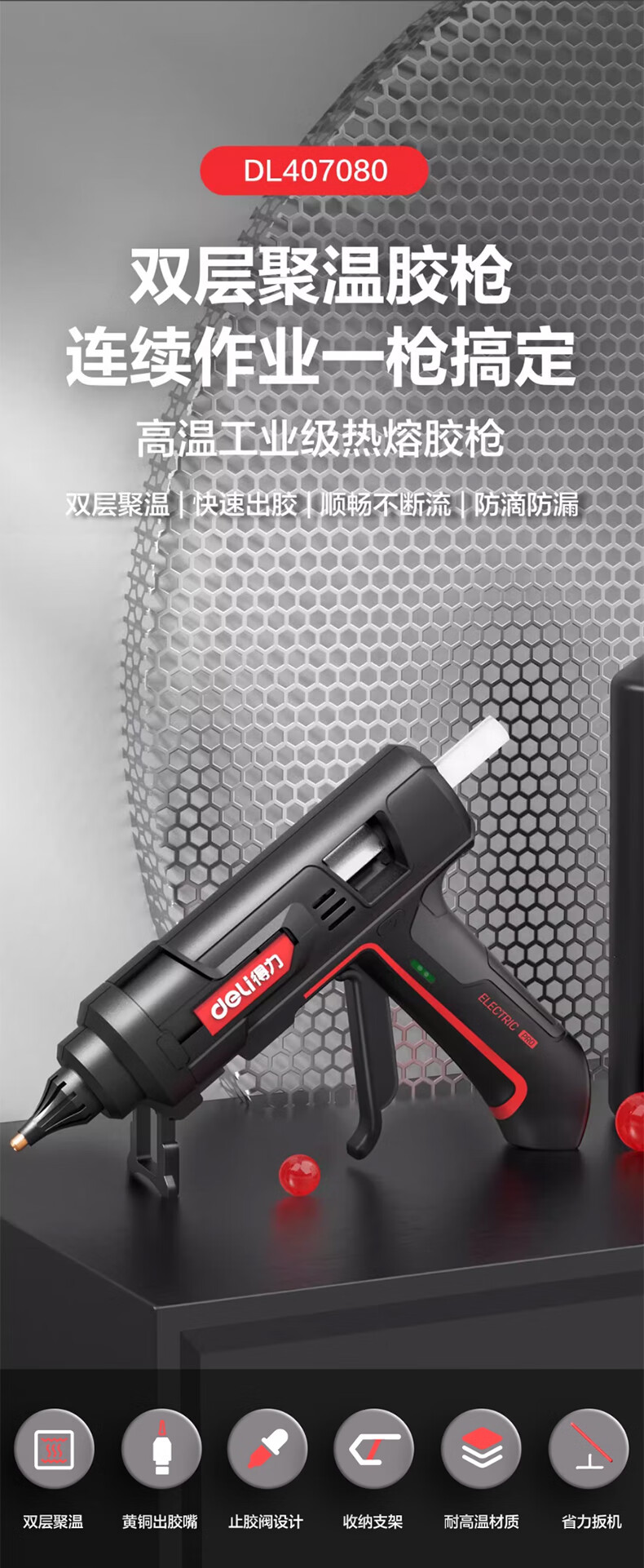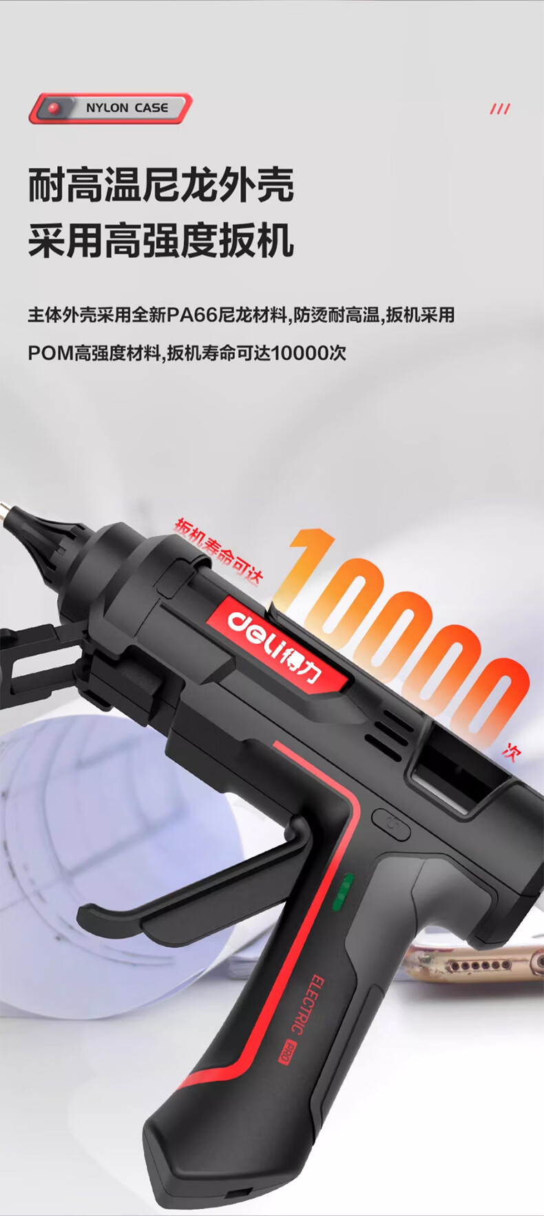 Deli Deli hot melt glue gun for children at home, handmade high-power industrial grade hot melt gun, hot melt glue stick 7-11mm 40W glue gun + 10 glue sticks