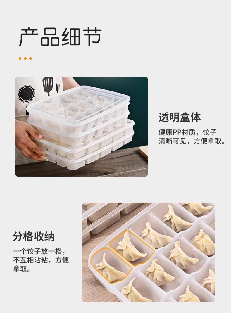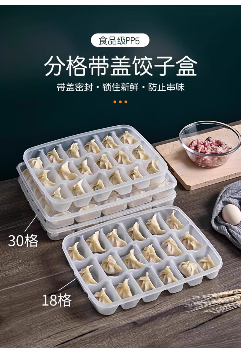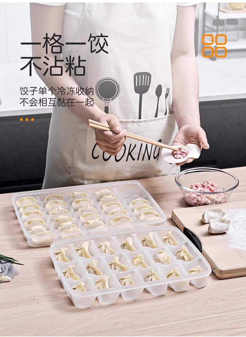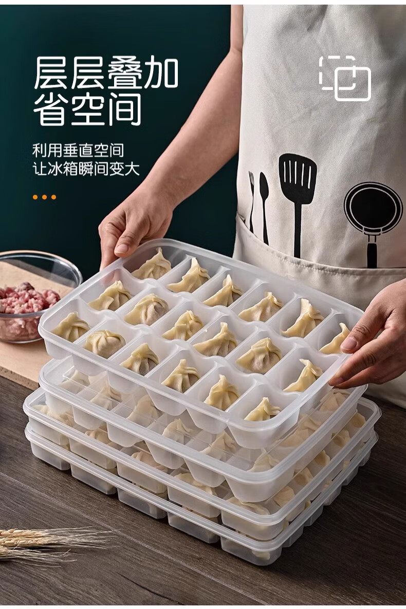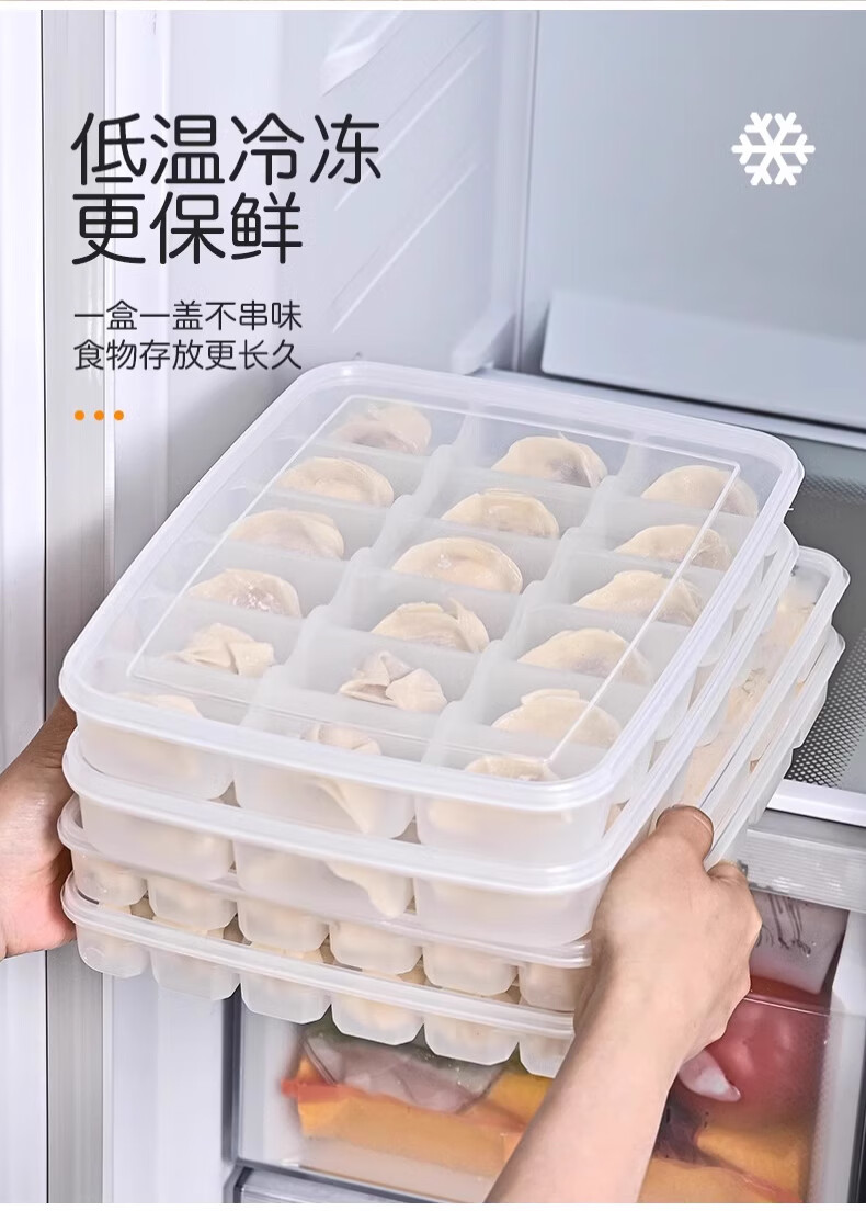 Home KATEI STORY Japanese Dumpling Box Refrigerator Storage Box Food Grade Compartment Wonton Storage Box Dumpling Storage Box Quick Frozen Dumpling Box Transparent 3 Layers 3 Covers 18 Compartments per Layer