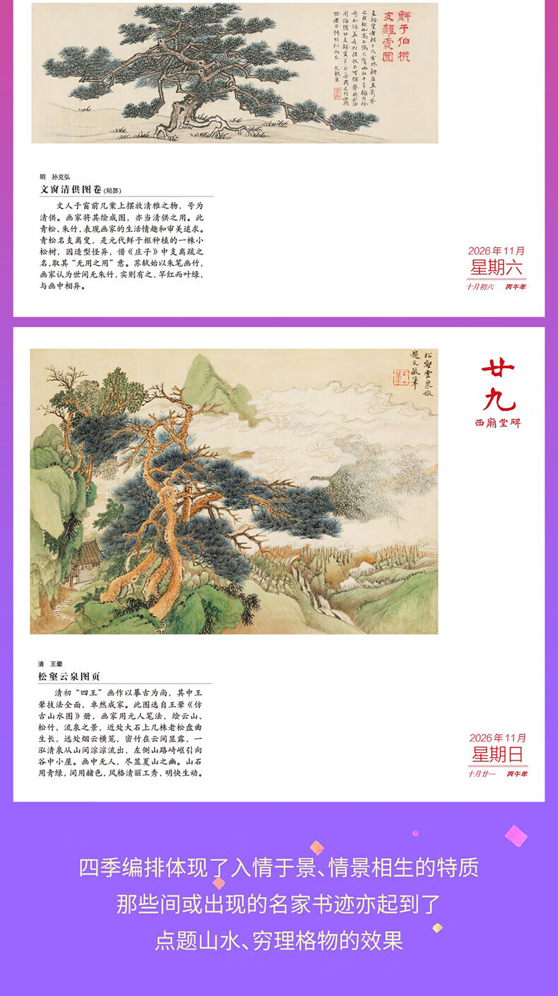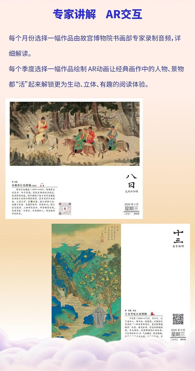 Official Genuine - Beijing Warehouse Delivery Forbidden City Calendar 2026 Stamped Edition Painting and Calligraphy Edition Published by the Palace Museum and Forbidden City Press Upgraded Edition Hardcover New Book Newly Revised Forbidden City Calendar 2026 Painting and Calligraphy Edition Multiple Gifts