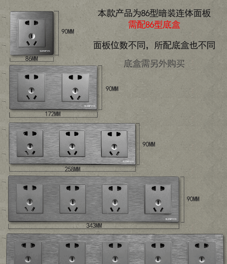 Socket camera head 86 type conjoined socket panel integrated plug strip household with USB network with switch double multi-function 86 type concealed conjoined socket without bottom box two positions ten holes (172*90)