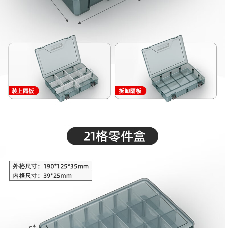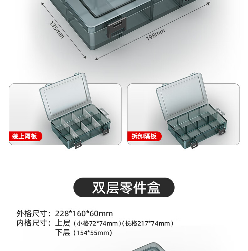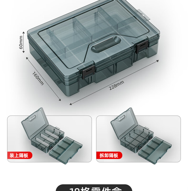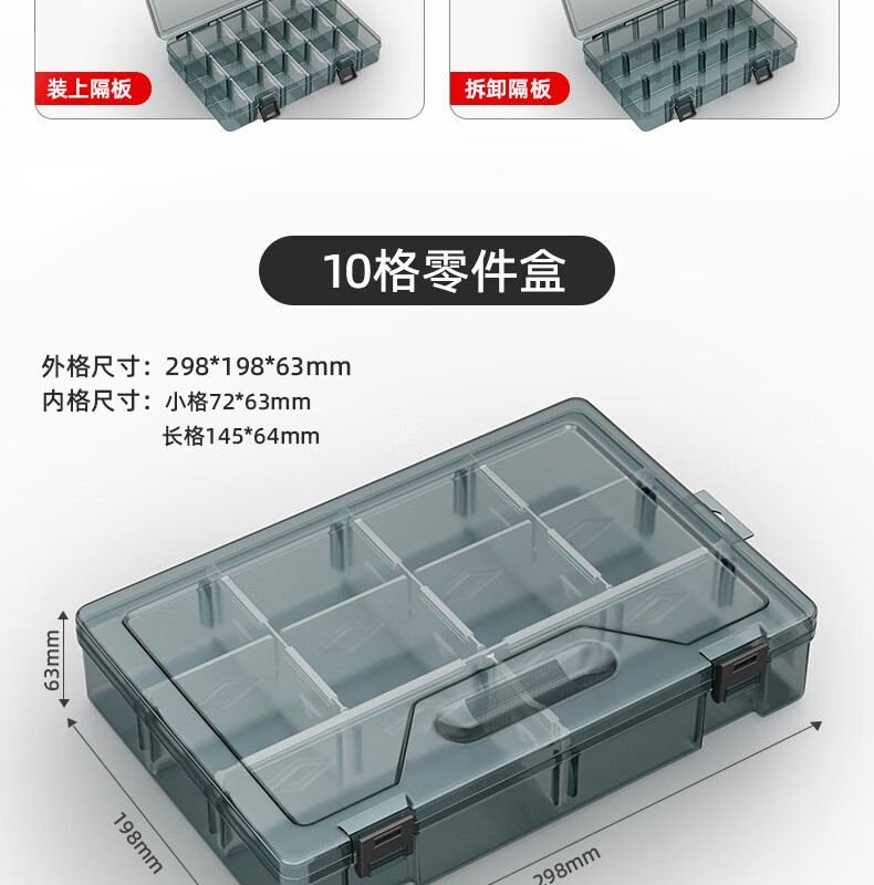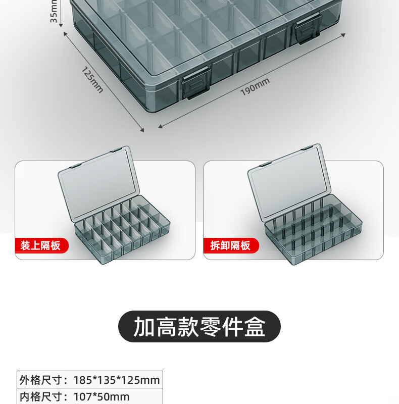 XMSJ parts box plastic multi-compartment storage screw box tool classification electronic parts drill accessories thickened lattice box-upgraded reinforced ribs thickening without division-grid small size