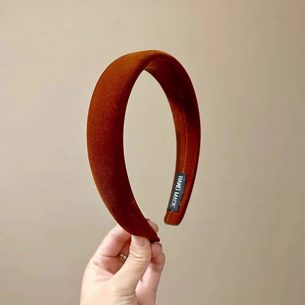 BARY REEF's new Hong Kong style headband with large head circumference, new headband, winter velvet hair accessories, high skull pumpkin color headband hairpin for women, mature pumpkin (whitening)