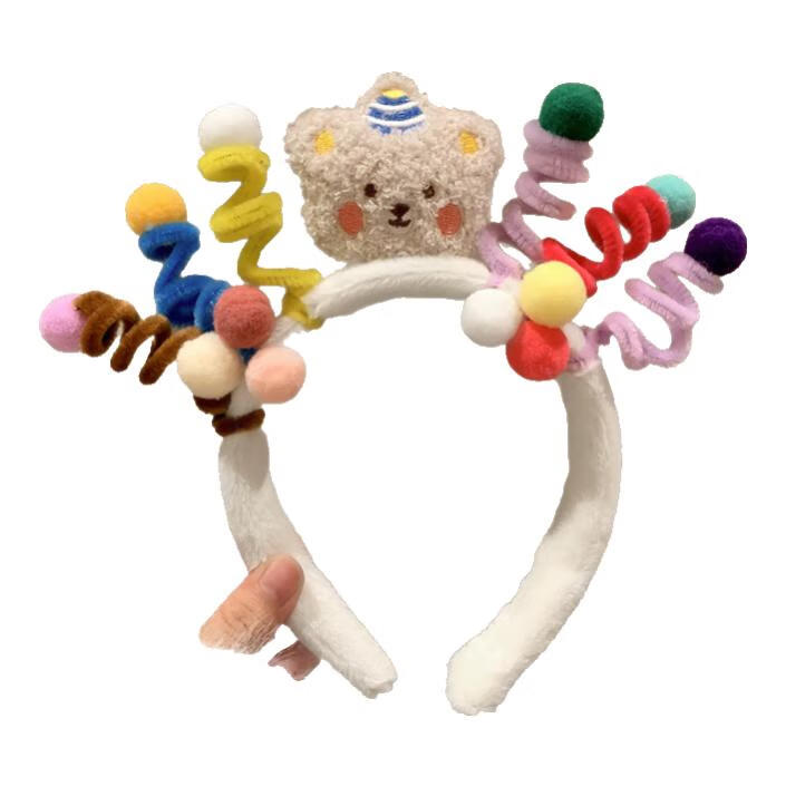 Bargeware, creative and funny headbands, birthday atmosphere props, photo-taking headgear, cute and funny twisty stick headbands, hairpins, a beige funny bear