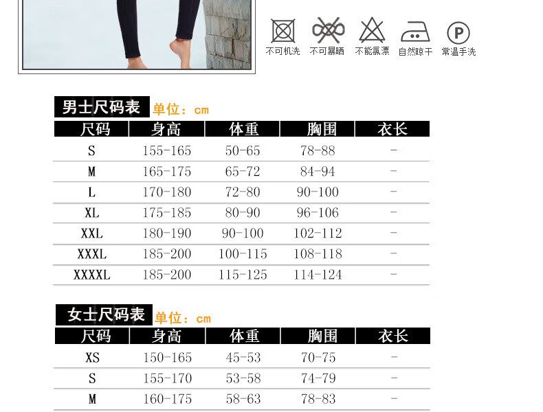 China (cm) 160-165/84-86 165-170 / 88-90 167-172 / 92-96 168-173 / 98-102 170-176 / 106-110