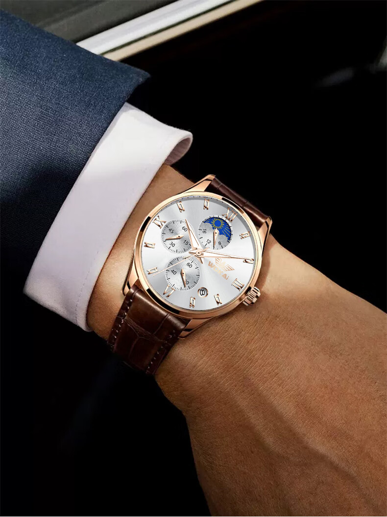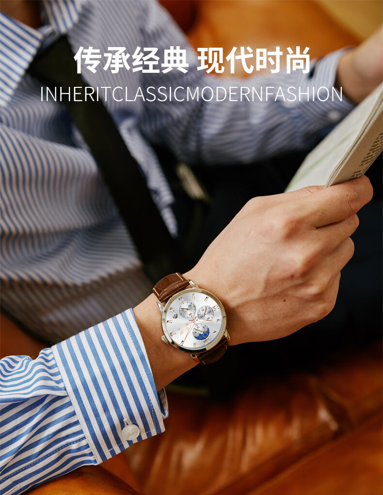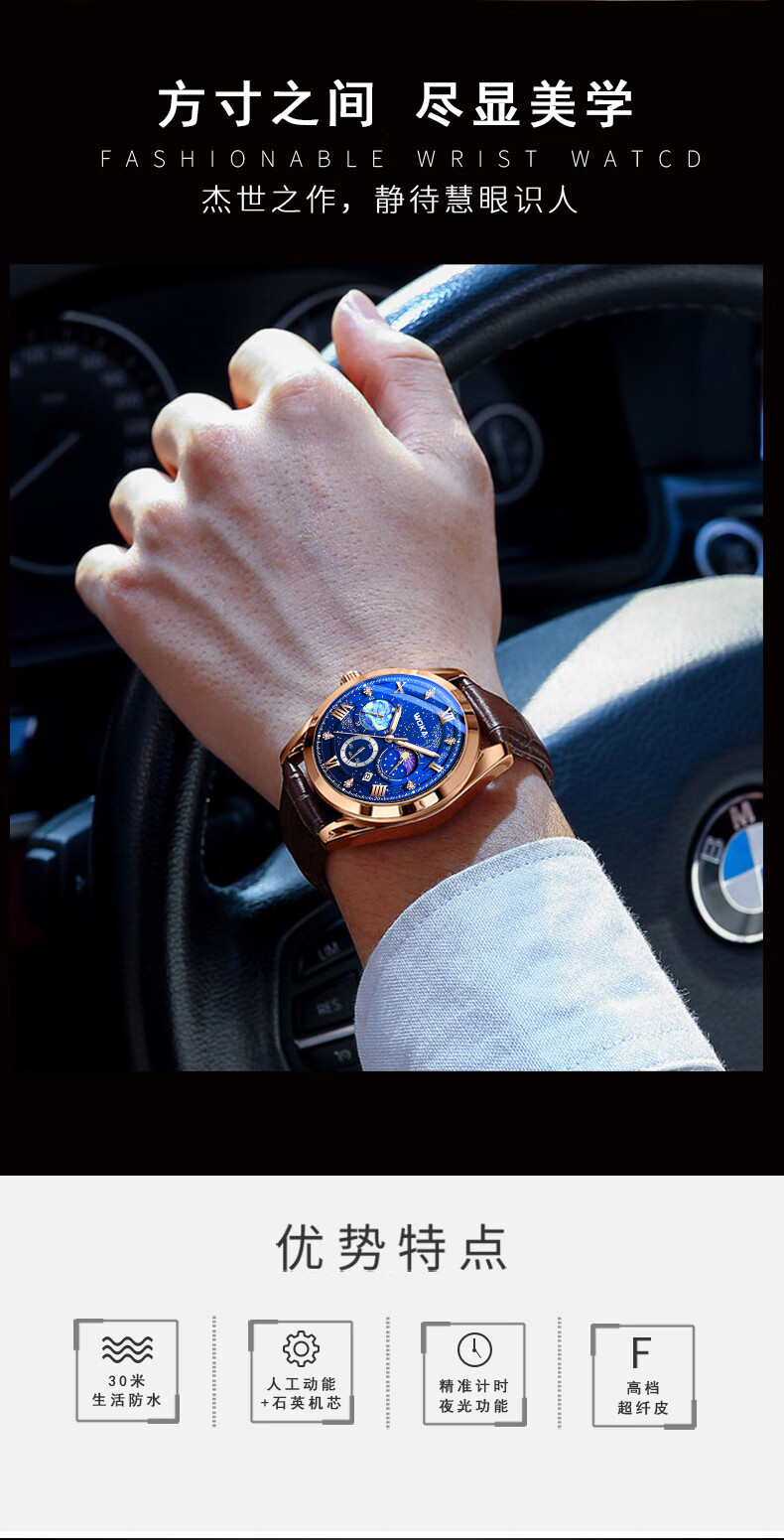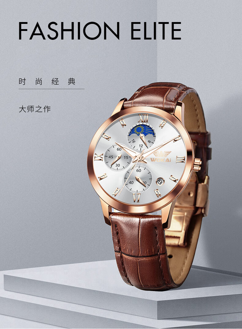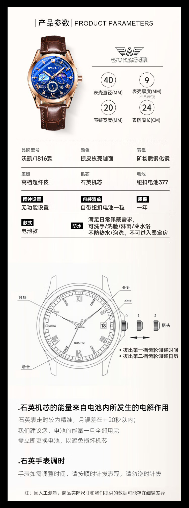 Wokai fully automatic movement mechanical men's watch high-end calendar quartz watch men's trendy fashion watch men's watch fashionable blue face