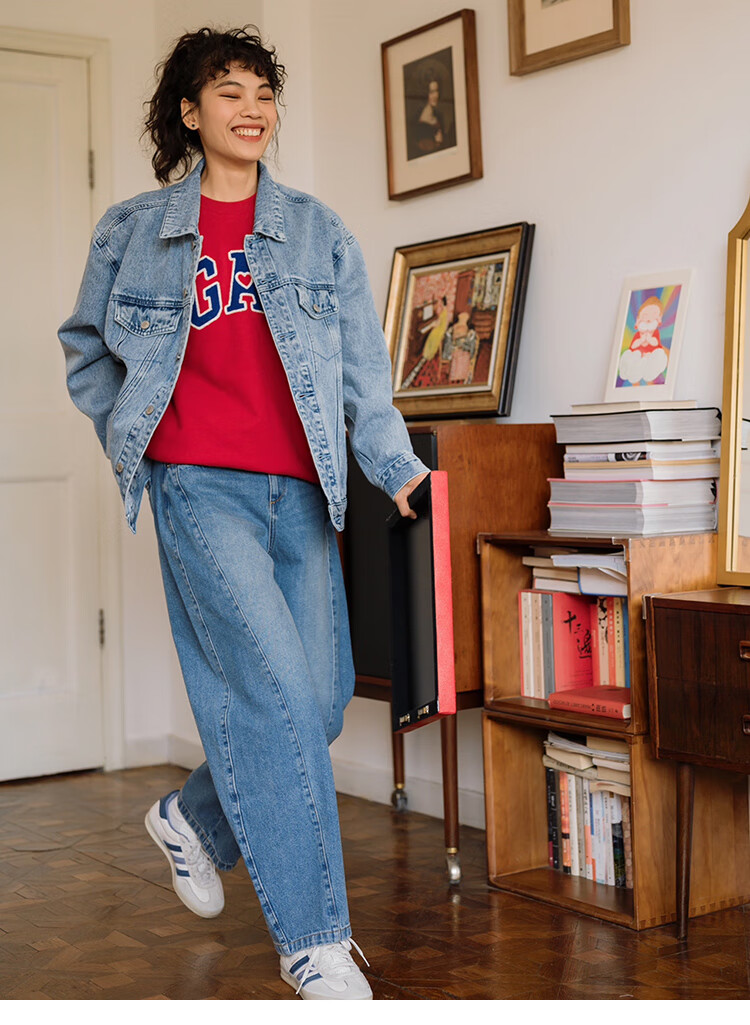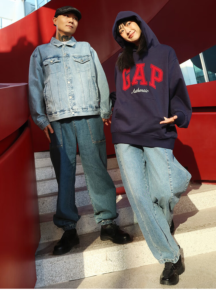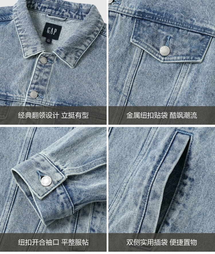 GAP Men's and Women's 2025 Spring New Pure Cotton Washed Denim Jacket Loose Basic Jacket 723088 Medium Wash M (170/92A) Asian Size