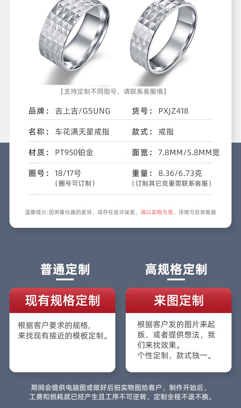 GsunG platinum couple ring new PT950 car flower star ring fashionable shiny platinum ring for men and women priced by gram, please contact customer service before bidding for gold price