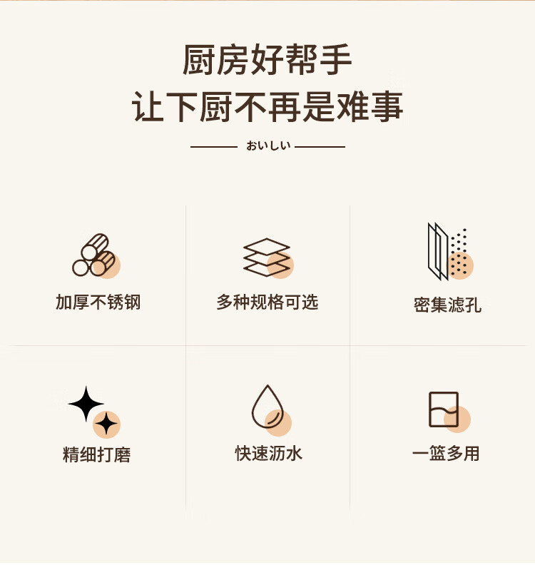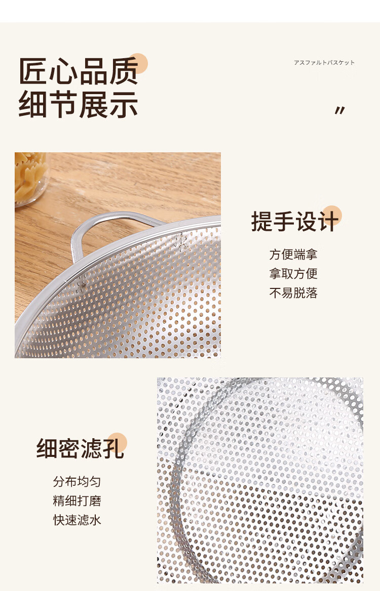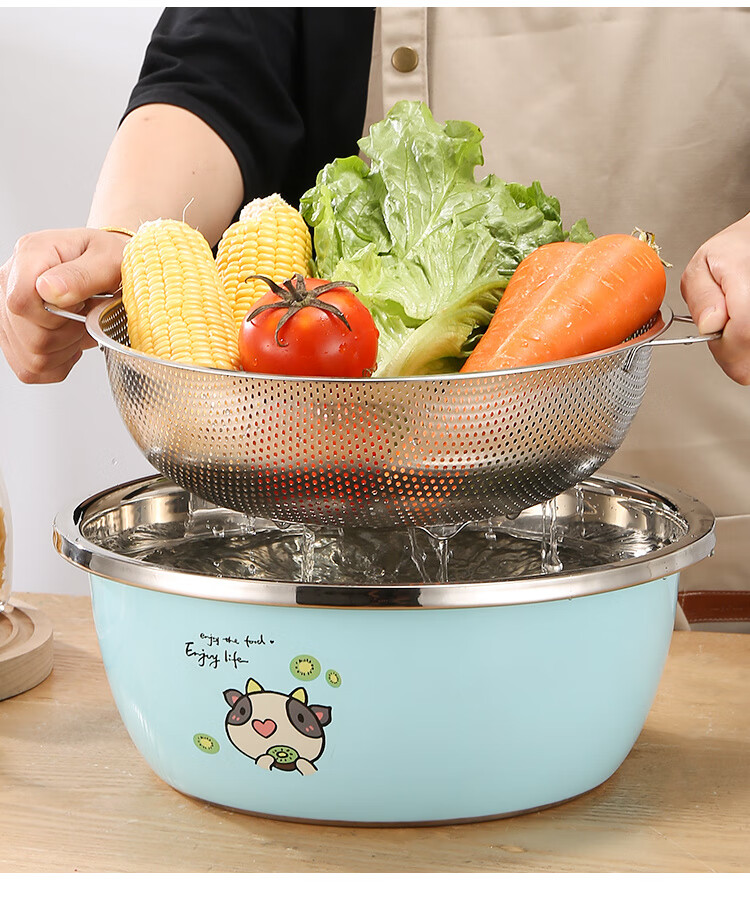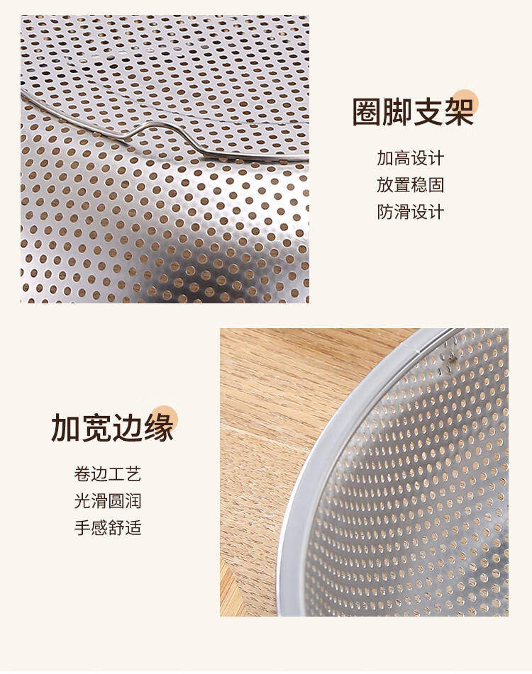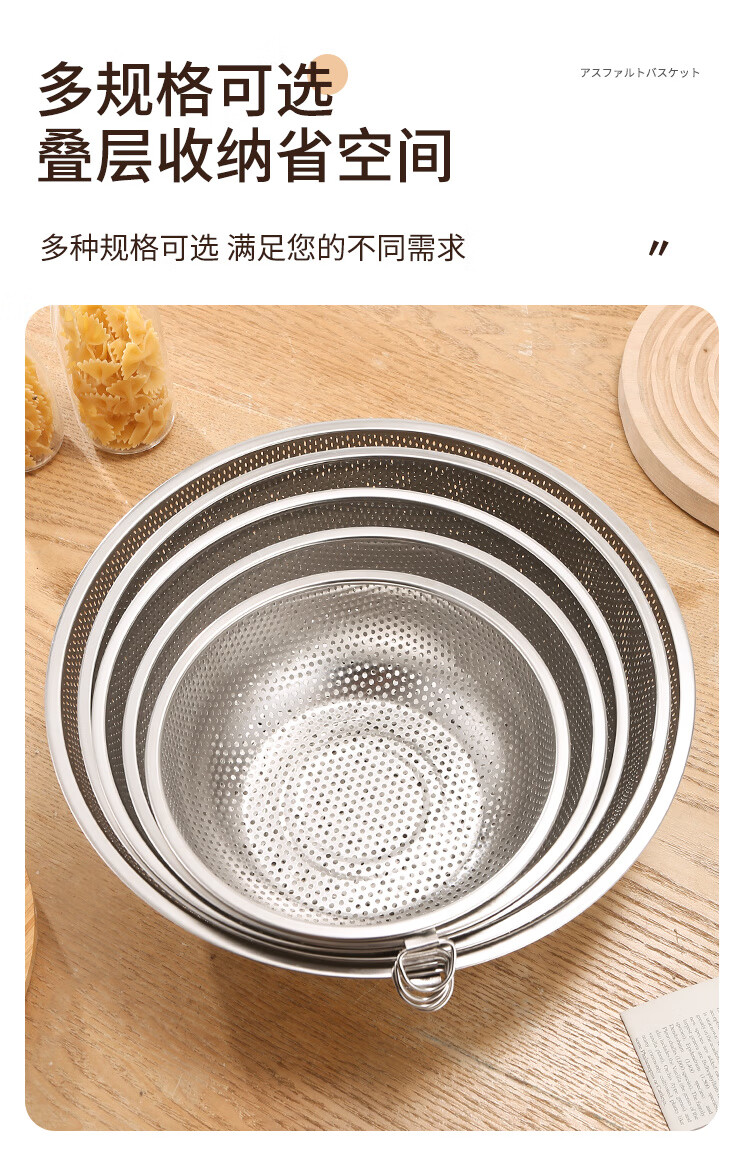 Fanxiang 304 stainless steel drain basket, vegetable basin, leaky basin, household kitchen rice basin, rice sieve, vegetable basket, fruit basket (double-ear model), dense hole washable rice, with three-legged base, 25.5 pack of two