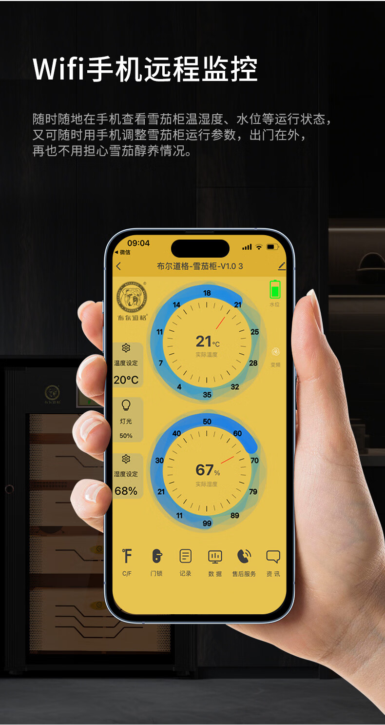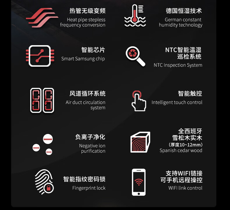 Bulldog Cigar Cabinet Constant Temperature and Humidity Cedar Wood Humidity Controlled Eggplant Household Red Wine Cabinet Humidifying Cabinet Imported Compressor Frequency Converter Energy Saving Naked Breeding Ammonia Removal Fingerprint Lock WiFi Divine Dog VC308 Fourth Generation PLUS Fingerprint Password Lock WiFi+VC308 Divine Dog