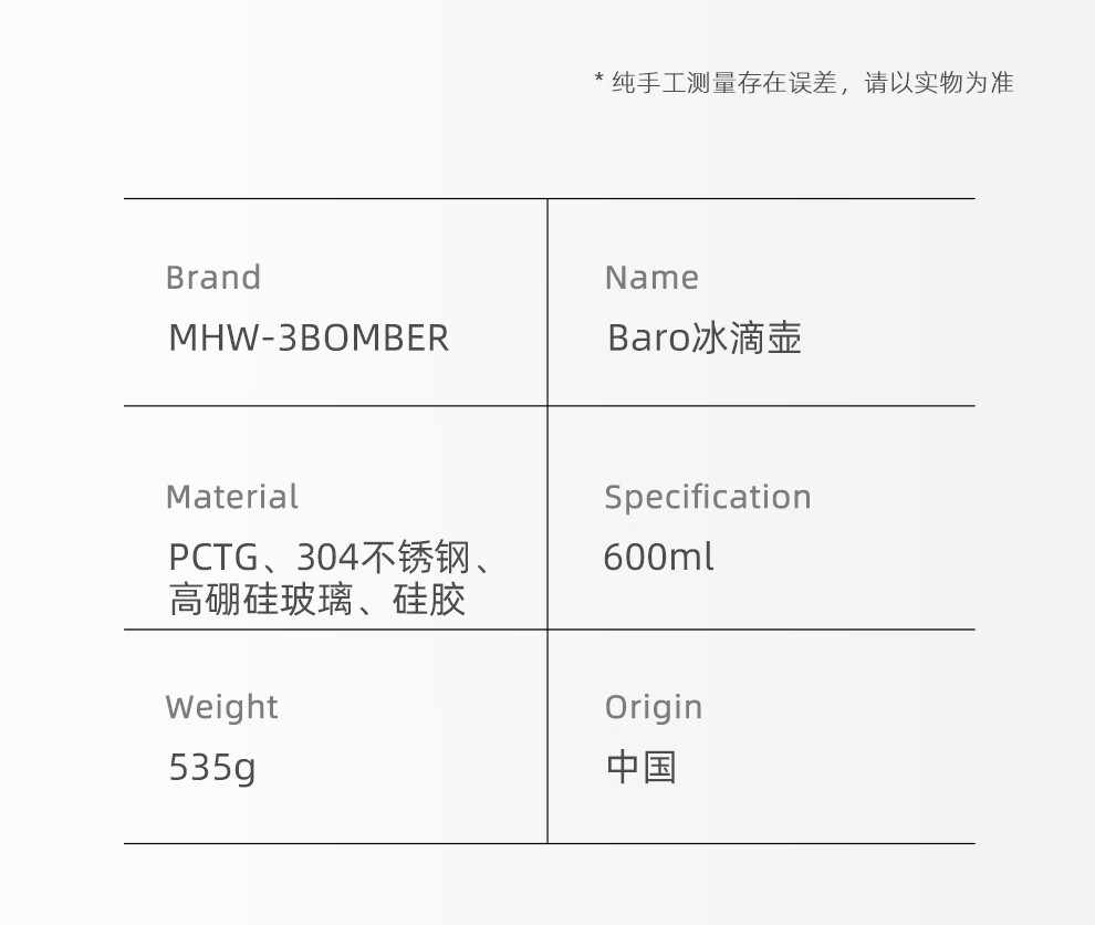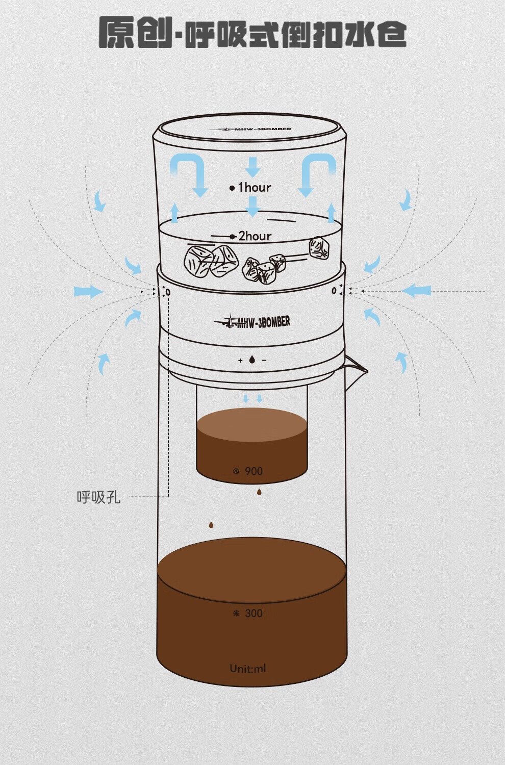 MHW-3BOMBER Bomber Baro Ice Drip Pot Drip Cold Brew Coffee Pot Cold Brew Cup Cold Water Kettle Cold Brew Pot Coffee Cold Brew Cup Drip Extraction Baro Ice Drip Pot-600ml