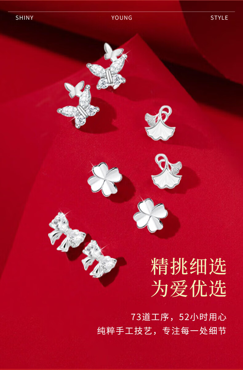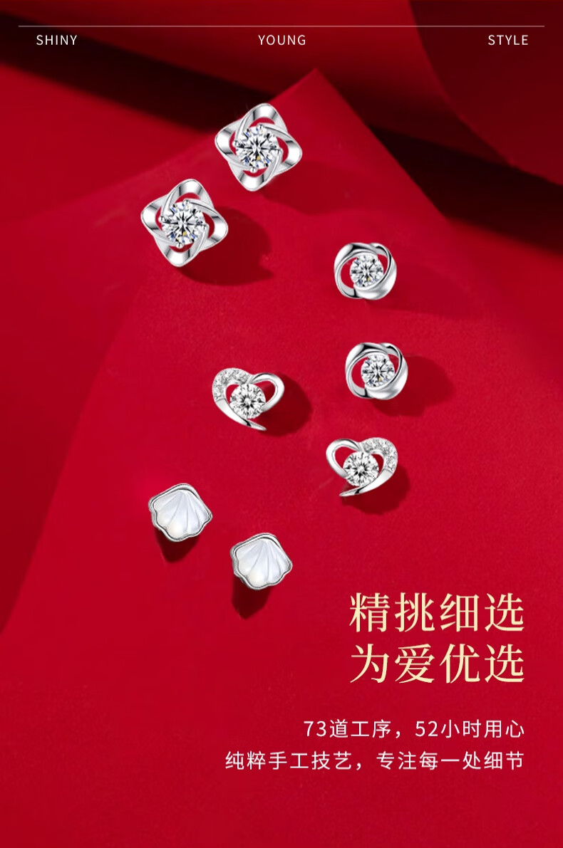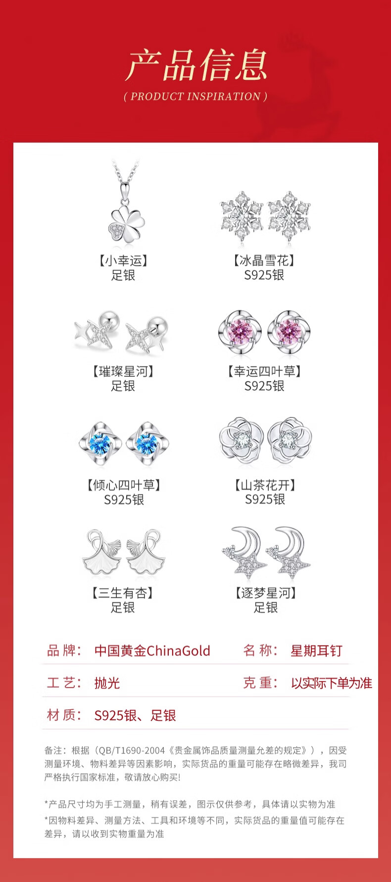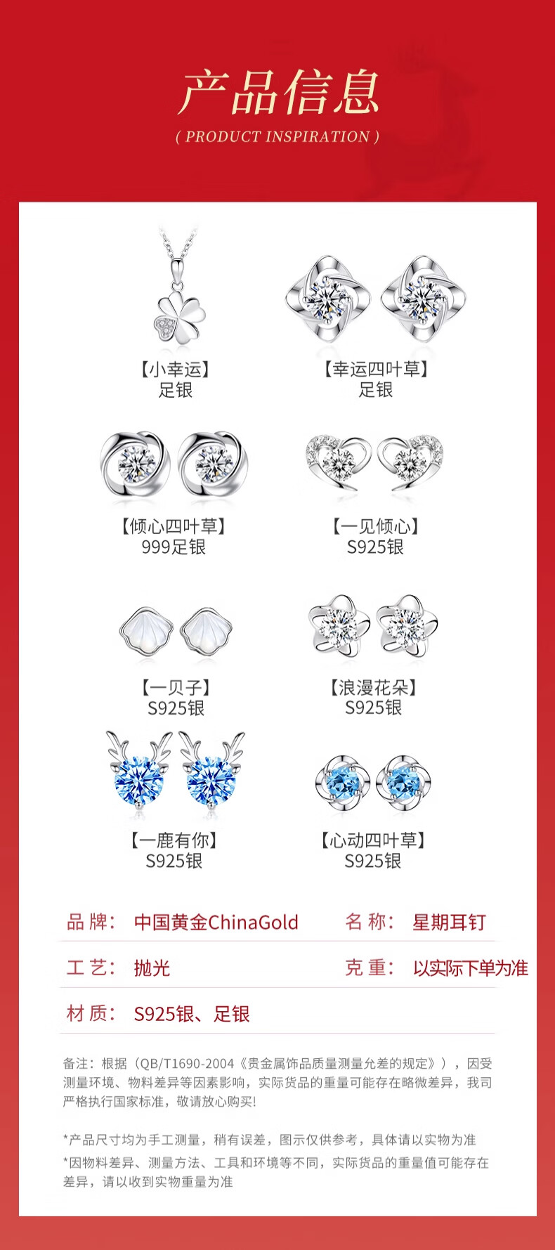 CHINA GOLD Pure Silver One Week Earrings Women's Earrings Gift Box Set Earrings Practical Heartfelt Commemorative Valentine's Day Practical Birthday Gift Gift for Girlfriend * One Week Earrings * Seven Pairs Premium Rose Gift Box