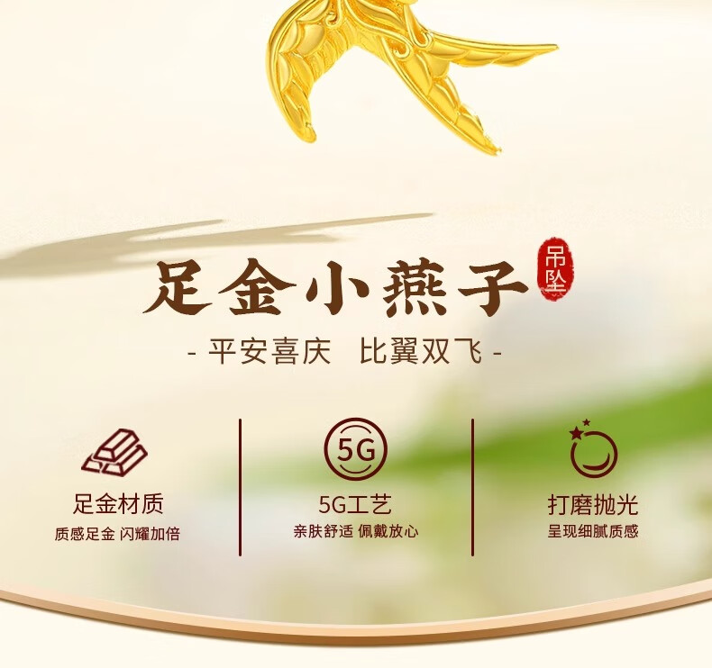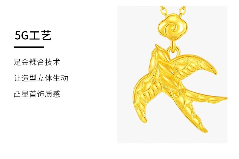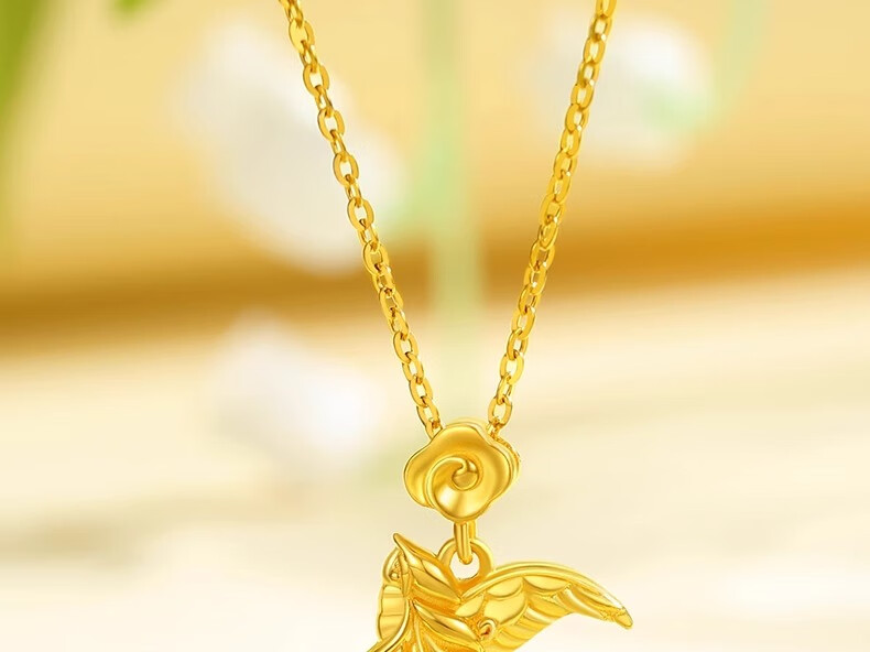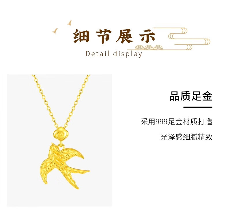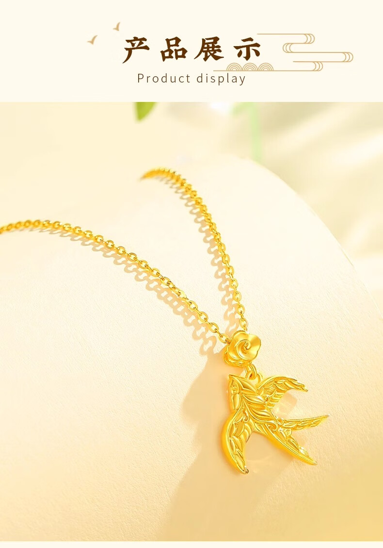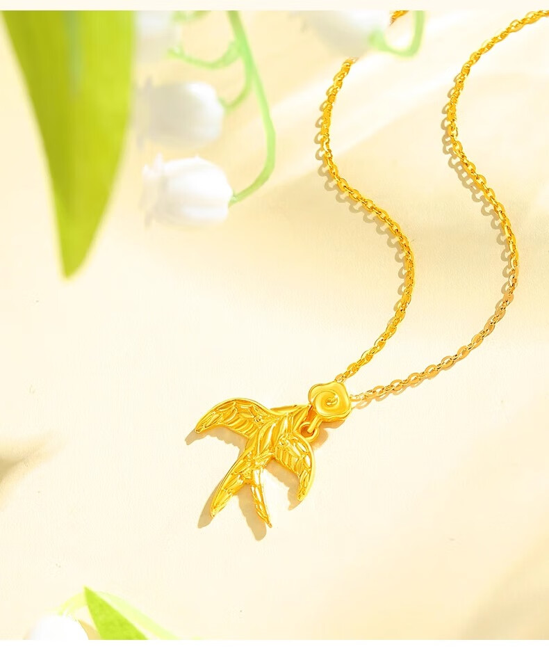 CHINA GOLD Little Swallow Gold Necklace for Women 999 Pure Gold Pendant Christmas Eve Christmas Gift for Girlfriend and Wife Gold Weight About 2.4g Free Silver Chain Pure Gold Little Swallow Pendant