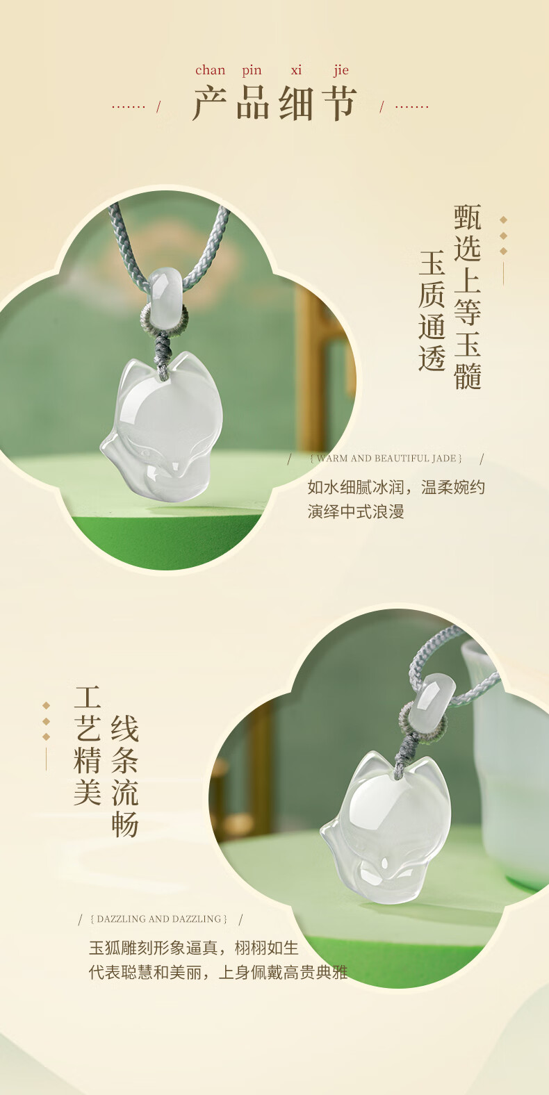 Lao Fengxiang chalcedony necklace for girls, fox pendant, jade pendant, auspicious beast jewelry, anniversary birthday gift for girlfriend and wife, auspicious spirit * jade fox * brand original gift box