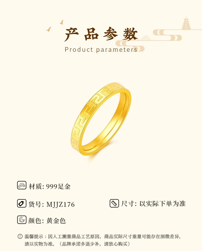 China Gold (CHINA GOLD) gold closed ring for women 999 pure gold single ring ring female birthday gift for girlfriend and wife (gold weight about 2.4g) 11# pure gold 999 swastika ring