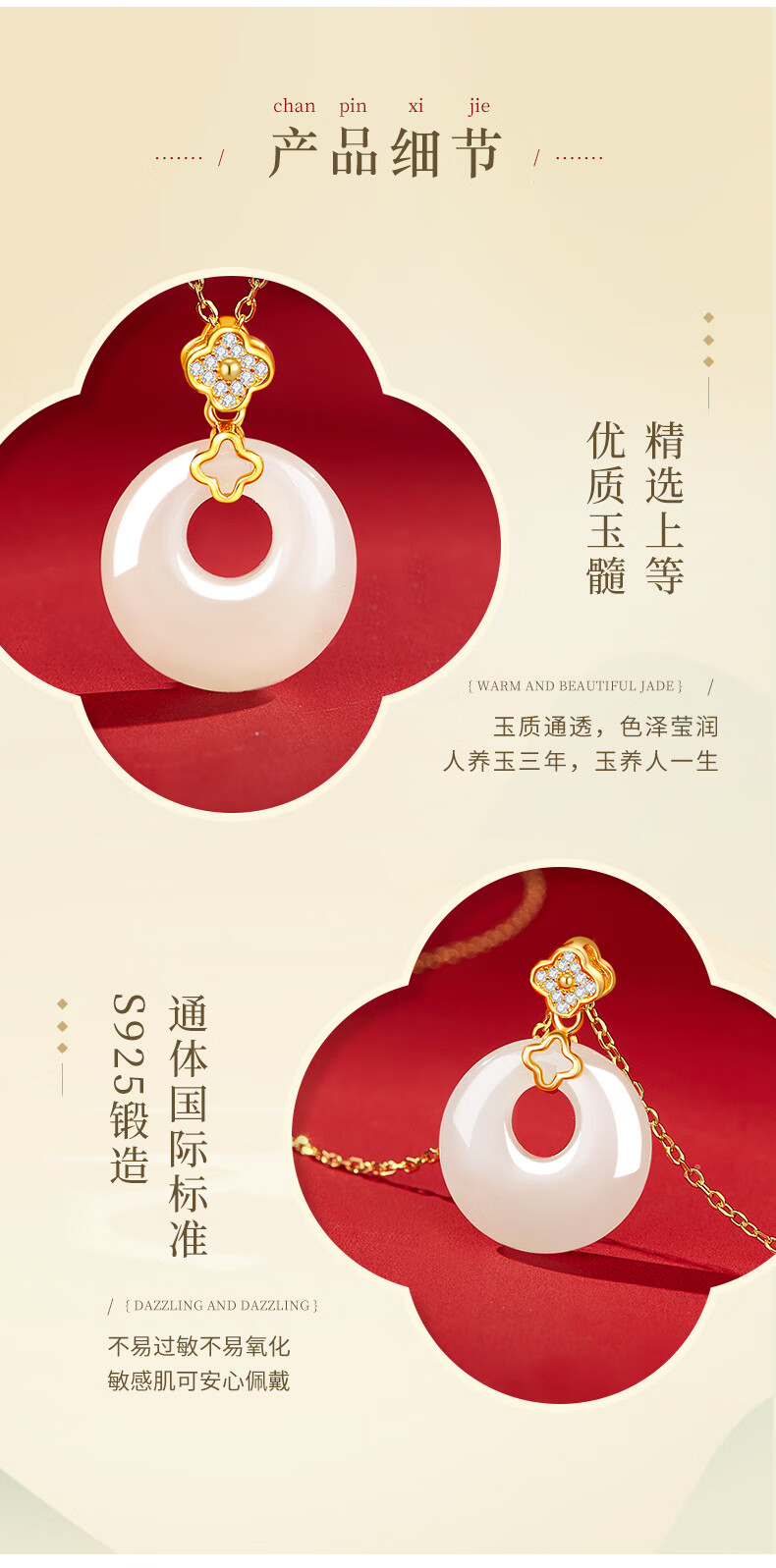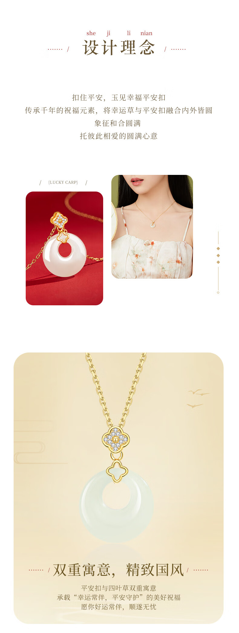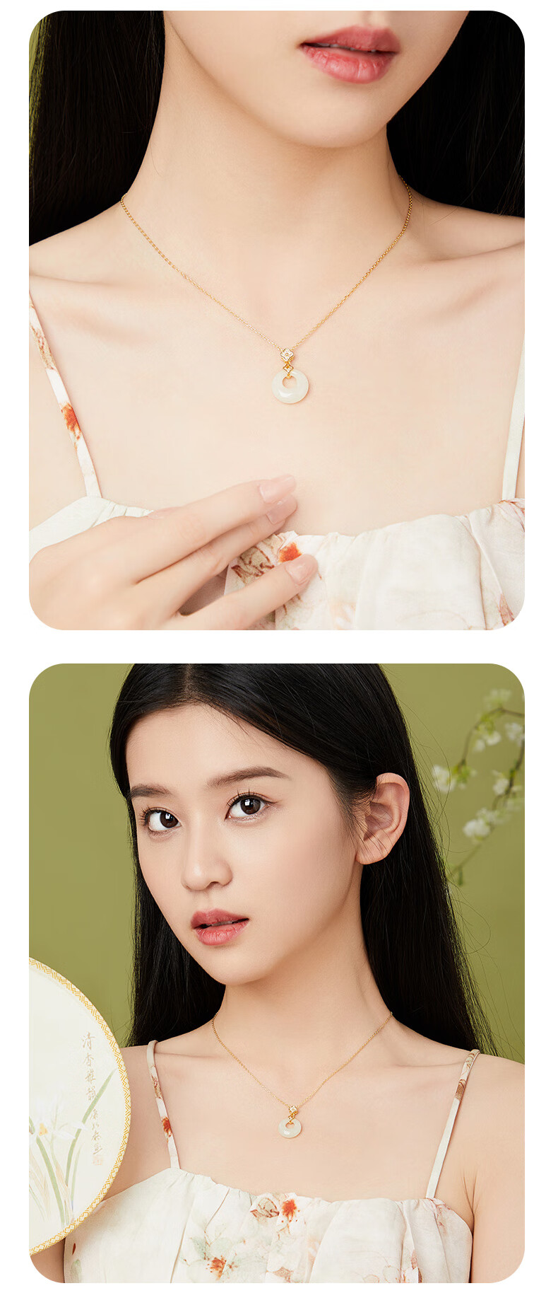 Lao Fengxiang Ping An Buckle Necklace Pure Silver Women's Hetian Jade Pendant Jade Pendant Anniversary Birthday Gift for Girlfriend, Wife, Mom Gift Recommendation Ping An Buckle Necklace* Ultimate Gift Box