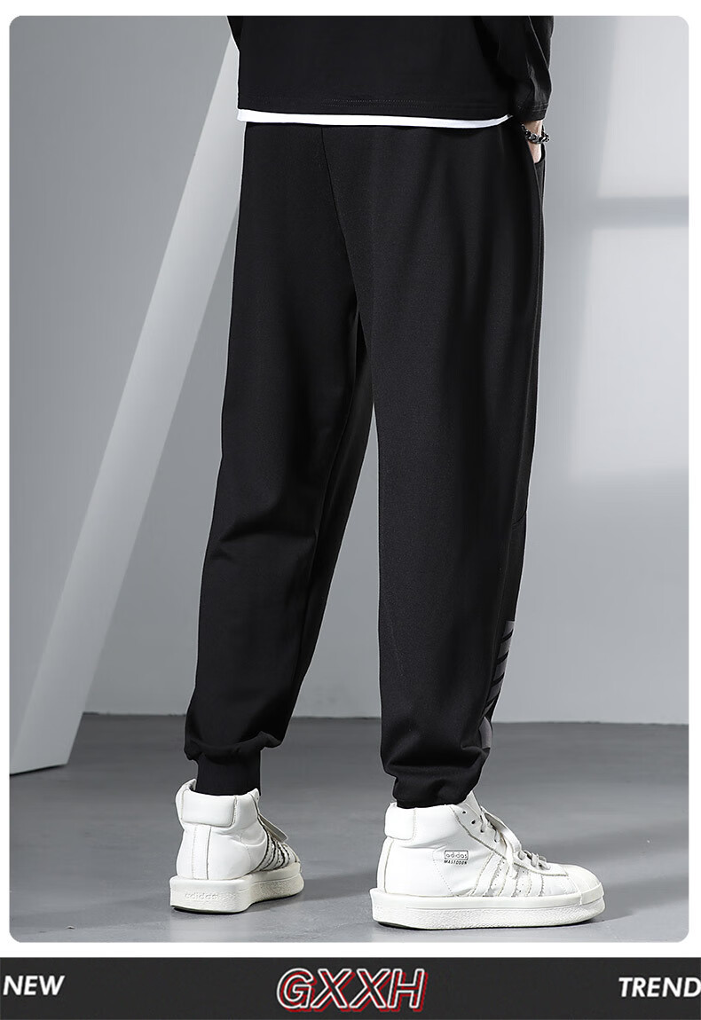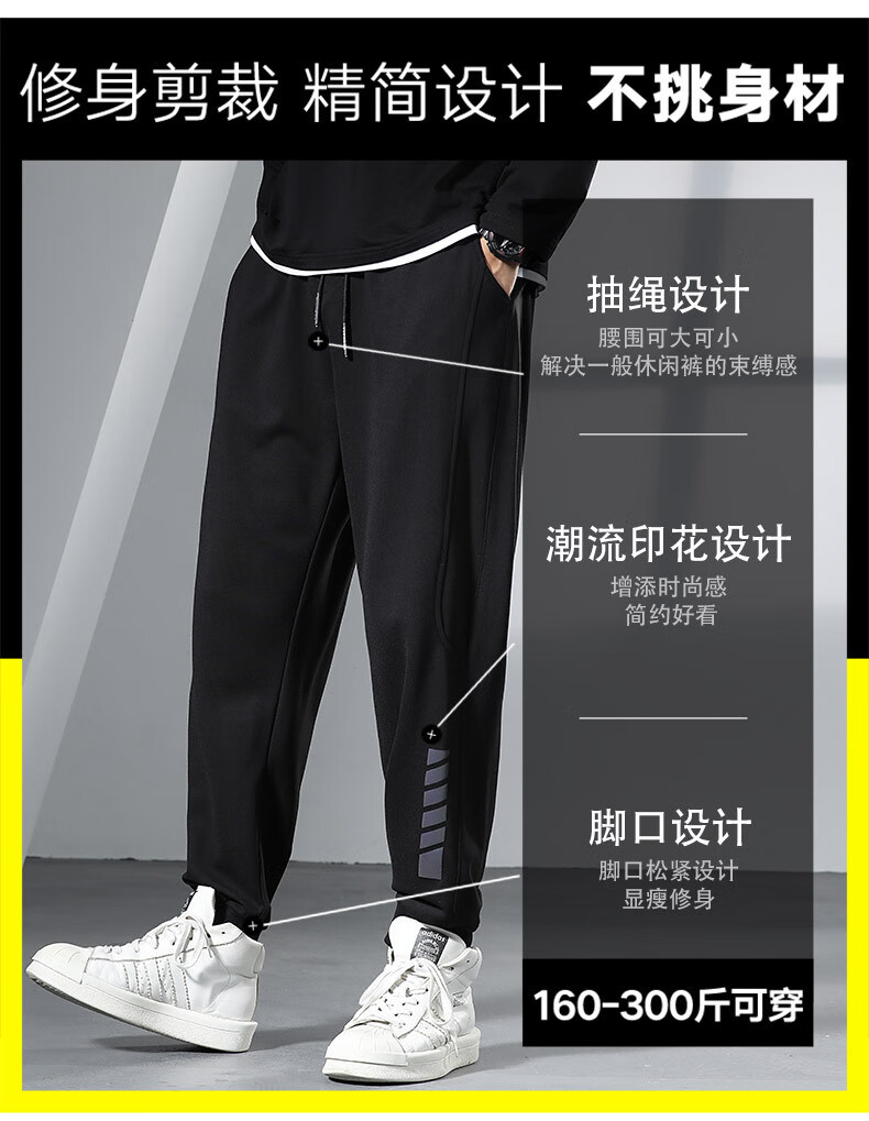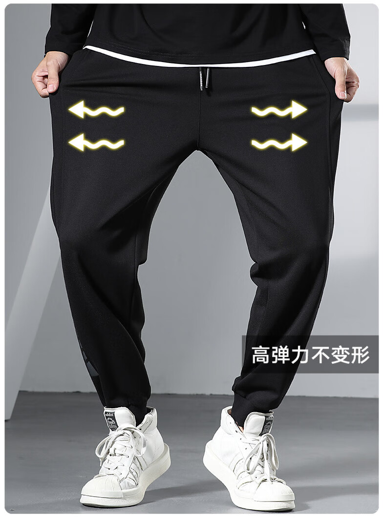 Tanye trendy brand large size plus velvet leggings men's winter fat loose sports pants men's plus fat enlarged black casual pants k10513 black plus velvet 5XL recommended 235-250Jin Jin equals 0.5 kg