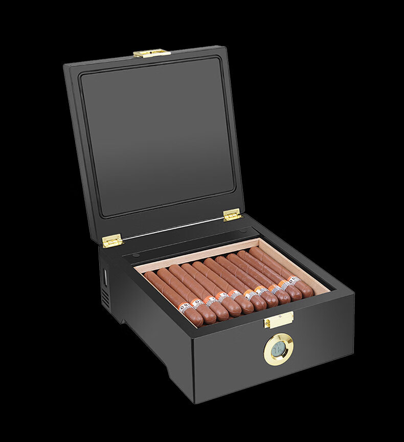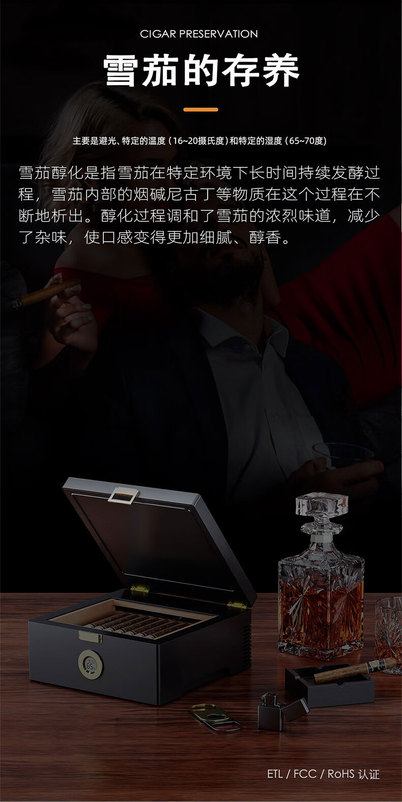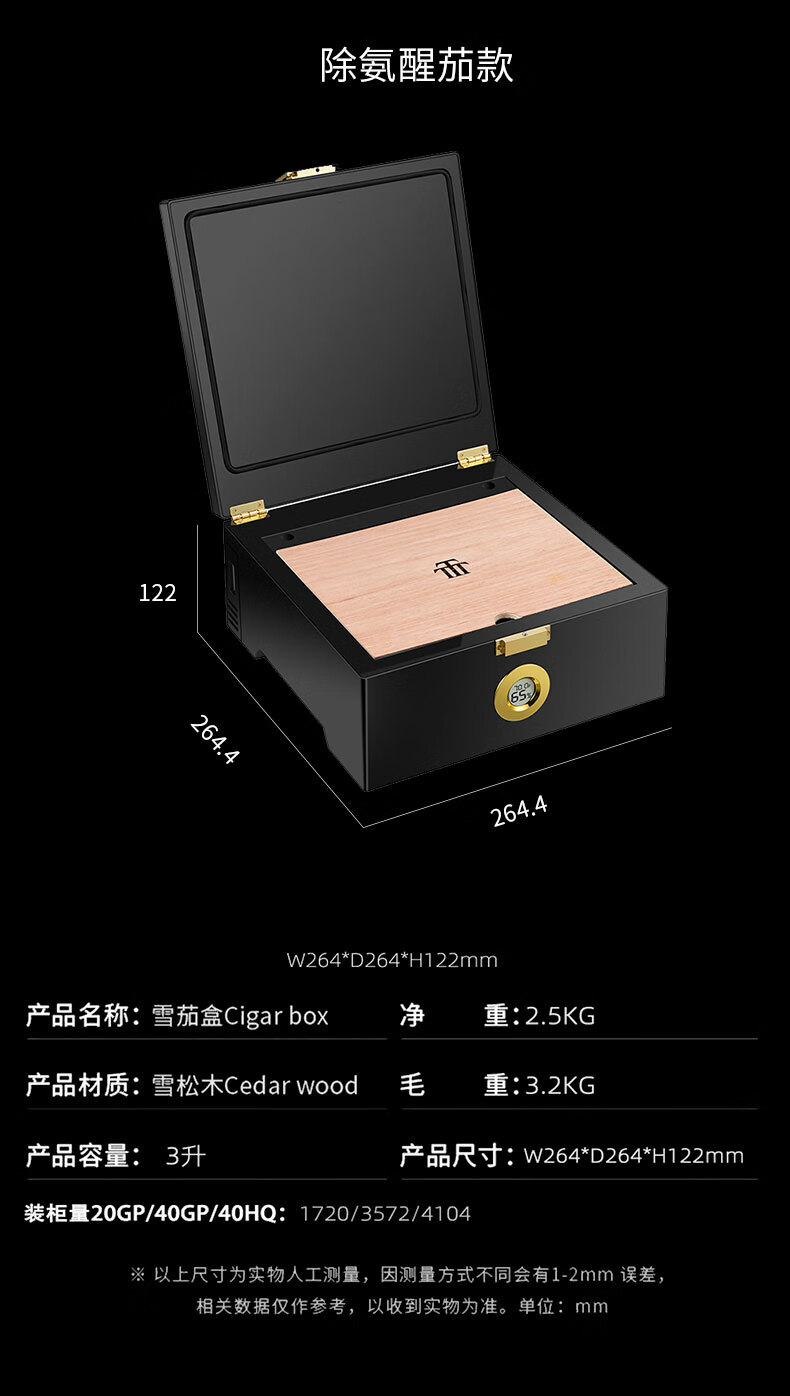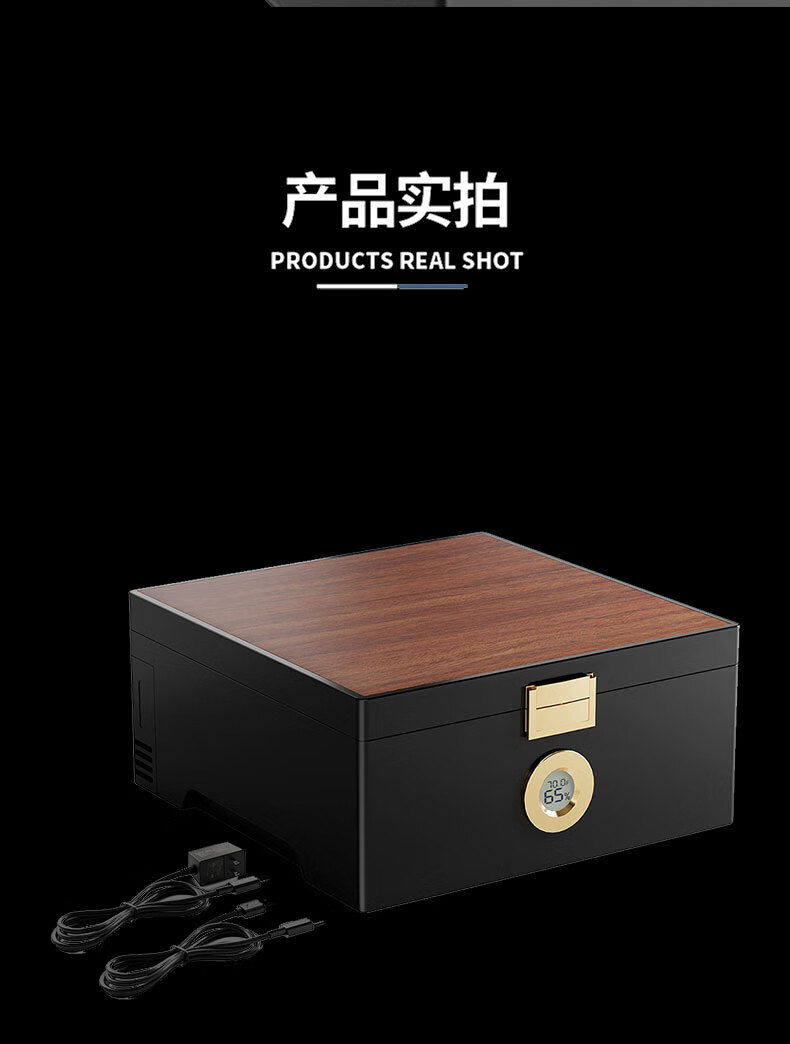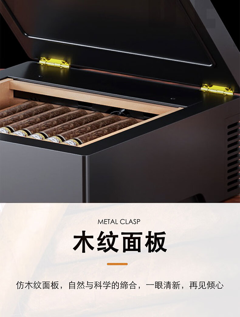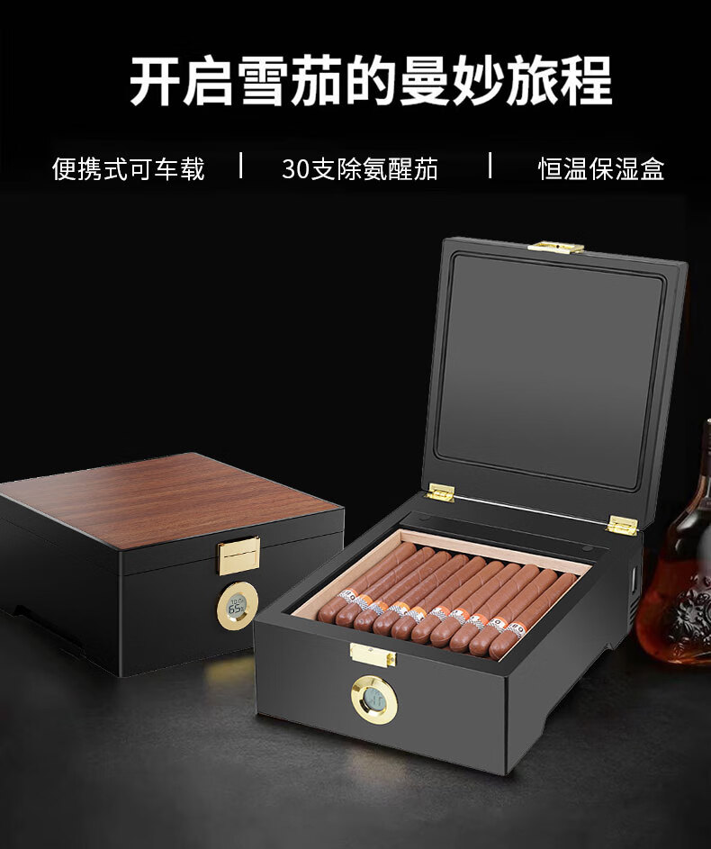 Double constant temperature mini cigar humidor, portable and refrigerated, business ammonia removal, car-mounted eggplant box, cedar wood bile, about 30 pieces of refrigerated portable eggplant style