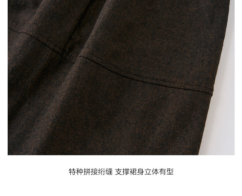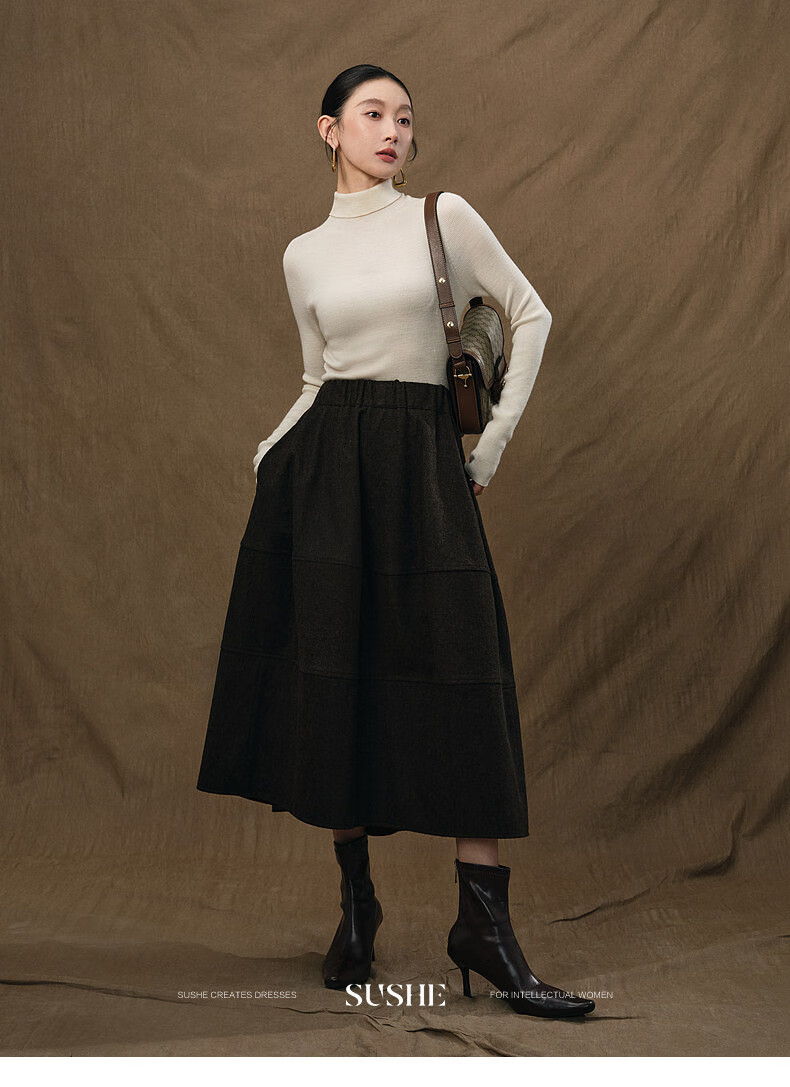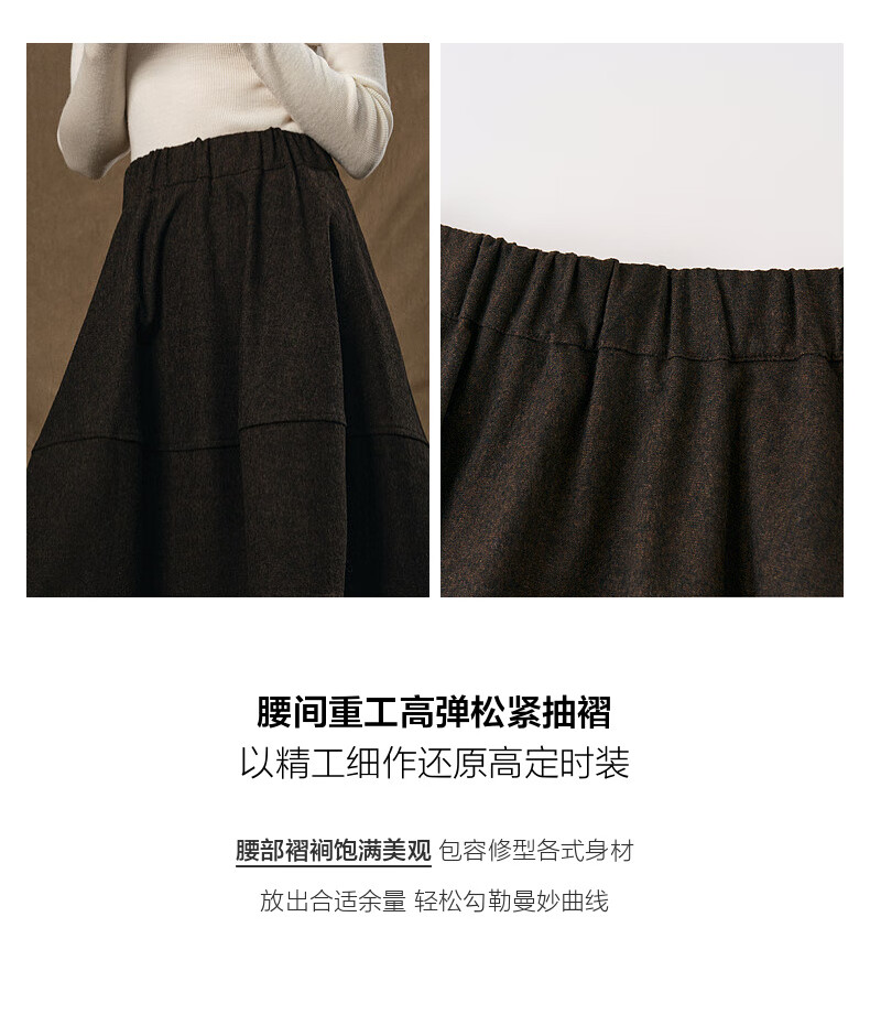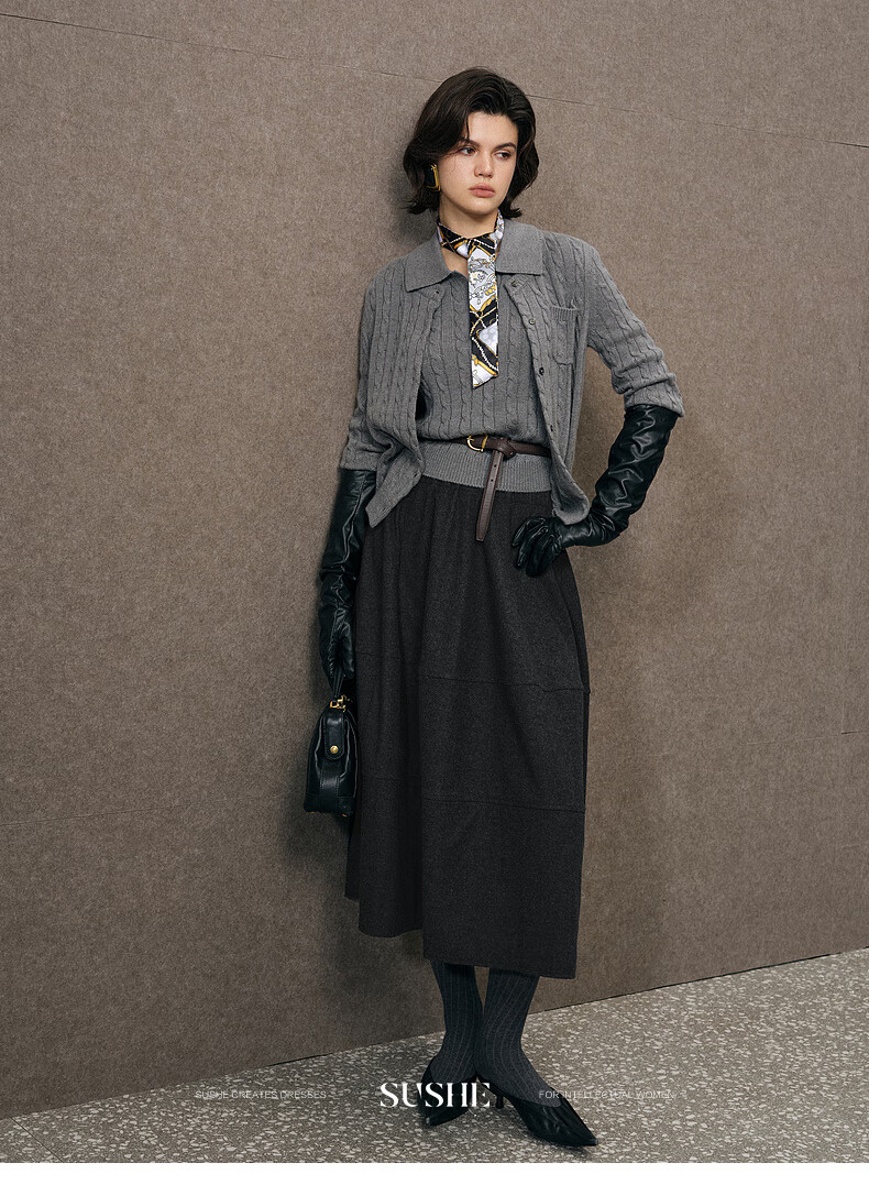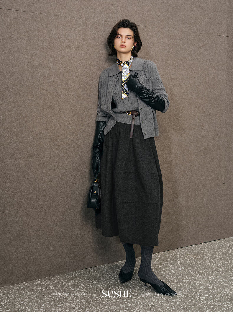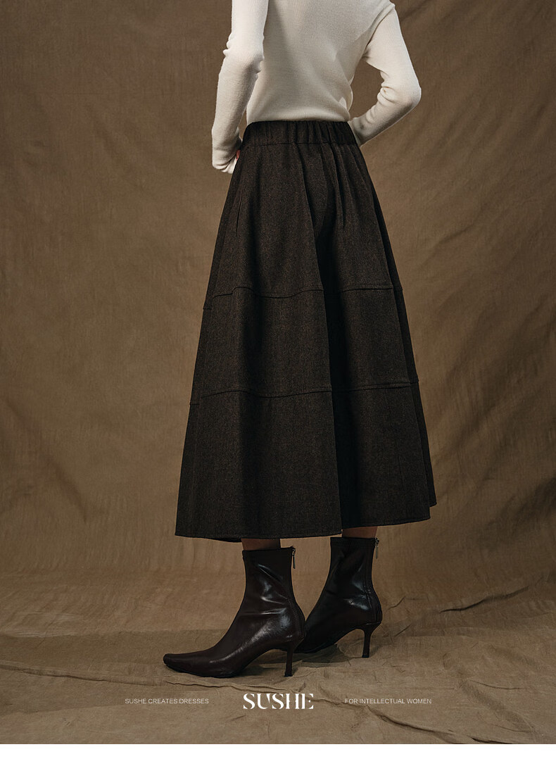 SUSHE Variations Hepburn Style Heavy Wool Structured Skirt Elastic Waist Swing Umbrella Skirt Women Dark Gray M