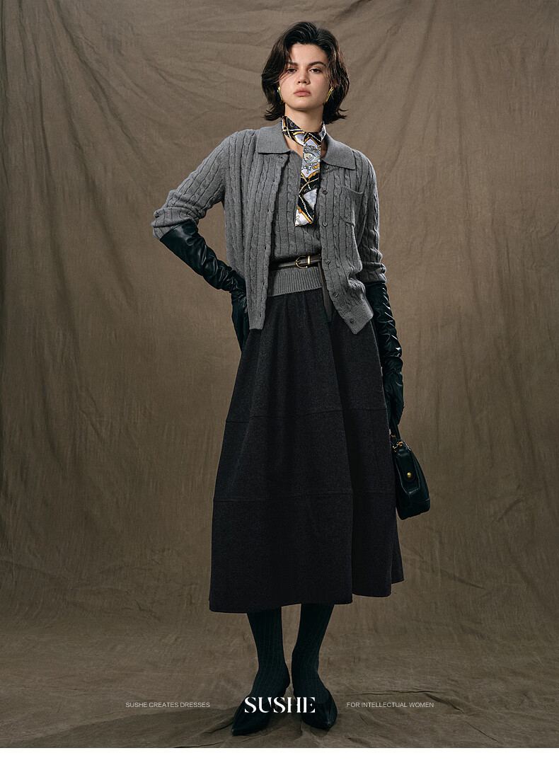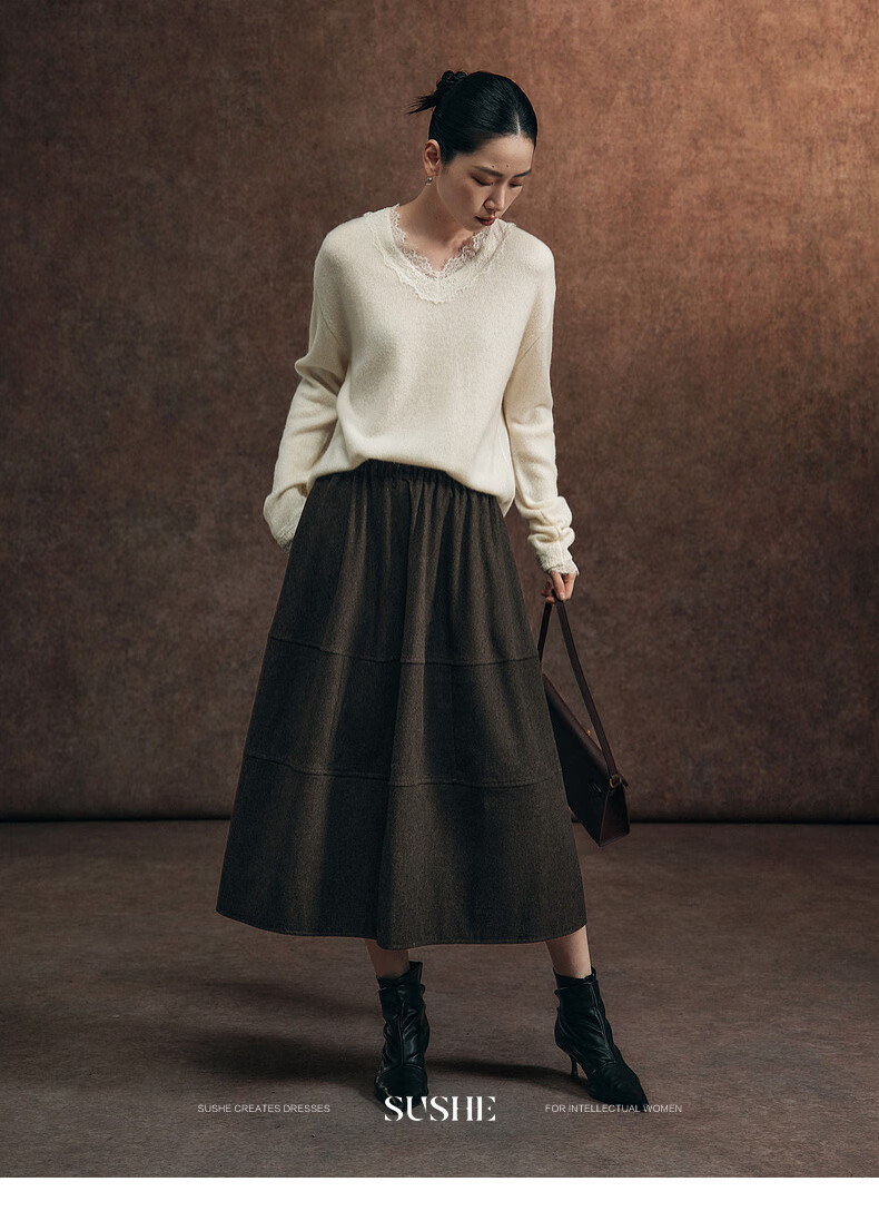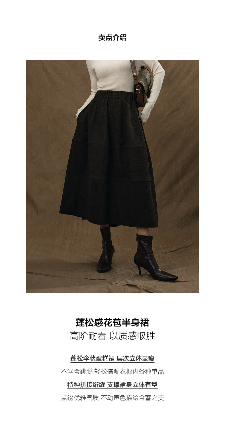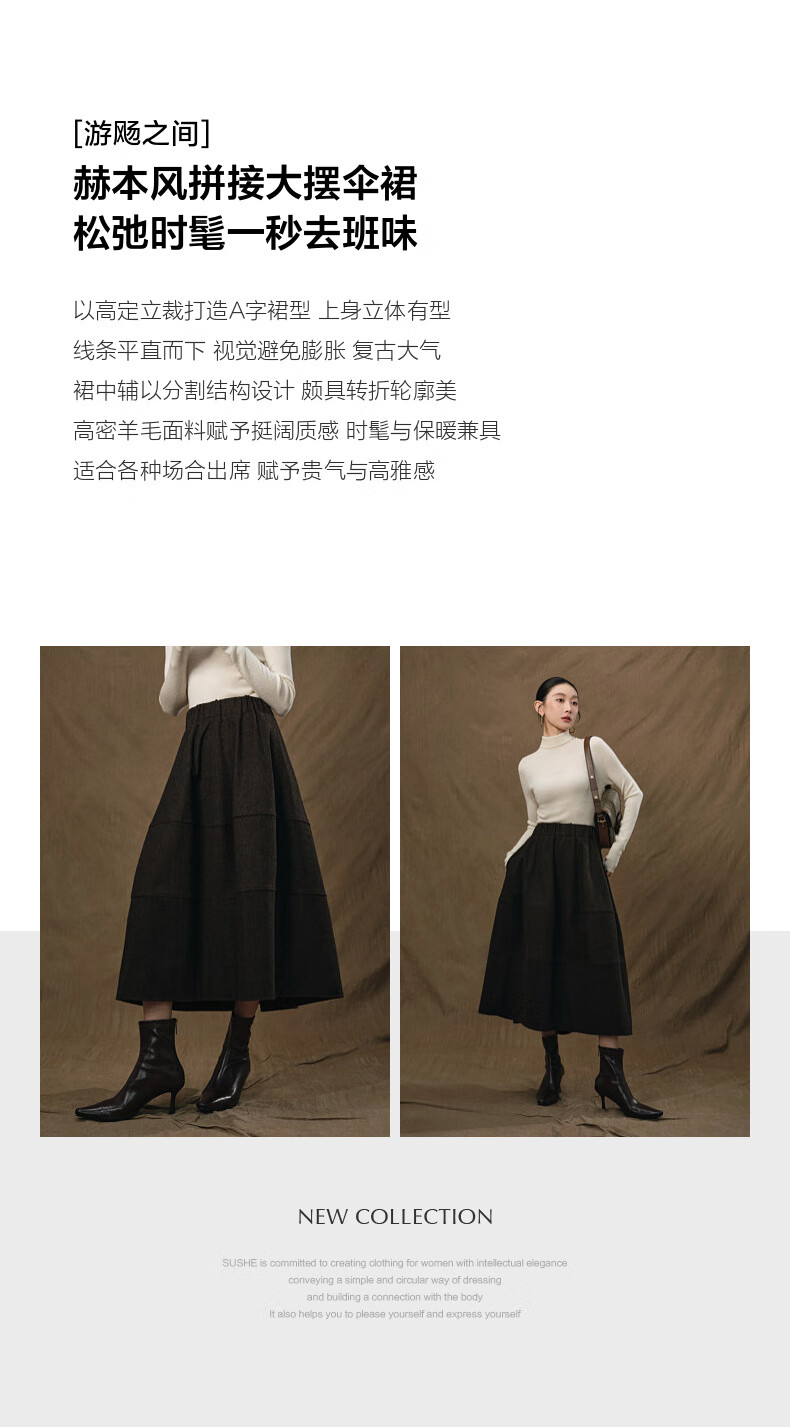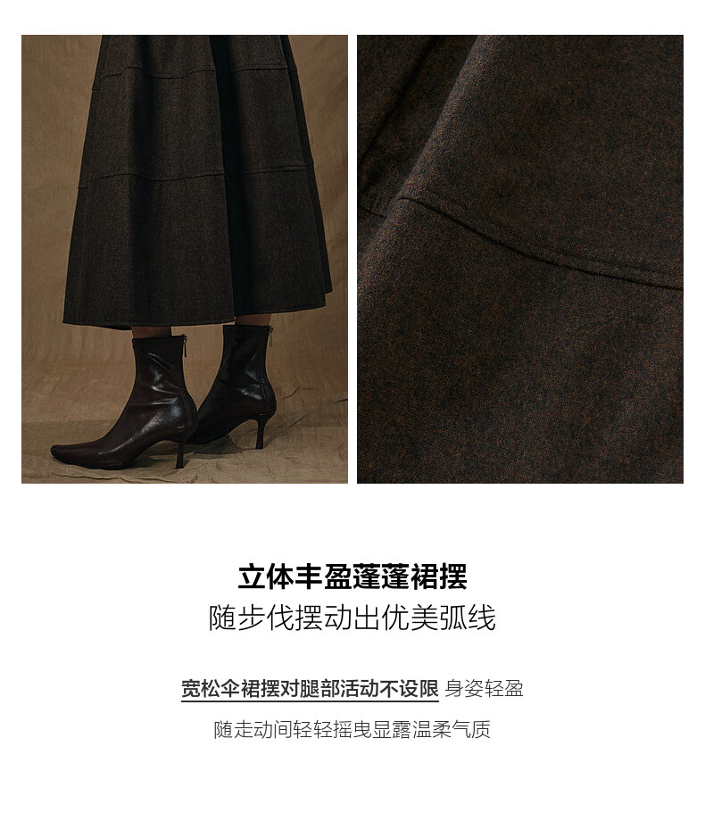 SUSHE Variations Hepburn Style Heavy Wool Structured Skirt Elastic Waist Swing Umbrella Skirt Women Dark Gray M