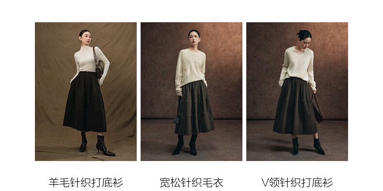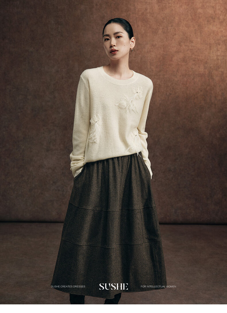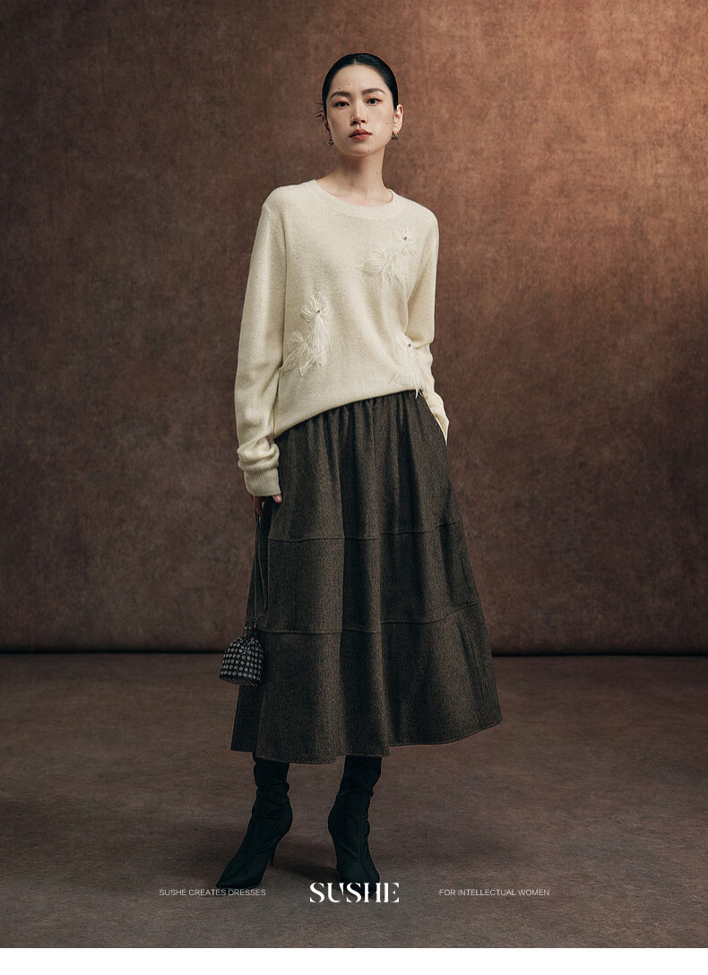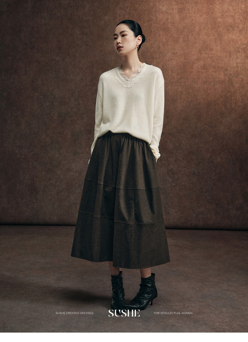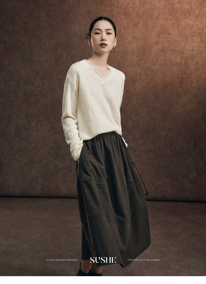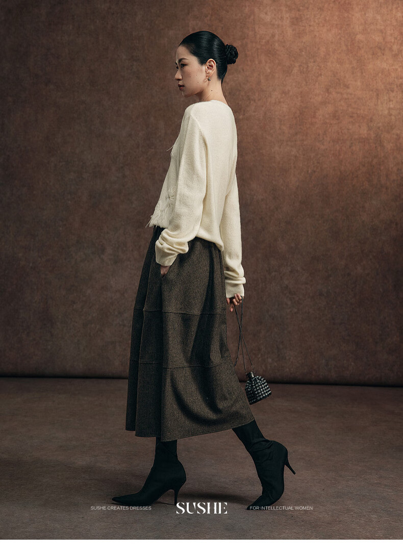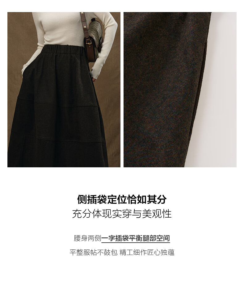 SUSHE Variations Hepburn Style Heavy Wool Structured Skirt Elastic Waist Swing Umbrella Skirt Women Dark Gray M
