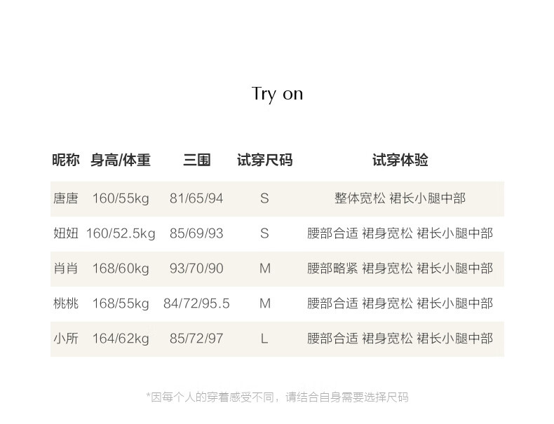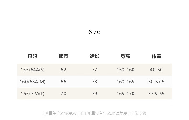 China (cm) 160-165/84-86 165-170 / 88-90 167-172 / 92-96 168-173 / 98-102 170-176 / 106-110